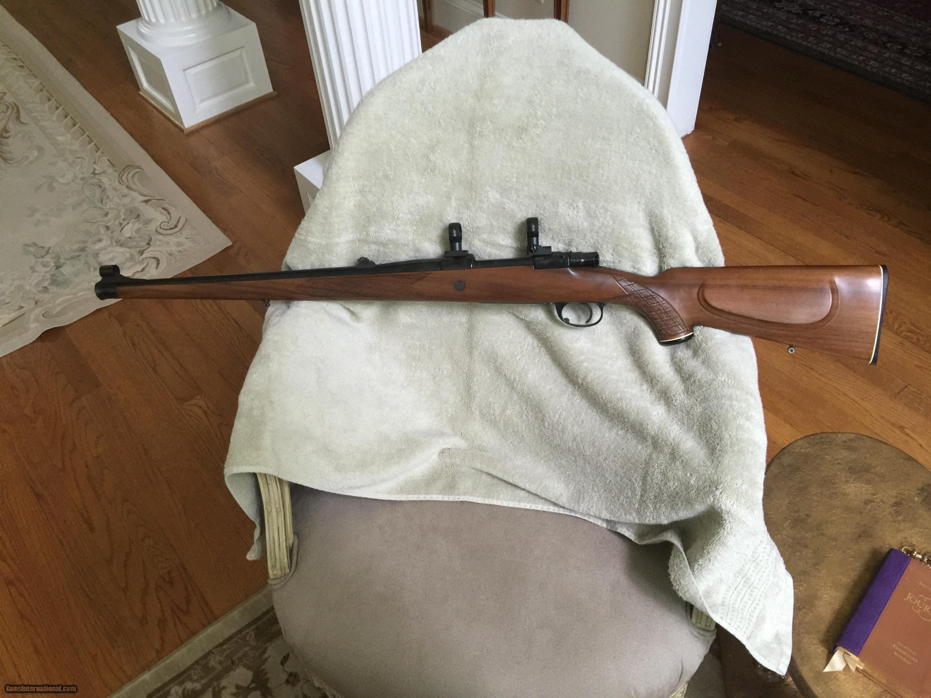 Description: This is a really nice Interarms Mark X Full Mannlicher Stock in .30-06. The wood is near perfect with little to no handling marks, and the metal is also near perfect. The trigger is very crisp and the action is smooth. I have not fired the rifle and I acquired it through an estate sale. This is a super little rifle and priced to sell. $650. SOLD |