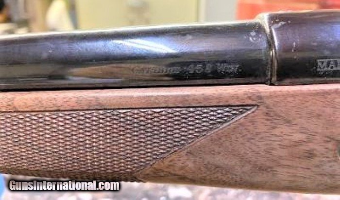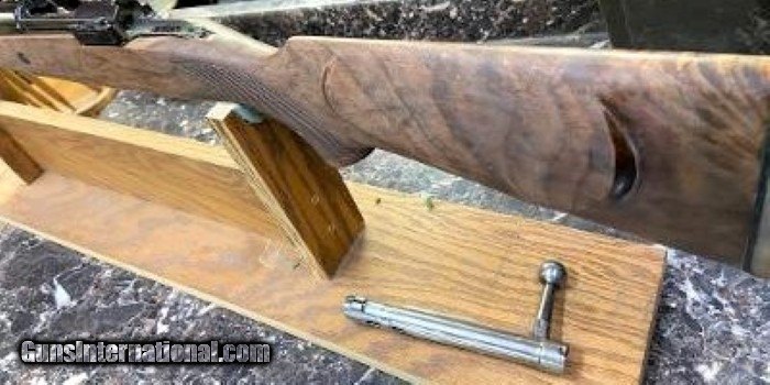 Description: This is an Interarms Whitworth MK-X in 458win mag. The gun came out of an estate and is incomplete. It is a very nice barreled action,Has sights and appears to never had a scope mounted. It comes with a beautifully grained stock.. The stock has had the finish removed and is currently bare wood. It has a Whitworth recoil pad . A dark fore-end but no grip cap. The original bolt,trigger, and floorplate/follower are missing. With the gun is a mauser military style bolt that fits the action and locks up. It would have to be modified by a gunsmith to use on this rifle. To include bending the handle. but I believe it can be made to work. Bolt is incomplete in the photos but all the bolt parts are there. I believe that with some scrounging around and a little investment this could end up a very nice big bore rifle. The blue on the rifle is very nice with just a few scuffs. The stock has a few small handling marks as well. This is an inexpensive start to ending up with a nice big bore hunting rifle. $300.00 FFL required Shipping $25.00 lower 48. C/C plese add 3% SOLD Rifle Caliber: .458 Winchester Magnum Manufacturer: Interarms Model: Mk-X Condition: GOOD Metal Condition: Good |