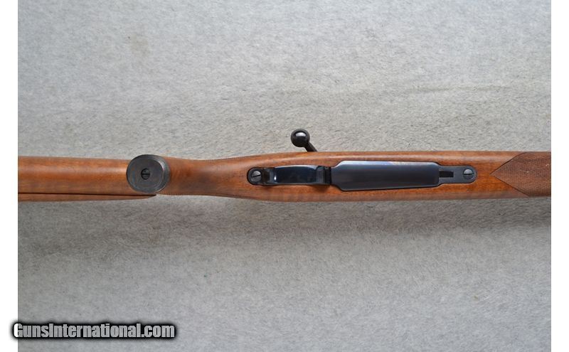 Description: This Interarms Model Whitworth is a right hand bolt action rifle in .375 H&H Mag. Cal. It has a 24 inch barrel. A hooded front blade sight and a 3 position middle sight. It is drilled and tapped for a scope mount. The butt stock is a checkered grip walnut pistol grip with a raised cheekpiece and steel cap.The forearm is a checkered grip walnut with a black tip. It has a checkered bolt handle. .375 H&H Magnum SOLD Chambers: Internal chamber with a hinged floorplate. Metal Condition: Excellent. Wood Condition: Excellent. Bore Condition: Excellent. Barrels: 24 inch. Triggers: Grooved. Stock Dimensions: LOP 14 inch. Fore End: Checkered walnut with a black tip. Butt Pad: Whitworth rubber recoil pad. Weight: 8 lb. 8 Oz. Sights: Hooded front blade. 3 position middle. Drilled and tapped. Item Location: Richfield, WI |