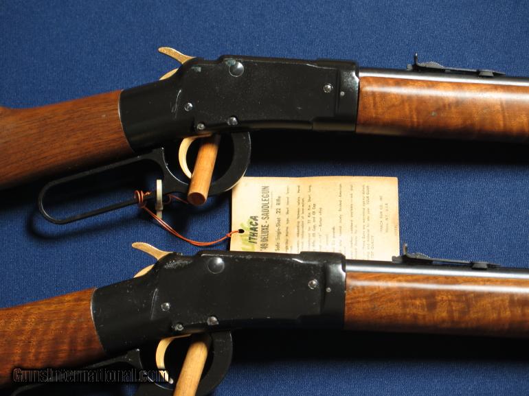 Description: Ithaca 49 Deluxe Saddle Gun 22LR 2 gun set. St Louis 1764-1964 Commemorative. Consecutive Serial numbers 32 & 33. Excellent condition with boxes. SOLD |