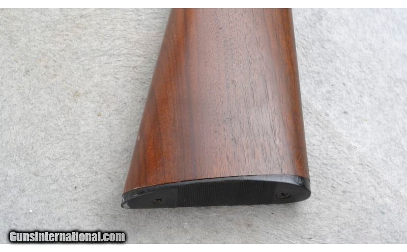 Description: This Ithaca Model 49R is a right hand lever action repeating rifle in .22 Long Rifle Cal. It has a 20 inch barrel. A blade front sight and an adjustable notch middle sight. The butt stock is a checkered grip walnut straight grip. The forearm is a smooth grip walnut with a barrel band. .22 Long Rifle SOLD Chambers: Tube Magazine. Metal Condition: Barrel has some light rust spots. Lever is missing some bluing. Receiver has some light blemishes. Wood Condition: Good. Some light handling marks. A little light surface finish wear. Bore Condition: Excellent. Barrels: 20 inch. Stock Dimensions: LOP 14 inches. Fore End: Smooth grip walnut with a barrel band. Butt Pad: Grooved black plate. Weight: 5 lb. 12 oz. Sights: Blade front. Adjustable notch middle. Item Location: Richfield, WI |