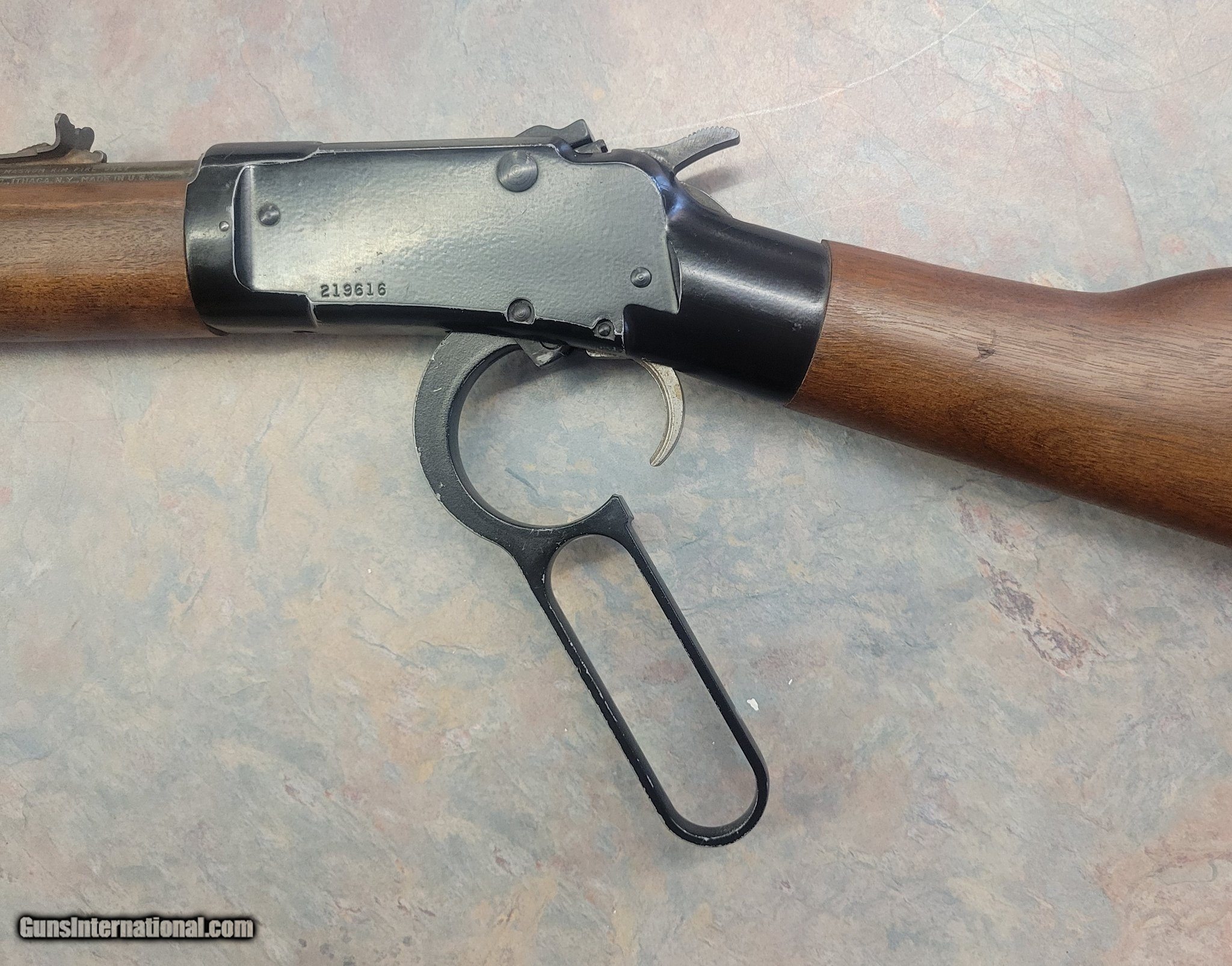 Description: Guns Listing ID: 1371915 Available - the venerable Ithaca M-49 saddle gun. Single shot. hammer fired lever action uses a \"tipping block\" action. Chambered in .22 Magnum (.22WMR), it‚‚s in very nice condition - NO cosmetic issues. The chamber and bore are bright and clean. The Walnut stained hard woos stocks are in perfect condition with NO flaws. We test fired this rifle here in our shop. function was correct in all regards SOLD Manufacturer: ITHACA GUN COMPANY Model: M-49 Caliber Info: .22 WMR Condition: Used - Non-Certified Barrels: 18 BARREL Finish: BLACK |