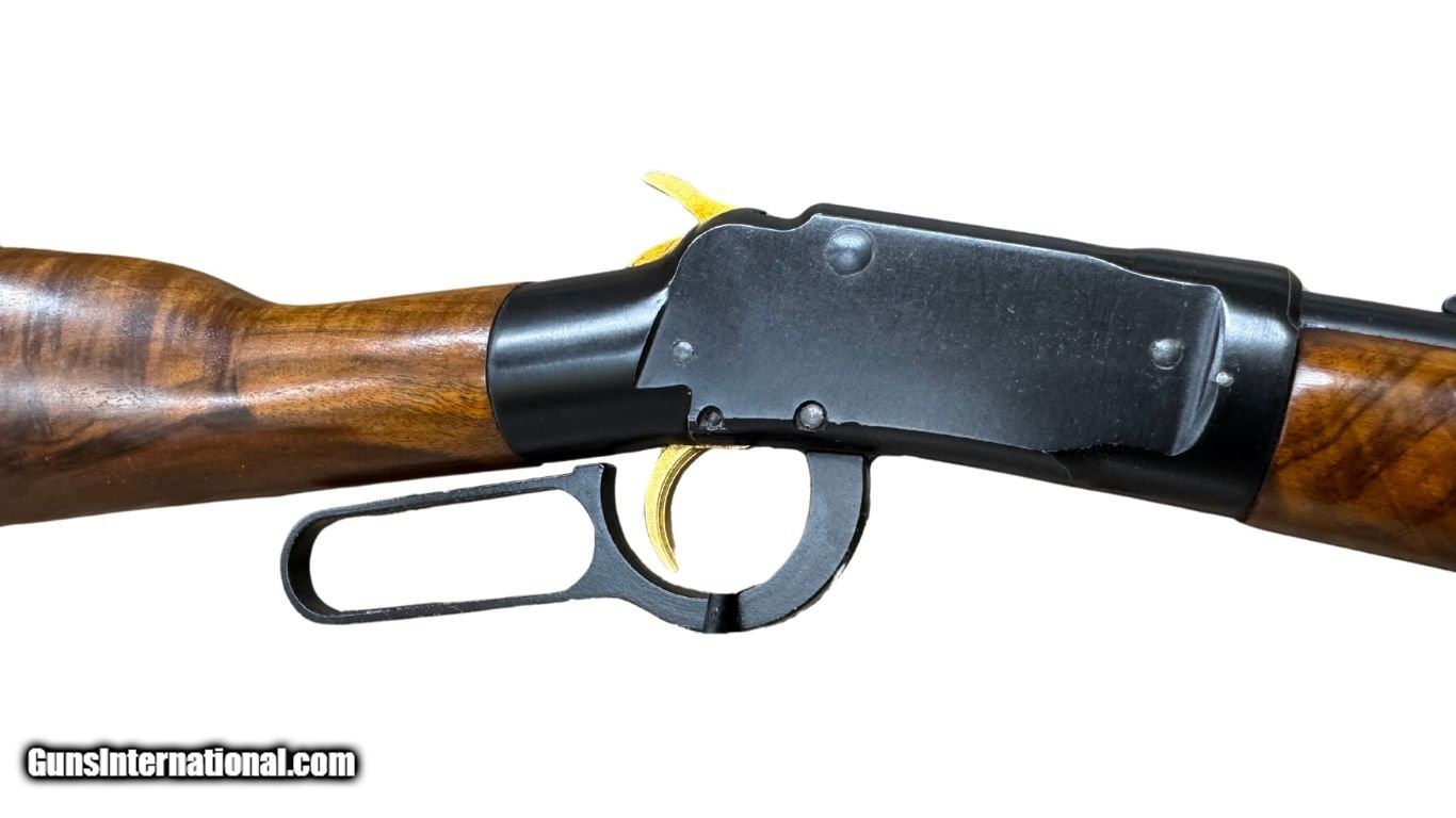 Description: Guns Listing ID: 529625 This listing is for an Ithaca Model 49 single shot lever action chambered for .22 Short/ Long/ Long Rifle with a 17\" barrel. This classic beginner‚‚s rifle uses a unique Martini style tilting block action which extracts the spent shell and leaves the chamber free to load another round. The lever only operates the action, while the hammer must be cocked manually for each shot. The action and hammer operate smoothly and as intended. This rifle is equipped with an adjustable rear sight and fixed blade front sight, along with 1\" sling loops on both the stock and forend. The stock and forend show nice figure in the wood and have some slight scratches and finish imperfections as can be expected on a vintage gun that has not lived its whole life in a safe. The receiver and lever also have scratches, some of which are through the finish. The gold trigger and hammer show some minimal plating wear as well. The initials \"SCM\" have been scratched into the bottom of the receiver by a prior owner. This is a great gun to get a youngster or new shooter into plinking, small game hunting, or target shooting! SOLD Manufacturer: ITHACA GUN COMPANY Model: Model 49 Caliber Info: .22 S/L/LR Condition: Used - Non-Certified Barrels: 17 Action: LEVER ACTION Finish: walnut, blued |