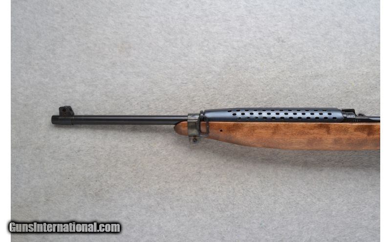 Description: This Iver Johnson Model M-1 is a U.S. Military replica semi-auto rifle in .30 Carbine Cal. It has an 18 inch barrel. A blade front with protective sides and an adjustable aperature rear sight. The stock is a smooth grip hardwood pistol grip butt. The forearm lower half is a smooth grip hardwood with the upper half being a vented steel. The forearm has a barrel band with a sling swivel. This rifle is in excellent condition. SOLD Curio/Relic: Yes Caliber Info: .30 Carbine. Chambers: Semi-Auto 10 round magazine. Metal Condition: Excellent. Wood Condition: Excellent. Bore Condition: Excellent. Barrels: 18 inch blued. Stock: Smooth hardwood pistol grip with sling/oil tube opening. Stock Dimensions: LOP 13 1/2 inches. Fore End: Smooth grip hardwood lower half and vented black steel upper half. Barrel band with sling swivel. Butt Pad: Checkered black plate. Weight: 5 lbs. 5 oz. Sights: Blade front with protective sides. Adjustable aperature rear. Item Location: Richfield, WI |