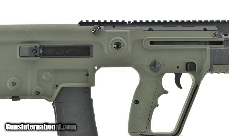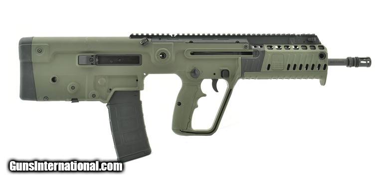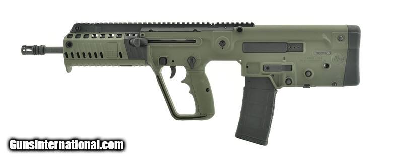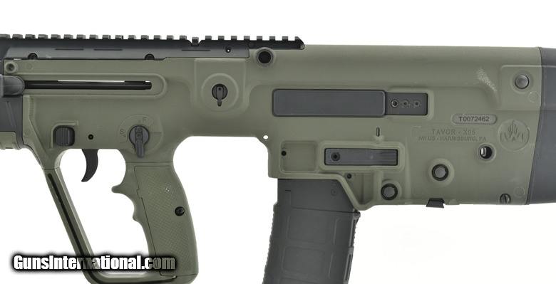 Description: IWI Tavor X95 5.56 caliber rifle. IWI Tavor X95 with 16” 5.56 barrel, removable panel covers and one magazine in an OD green finish. New.