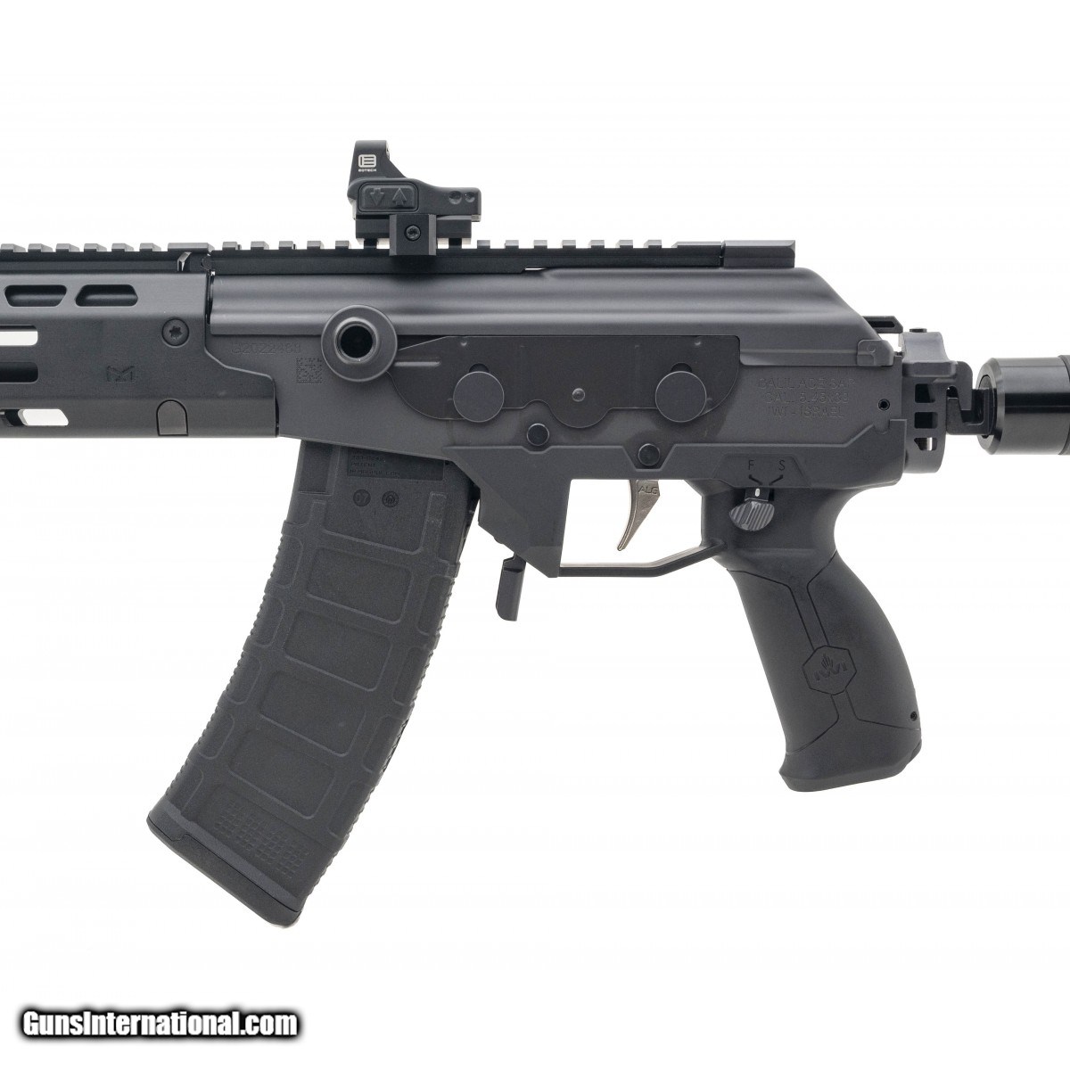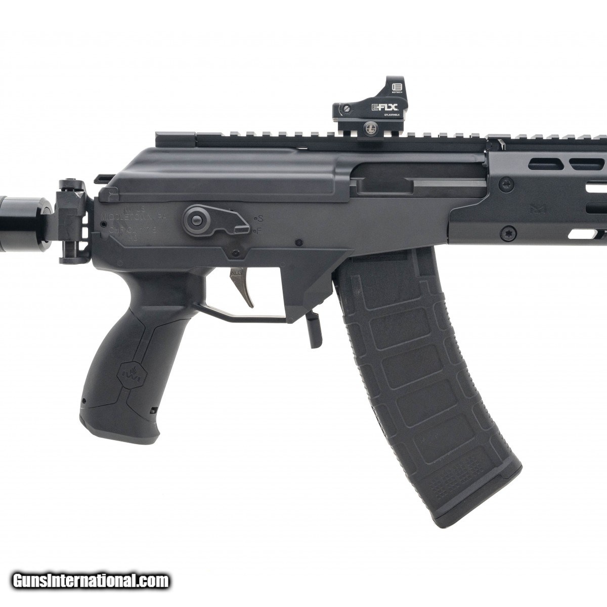 Built out semi-automatic Israeli rifle with an MLOK handguard, 16"" barrel, birdcage muzzle device, EOtech EFLX Reflex sight, SOCOM foam padded folding stock, & BCM foregrip. NEW. UPC:818004022634