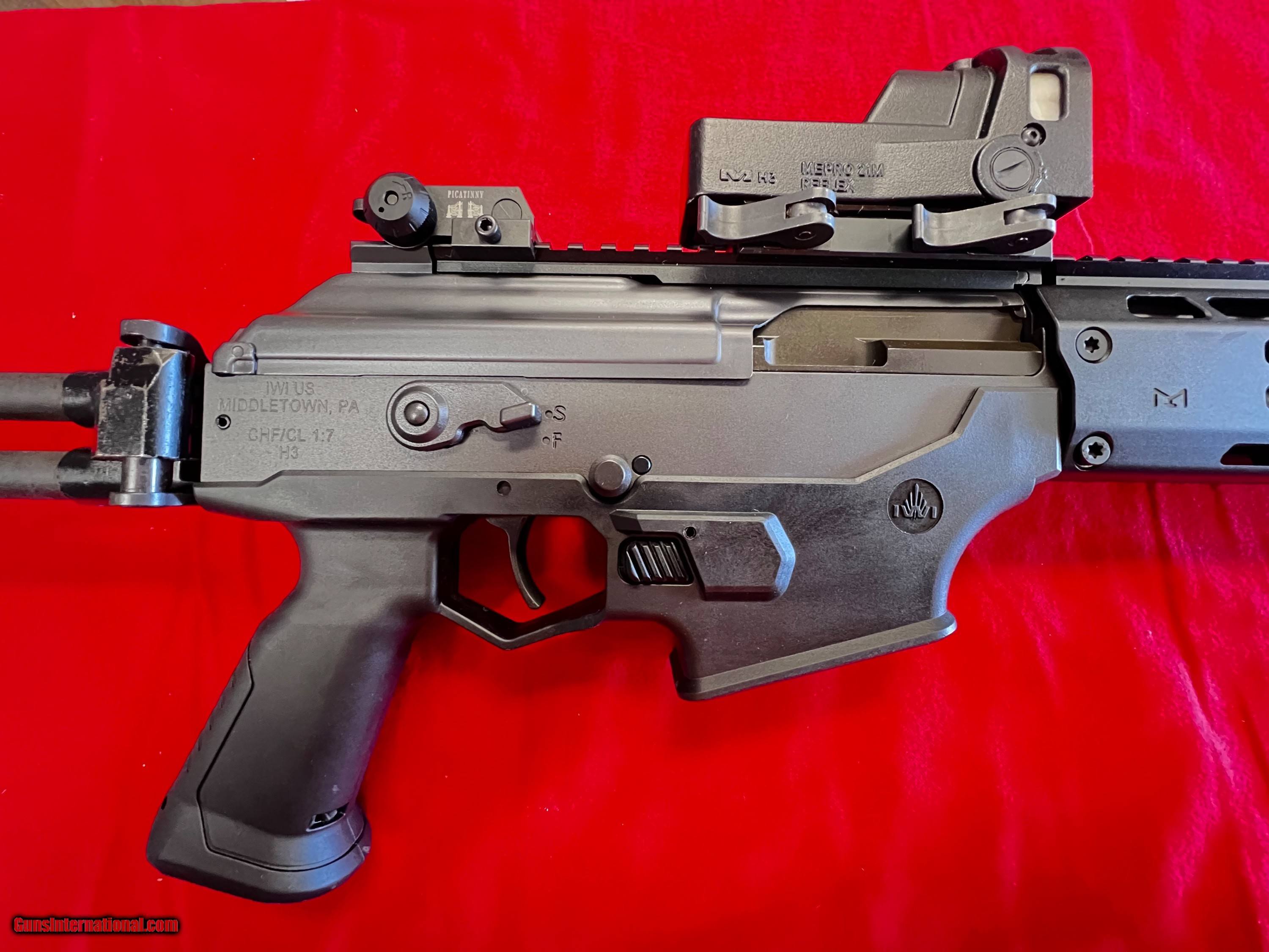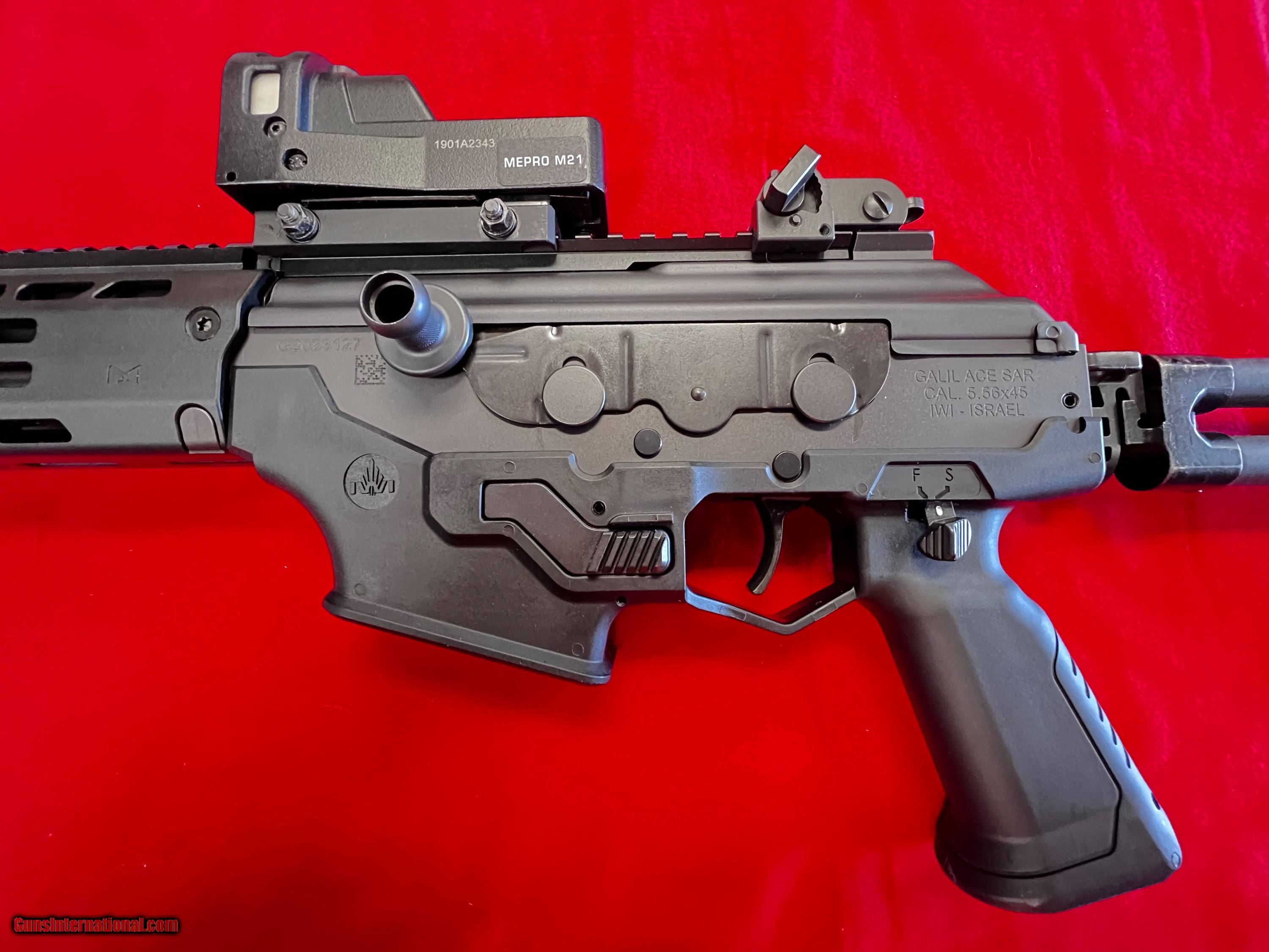 Description: As new in box IWI Galil ACE rifle unfired with South African R1 stock, MEPRO M21 reflex sight, metal BUIS SOLD |