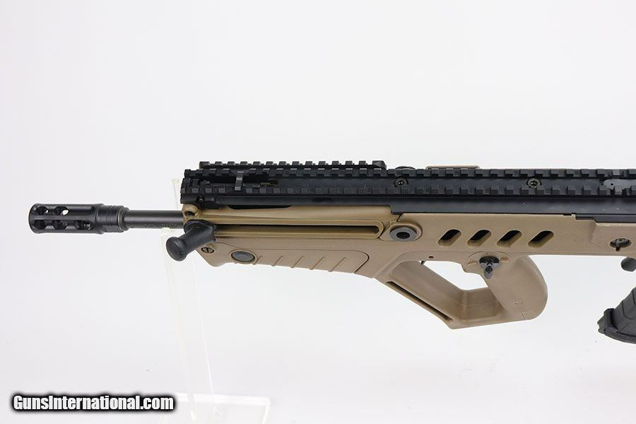 Description: This is an IWI Tavor SAR rifle with 16.5 inch barrel and 30 round magpul magazine. In 2013, IWI started a US subsidiary, IWI US, which is manufacturing the semi-automatic TC-21 as the Tavor SAR for U.S. sales. The weapon is manufactured with a combination of Israeli and US parts. IWI US had shipped 50,000 Tavor SARs to US civilian customers by early 2016. Flat dark earth (FDE) finish shows minor age and handling wear but excellent condition overall. This particular example was upgraded with the Geissele trigger pack and bow trigger, and also has a super compensator installed. Excellent bore that shows very little use. Also includes the barrel takedown tool. SOLD Rifle Caliber: 5.56x45mm NATO Manufacturer: IWI US Model: TAVOR TAR Serial Number: T0013353 Bore: 9.5/10 Condition: Excellent Manufacture Date: 2010s |