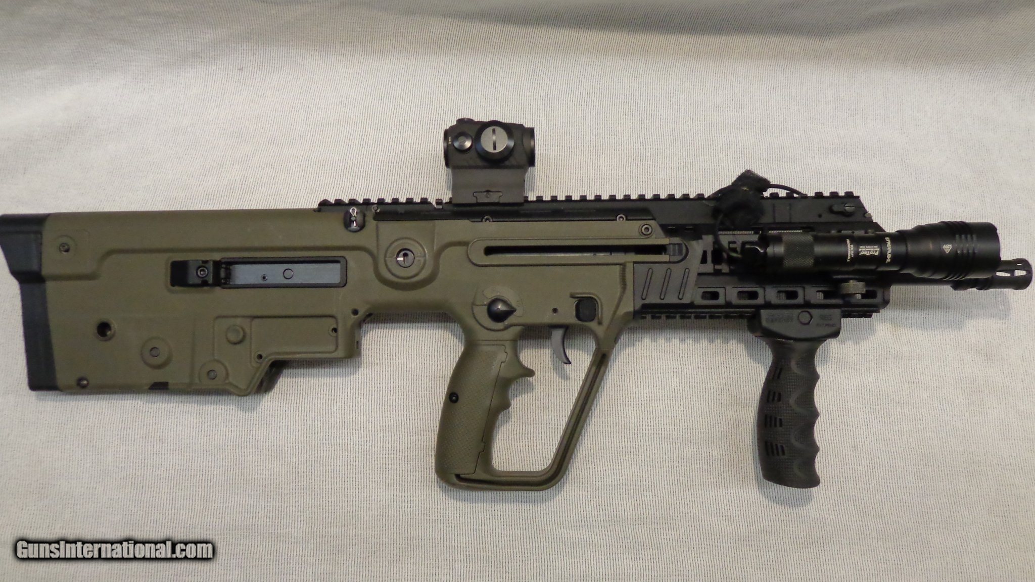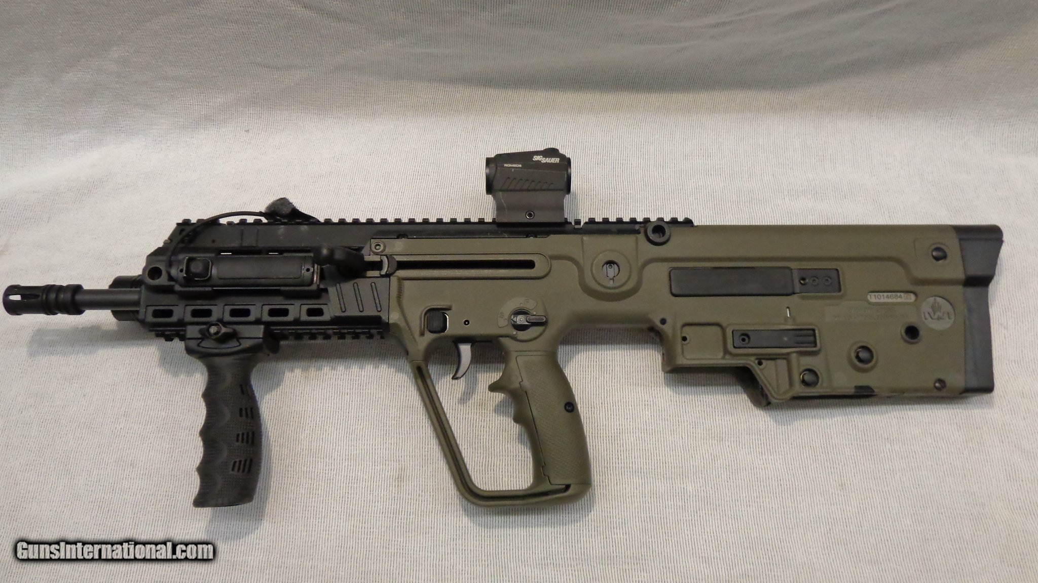 Description: Guns Listing ID: 1378821 This Tavor is in very good condition overall showing a few scratches. An aftermarket quad rail and buttpad have been added. The original furniture is included. A Sig Sauer Romeo5 sight, Streamlight Pro Tac flashlight, and one magazine are also included. SOLD Manufacturer: IWI Model: TAVOR - X95 Caliber Info: 5.56X45MM NATO Condition: Used - Non-Certified Barrels: 16 BARREL Finish: BLACK & OD GREEN |