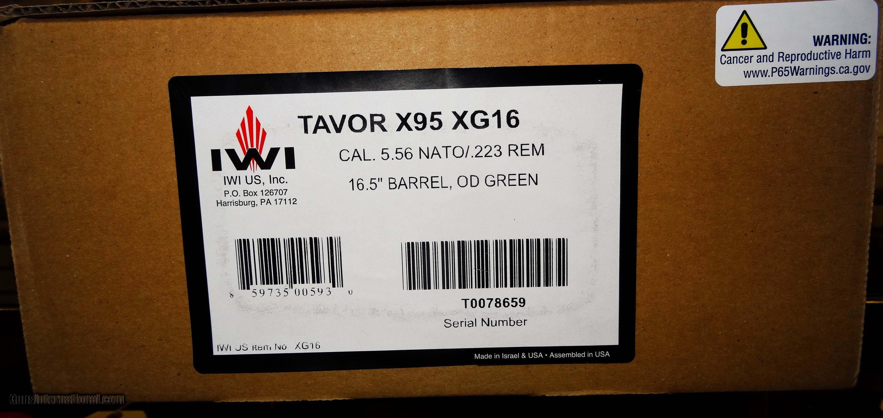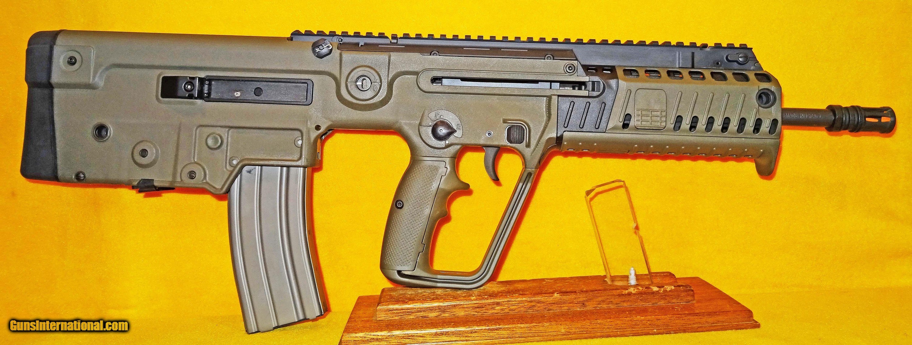 Description: IWI TAVOR X95 IN .223 CAL., WITH 16 1/2" BARREL. COLOR OLIVE GREEN. CONDITION 98% LIKE NEW. SERIAL NUMBER TOO78659. IWI MODEL TAVOR X95 (BULL PUP), BRIGHT SHINY BORE, STOCK AND FORE ARM EXCELLENT, FACTORY BOX AND PAPERS, COMES WITH ONE FACTORY MAGAZINE, 98% LIKE NEW OVERALL CONDITION, OUR STOCK # D1116. SOLD |