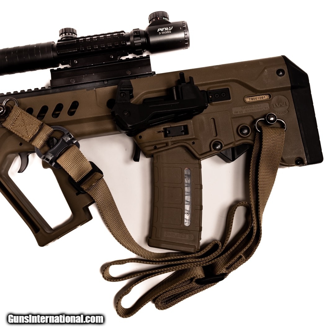 Description: Guns Listing ID: 685924 The Israel Weapon Industries Tavor SAR is a bullpup combat rifle chambered in 5.56. They’re rugged, premium quality rifles that are accurate, reliable, and most notably compact. This is definitely one of, if not the most, popular bullpup rifle on the market and has been featured in countless movies and video games. If you’re looking for a compact combat rifle that offers unique characteristics, a bullpup rifle is an excellent choice. A Piney 3-9X32mm scope, 1-30 round magazine, sling, and a bipod attachment are included. Get the best bang for your buck when you get a Certified Used Firearm . When you see the Certified Used stamp on any of our firearms, you can be confident that you’re getting exactly what you want – a gun only in very good to excellent condition and held to the highest quality standard. All Certified Used Guns come with a ‘no questions asked’ return policy . PLUS, ALL CERTIFIED USED GUNS SHIP FREE! SOLD Manufacturer: IWI USA Model: TAVOR SAR Caliber Info: 5.56X45MM NATO Condition: Used - Certified Barrels: 16.5" BARREL Finish: FDE |