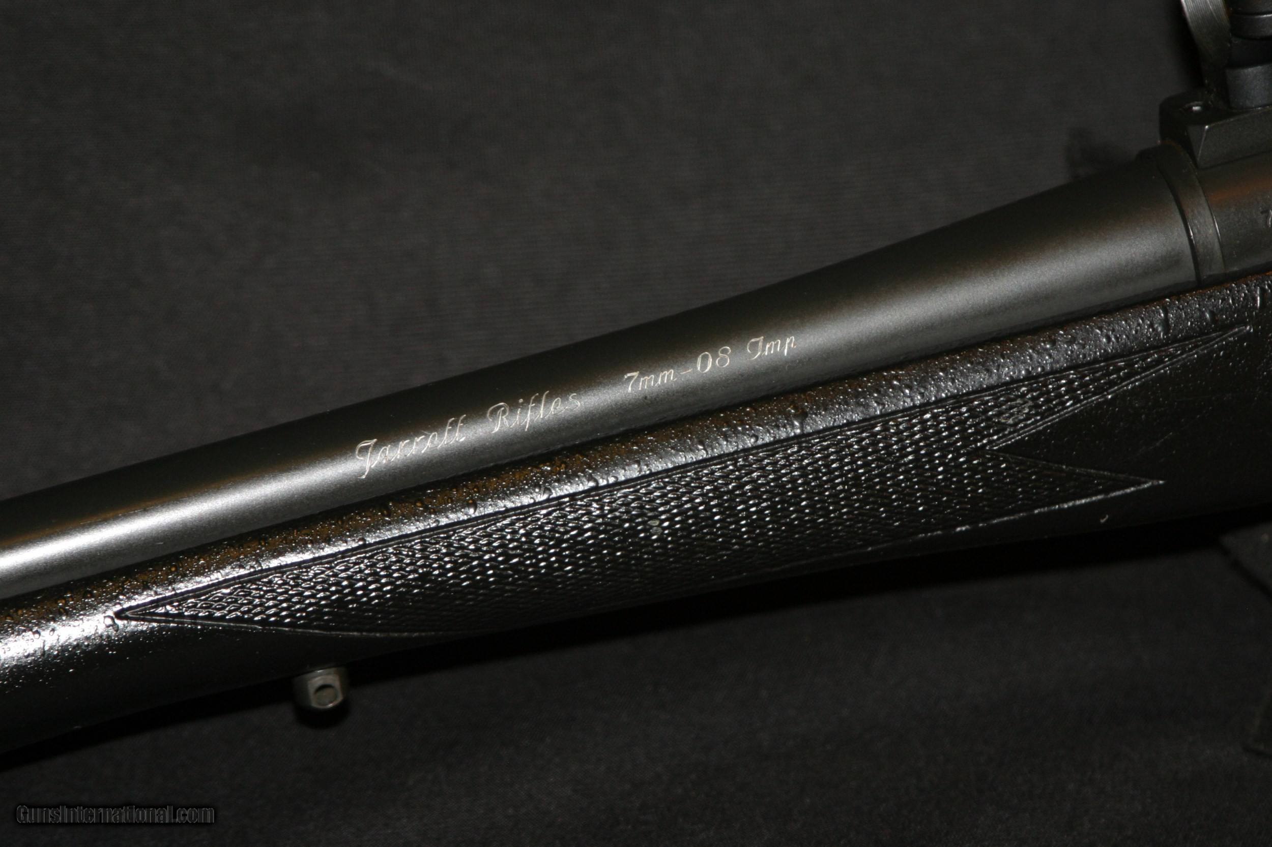 Description: A REMINGTON MODEL 7 ACTION WAS USED TO BUILD THIS JARRETT "WALK-ABOUT", CHAMBERED IN 7MM-08 IMPROVED, FOR A FAST LIGHTWEIGHT RIFLE WITH PLENTY OF REACH AND POWER. IT'S HAD A LITTLE HUNTING USE; HOWEVER THIS IS A LOT OF RIFLE FOR THE PRICE AND REMAINS IN EXCELLENT CONDITION. STANDARD FACTORY 7MM-08 AMMUNITION MAY BE USED, THEN BRASS IS RELOADED TO THE IMPROVED CARTRIDGE FOR HIGHER VELOCITIES. SOLD |