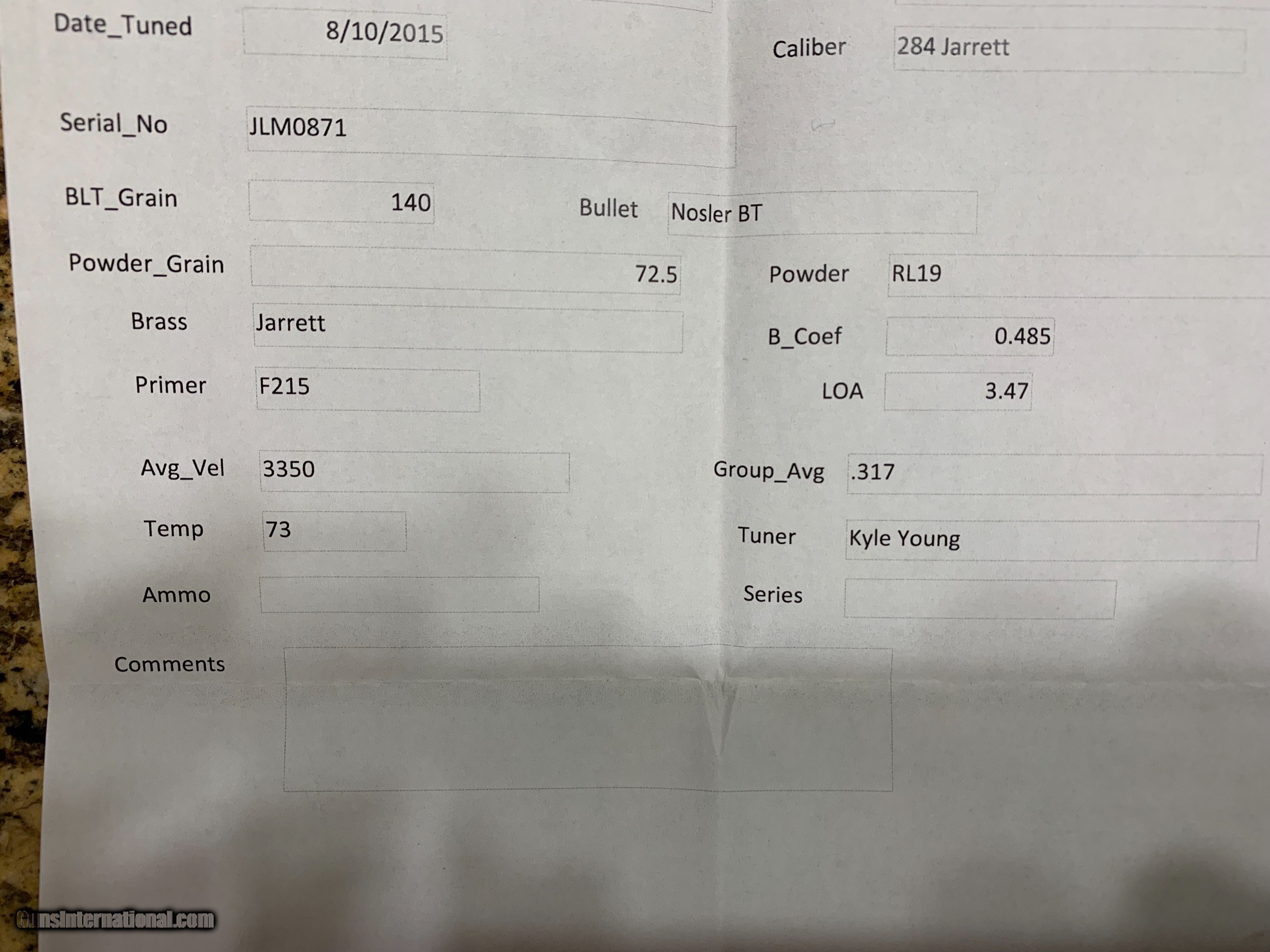 Description: Selling a Jarrett Wind Walker in .284 Jarrett. The gun was built in 2015 and is as new with only 35 rounds down the barrel. It comes with 43 rounds of the Jarrett tuned load for the rifle (140gr Nosler Ballistic Tip at 3350 FPS) and 35 pieces of once fired Jarrett brass. The Jarrett test targets ran around 1/3” for 3 shots with this load and I was able to replicate that (the two pictured targets were fired by me). The barrel is 24" to the Jarrett muzzle break, for a total length of 26", 1-10 twist, No. 2 taper. Jarrett Tri Lock action with Shilen trigger. The stock color is Kenoflage. The weight of the rifle is a hair under 7 lbs. Also included is a Zeiss HD5 3-15X50 scope in Talley mounts with custom turrets matched to the Jarrett load. Comes will all paperwork, test targets, and Jarrett sling. This is a fantastic rifle, just way more than I need hunting here in Louisiana. The .284 Jarrett is an impressive round, offering the performance of the 7mm STW with less powder. It is based off of the .300 Win Mag case, with a 35 deg shoulder and straightened case walls. You can read more about it on the Jarrett site under Kenny's Pet Calibers. Total replacement cost on this setup would run $9500. Asking $5495 OBO SOLD |