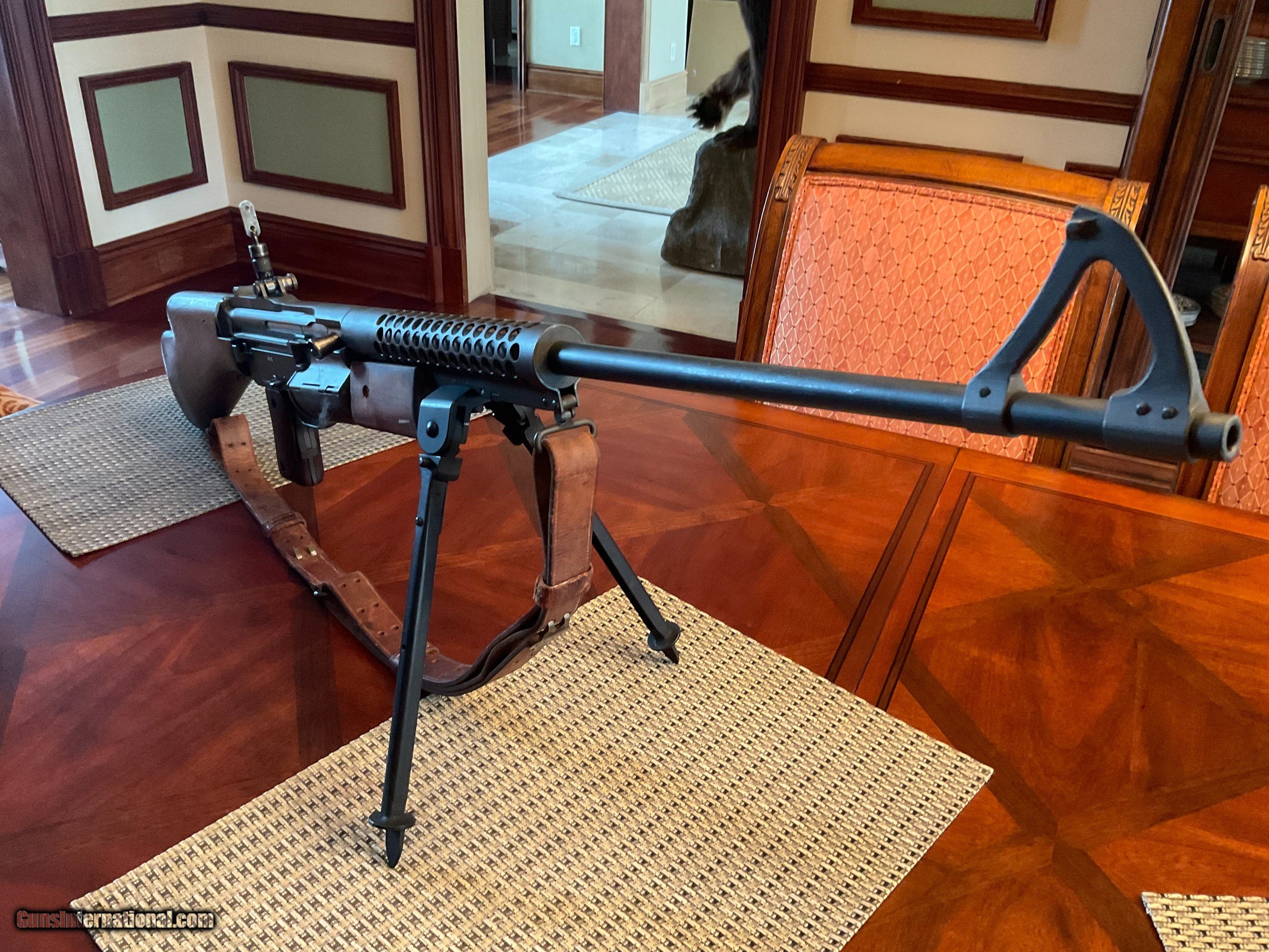 Description: 1941 Johnson Rifle Auto Carbine WWII USMC This is a Johnson Rifle Model 1941 in the auto carbine configuration. It is a very rare and uniqure version of the Johnson rifle. From my research it seems Melvyn Johnson only ever produced five of these. One of which " Not this one" served in WWII with US Marine Major Harry Torgerson. This gun is Serial Number is B6118 and was meant to be a lighter and shorter version of the semi auto 1941 rifle. This is almost a hybrid between the semi auto and full auto versions with features of both present. I will not go into the detailed history of the Johnson rifle. If you are looking at this listing you probably already know what you are looking at or you can find out an awful lot from Google or from Canfields book on the Johnson rifle. I have an autographed copy of the book. If you're interested in it, I will include the book at no additional charge. This gun has been in my consignor's collection for a very long time. He has never attempted to fire it so I cannot state that it is functional. From the fantastic condition I would assume it functions as intended but I do not know. The condition appears to be original but please judge for yourself from the photos. If it has been refinished it would have been decades ago before he owned it. The stock does have a few dings and dents and scratches but nothing major. The overall condition of this rifle is excellent for its age. The sling is an aftermarket sling which he purchased and added many years ago. If you need any additional photos or have questions please ask. I will do my best. I will include and ship the gun in an aluminum and padded rifle case so as to protect it in transit. ****WE ARE ALWAYS BUYING AND ARE VERY EXPERIENCED IN ESTATE SALES TOO. LET US KNOW HOW WE CAN HELP!**** PAYMENT: -Payment must be recieved within 10 days of purchase. 3% additional charge for credit card processing. SHIPPING & HANDLING: -$30 for handguns and $45 for long guns SHIPPING FIREARMS: -Firearms shipped to FFL dealer only -We will ship upon receipt of payment and signed legible copy of dealer's FFL via Fax, Mail or E-mail. CONTACT: -Contact me with any and all questions. We want you to be happy with your purchase. PHONE #: (904) 271-5270 BUYER: -It is Buyer's responsibility to ensure that the weapon is LEGAL to own in your city/state. SOLD Curio/Relic: Yes Rifle Caliber: .30-06 Springfield |