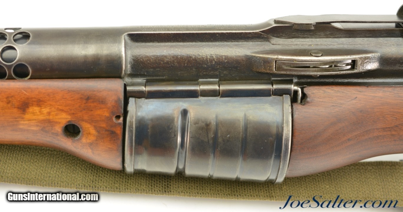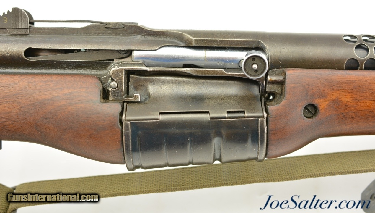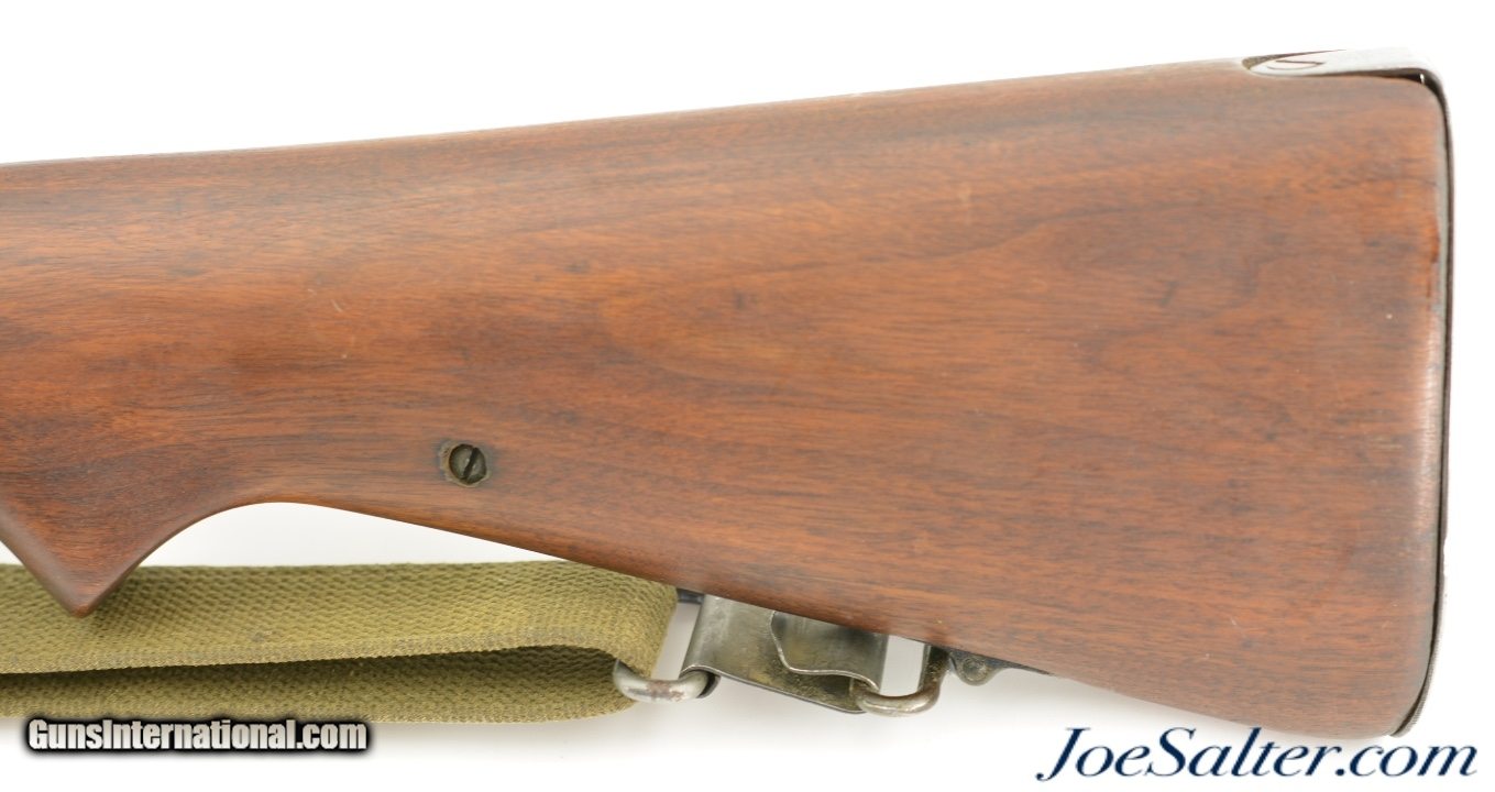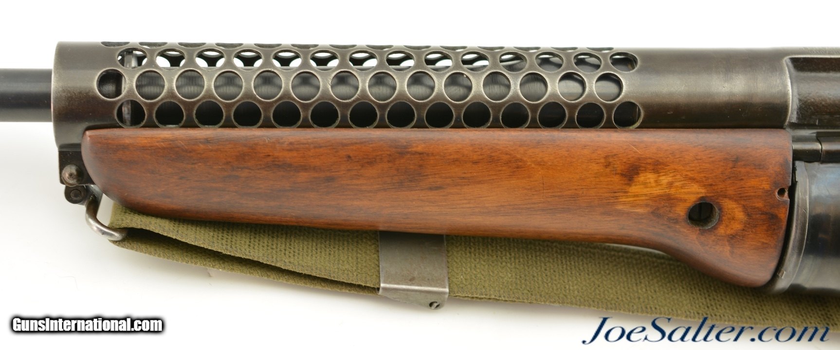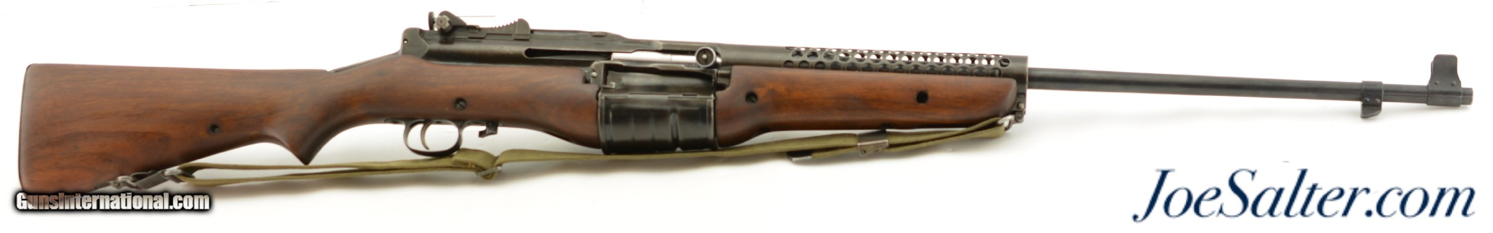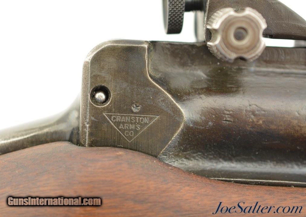 Description: Serial #9689, .30-06, 22" barrel with an excellent, bright bore. This is a handsome rifle that retains 85-90% of a professionally applied added blue finish that has silvered along the receiver and edges of the ventilated handguard, and also intentionally polished to bright on the bolt handle, breech end of the barrel (not visible when the barrel is dismounted), and muzzle crown. The right side of the receiver has the small Dutch colonial five-pointed star acceptance stamp above the "CRANSTON / ARMS / CO.", which is still quite sharp and clear. The barrel barrel bushing caliber marking is no longer visible and there are machining marks present on the face, but the underside of the barrel breech still has the "I (sword) O" proof applied to all of the Netherlands contract rifles. White paint has been added to the front sight blade for visibility, and a target aperture disk has been fitted to the rear sight. The walnut forend and buttstock are of the early "solid" type without laminated sections behind the rotary magazine, and have been nicely refinished to excellent condition with scattered minor handling marks throughout. Lastly, a 1948-dated MRT M1 canvas sling is installed. Also included with the rifle are an information packet with laminated disassembly instructions, and a 90 minute informational DVD from Joe Scott. The rifle is in very good-near fine condition, mechanically excellent, and would make a a great shootable addition to any collection. FFL or C&R; SOLD Curio/Relic: Yes |