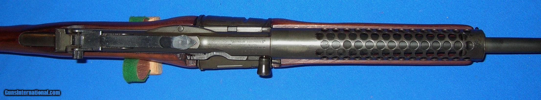 Description: Sold / Pending Funds Johnson Model 1941 Semi Auto Rifle, serial # B 7070, cal. 30-06, has a 23" barrel with a very good bore, barrel and receiver show about 97%+ finish with sharp factory markings, the butt stock and forearm show only minimal handling marks attributed to a stored firearm, overall this rifle’s condition would be hard to upgrade its in Collectors Grade Condition and will look great in any Military Collection. Inv.:# 02-13 SOLD Curio/Relic: Yes |