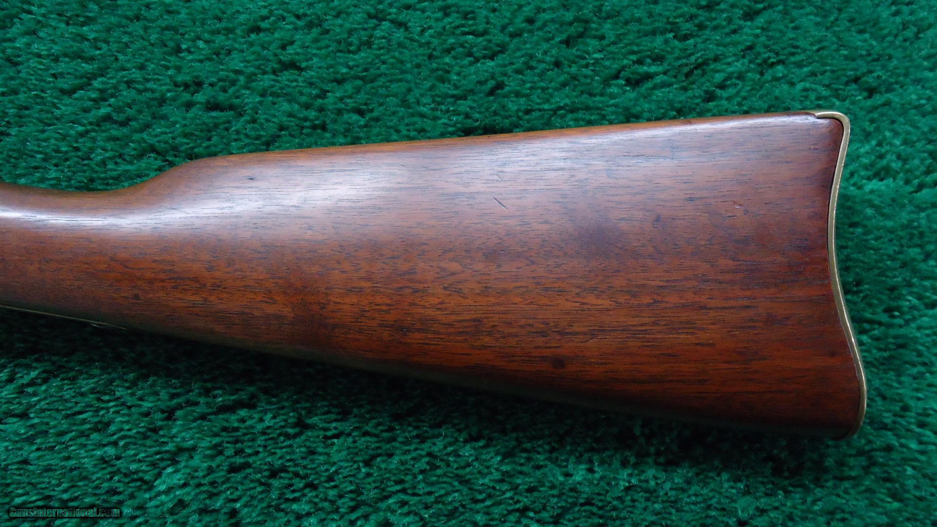 Description: Cal 52 RF. 22" bbl and standard sights. Standard brass fitting and the friction latch with Model 1862 markings. After buying 2,200, the US Government requested improvements to the latch so it would not come open during combat. The Model 1864 was the outcome with a spring operated catch and all case hardened furniture. This bbl is a faint blue. Brass bbl band, trigger guard and buttplate are a nice mustard color. Remainder of metal is a mottled gray. Wood has been lightly freshened and has 2 visible cartouche. Lots of inspector markings. Lock functions fine. Leroy Merz Antique Firearms specializes in antique and vintage Winchesters and other fine American firearms. Since 1965 Mr. Merz has taken part in the world of firearms and has been a contributor to many well known reference books. Just recently we mailed the 127th edition of our privately-published catalog. We have hundreds of additional guns in every price range at our home online. Search for Merz Antiques in google. SOLD Antique: Yes |
