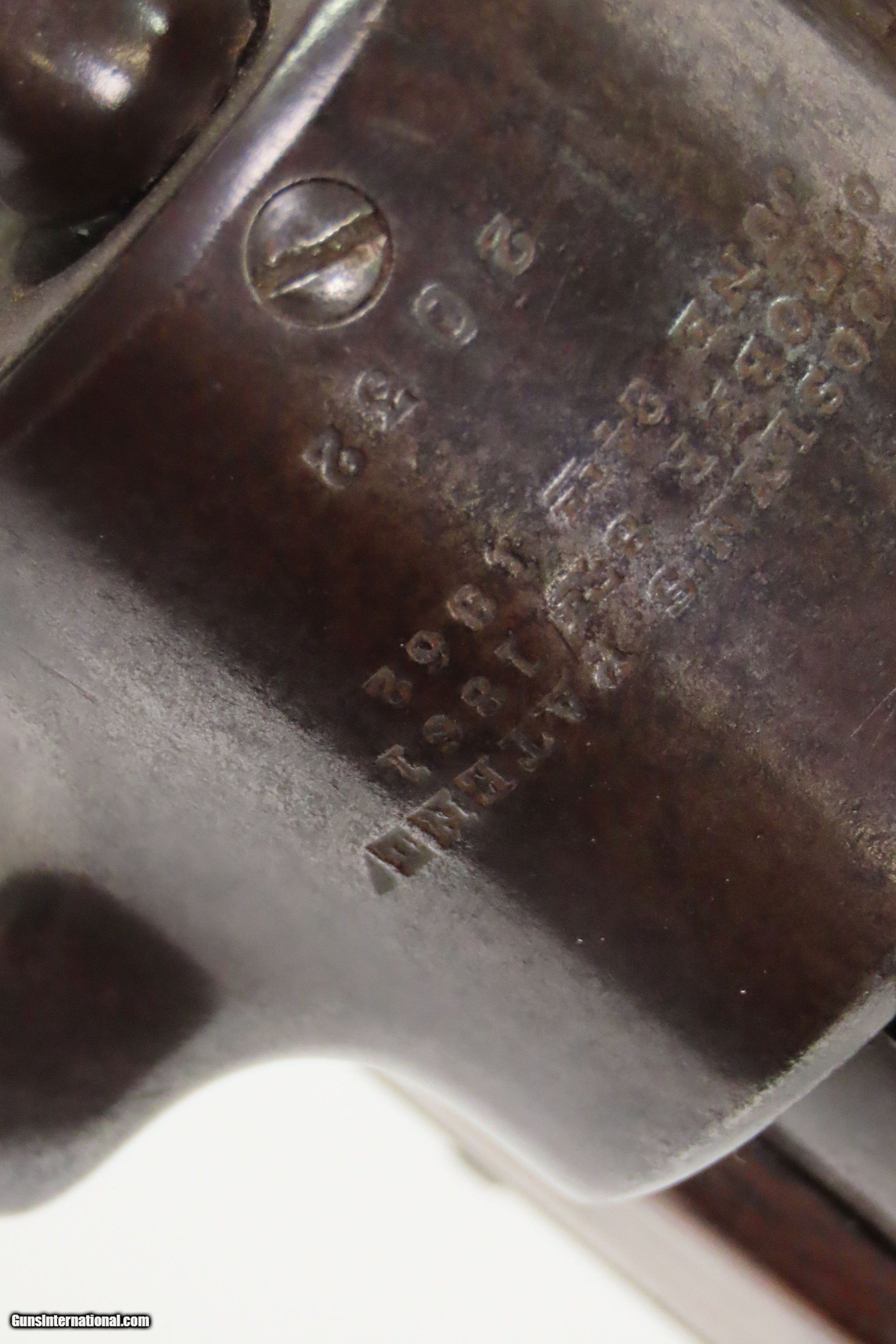 Description: Scarce CIVIL WAR Antique JOSLYN ARMS U.S. M1862 CAVALRY Saddle Ring Carbine Scarce 1 of 2,200 Carbines UNION ARMY Purchased Here we present an antique Joslyn Arms U.S. Model 1862 Civil War Cavalry Saddle Ring Carbine, made circa 1862-63 in Stonington, Connecticut. The Joslyn Carbine Model 1862, also referred to as the First Model, was a cavalry weapon that used a pivoting breechblock system invented and patented by Massachusetts gun designer Benjamin Franklin Joslyn in 1855, who was the holder of over 25 firearm patents. Under his June 1862 contract, the Joslyn Fire Arms Company produced their first rimfire model carbine now designated as the “Model 1862”. Designed for field use with Federal horse soldiers, the Joslyn Carbine fired a standard Spencer rimfire cartridge of .52 caliber. Approximately 3,500 Model 1862 carbines were made, 2,200 of which the U.S. Government purchased during the Civil War. They were widely issued to the Union cavalry units, including the 4th and 8th Indiana, 19th New York, 13th Tennessee, 9th Pennsylvania, 3rd West Virginia, 1st Nebraska, 2nd Wisconsin, 1st Nevada, and 11th Ohio. As a result of his success with the carbine, the federal government ordered 3,000 of his breech-loading actions in order to build the U.S. National armory made breech-loading rifles. This pre-dates the Allin conversion and some of these 3,000 rifles are suspected to have been issued and used just before the end of the American Civil War. The overall condition is very good. Original finish. The action is excellent. The bore is bright with strong rifling. The stock shows signs of use and a small chip at the toe, otherwise solid. This example has "T.K.L" inspection initials on the left of the rear sight with a faint cartouche on left stock flat. Numbers match. Own the original! This is a legitimate antique and not a reproduction. Barrel is 22 inches. Caliber: .52 Spencer Overall condition as seen in photos. Very Fast. Very Safe. FREE SHIPPING WORLDWIDE. Delivered directly to your door by express mail! Guaranteed AUTHENTIC & Includes CERTIFICATE OF AUTHENTICITY. ancestryguns $2600 #247159 SOLD Antique: Yes |