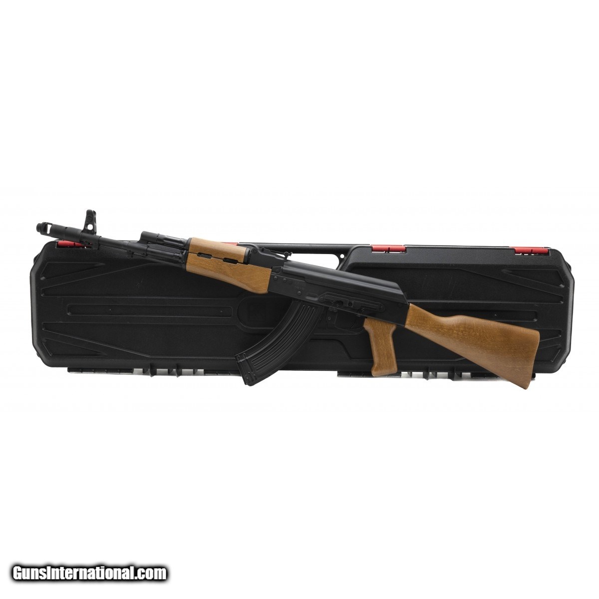 Semi-auto AK style rifle with a 16.25"" barrel, amber wood furniture and a KUSA hard case. NEW. UPC:811777020883.
