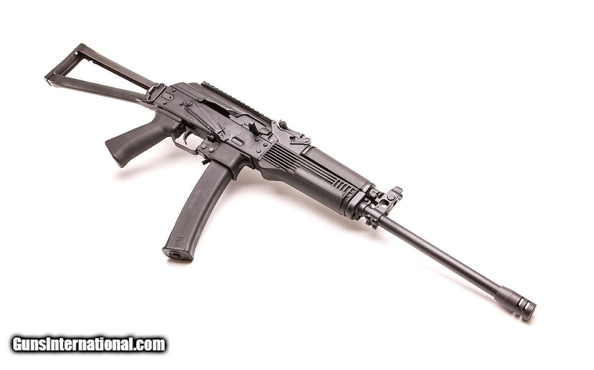 Description: Guns Listing ID: 351628 The KR-9 is a U.S. manufactured 9mm semi-automatic AK style rifle. It is based on the Russian Vityaz-SN submachine gun, has a 16.25\" barrel and accepts 30 round double stack Kalashnikov USA magazines. The KR-9 comes with a skeletonized style metal side folding stock, hinged top cover with attached Picatinny rail. and a .5 -28 threaded flash suppressor. SOLD Manufacturer: KALASHNIKOV Model: KR-9 Caliber Info: 9MM LUGER (9X19 PARA) Condition: new Barrels: 16.3 BARREL |