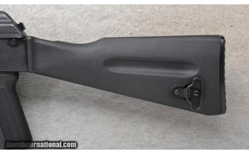 Description: This Kalashnikov Model KR103 is a right hand semi-auto rifle in 7.62x39mm Cal. It has a 16 inch barrel plus a muzzle device. It has an adjustable post front sight with protective sides and a tangent middle sight. The butt stock is a fixed black polymer and a checkered grip black polymer full pistol grip. The forearm is a dual ribbed black polymer. 7.62x39mm SOLD Chambers: 30 round magazine. Metal Condition: very Good. Bore Condition: Excellent. Barrels: 16 inch barrel plus a muzzle device. Stock Dimensions: LOP 13 inches. Fore End: Dual ribbed grip black polymer. Butt Pad: Ribbed steel cap with storage compartment that contains a tool tube. Weight: 7 lb. 8 oz. Sights: Adjustable post front with protective sides. Tangent middle. Item Location: Richfield, WI |