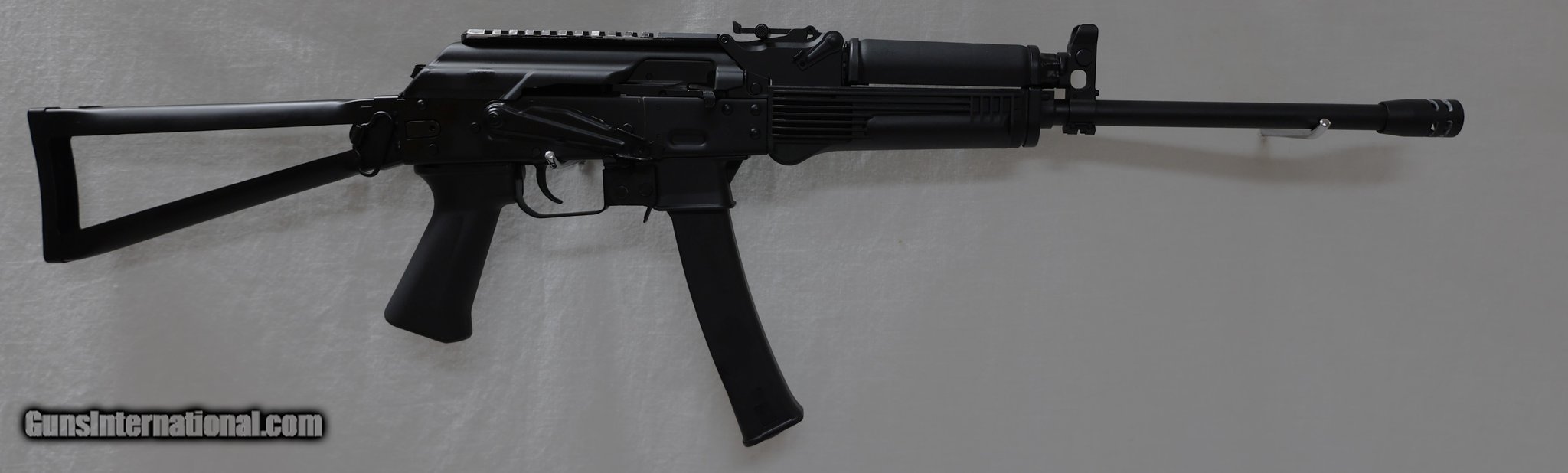 Description: Guns Listing ID: 1205549 This rifle is a lot of fun to shoot and a great conversation item at the range! Overall condition is good, however there is a lot of wear on the picatinney rail on top of the firearm and minor scuffs on the flash suppressor. Otherwise, the rifle is pretty much blemish free. This firearm comes with it‚‚s original case and 5 magazines. Kalashnikov USA KR9: The KR-9 is a U.S. manufactured 9mm semi-automatic AK style rifle. It is based on the Russian Vityaz-SN submachine gun, has a 16.25\" barrel and accepts 30 round double stack Kalashnikov USA magazines. The KR-9 comes with a skeletonized style metal side folding stock, hinged top cover with attached Picatinny rail. and a .5 -28 threaded flash suppressor SOLD Manufacturer: KALASHNIKOV USA Model: KR-9 Caliber Info: 9MM LUGER (9X19 PARA) Condition: Used - Non-Certified Barrels: 16.25 BARREL Finish: BLACK |