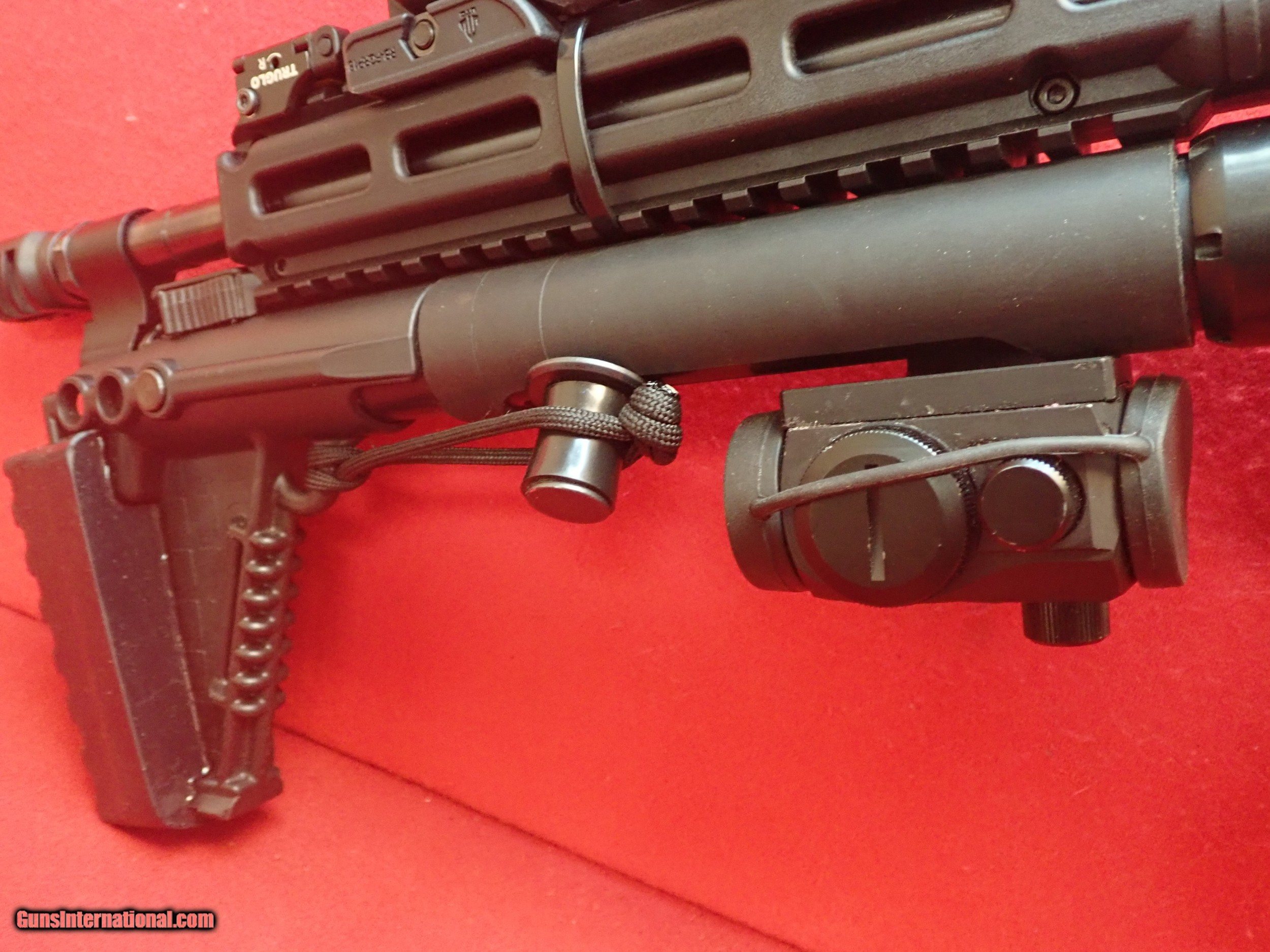 Description: **SOLD**KelTec Sub2000 Gen2 .40S&W semi automatic carbine. This carbine features the same unique KelTec Sub2000 folding design and bowback action with some new features and upgrades to make it even more practical. The rifle is fitted with an ATI rubber butt pad, an upgraded charging handle with rubber cover, a Tacticool Products rubber cheek piece, an upgraded aluminum trigger and trigger guard, M-lok handguard, Midwest Industries Aimpoint T1/T2 mount specifically designed for the Sub2000, (currently fitted with Primary Arms MD-ADS). The mount flips the optic outward to allow for the rifle to fold, and flips back to stay compact. A piece of paracord is provided to loop around the charging handle, to prevent it from coming out of its notch under spring tension and damaging the lens of the optic. The front end is fitted with an adjustable grip, as well as a compact flashlight and a small laser unit. The muzzle is fitted with a brake/compensator as well. Overall the carbine is in great condition and appears to have seen light use. Includes one 32rd Ruger Sr9 magazine. This is the Multi-Mag version of the rifle, which is designed to fit a wide variety of different brand magazines.**SOLD**Please refer to the photos to further assess the condition of the rifle. Please refer to state and local laws before purchasing. A very cool carbine, a perfect truck gun! SOLD Manufacturer: Kel Tec Model: Sub2000 Serial Number: FK350 Caliber Info: .40S&W |