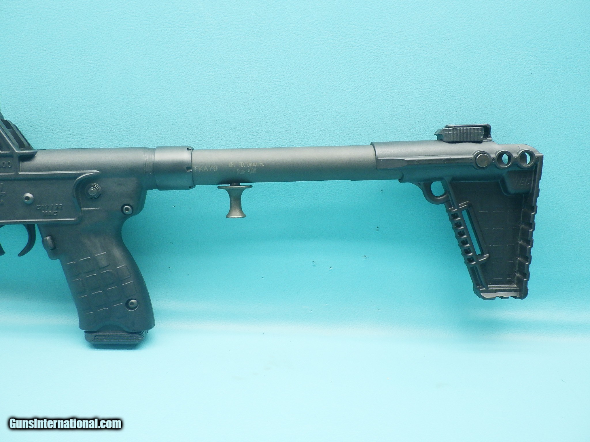 Description: Make: Kel-Tec Model: Sub-2000 Gen 2 Finish: Parkerized Caliber: 9mm Action: Semi-Auto Barrel length: 16 1/4 inches Bore: Smooth with sharp rifling Stock material: Polymer Sights: Adjustable front aperture rear Scope: N/A MFG Date: N/A Features: Foldable to 16.25 X 7 inches, threaded barrel, aluminum front sight can be removed to add a flash hinder, 3 position adjustable stock, top and bottom picatinny rails, 5 magpul M-Lok slots per side, "Gator Grip" textured grip, stock and forend and single point sling attachment. Extras: 17rd magazine Condition: Good with signs of light use NOTE: the trigger guard on firearm is broken Shipping cost: $40 Please refer to the photos for the overall condition. FFL is required. No sale where prohibited by law. SOLD Rifle Caliber: 9x19mm Parabellum (9mm Luger, 9x19mm NATO) Manufacturer: Kel-Tec Model: Sub-2000 Barrel Length: 16 1/4 |