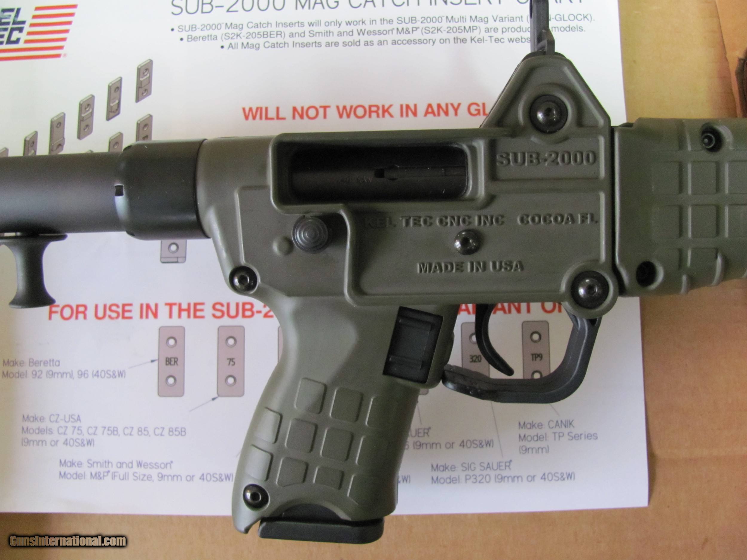OD GREEN KEL-TEC SUB-2000 SEMI AUTO 40S&W CALIBER CARBINE THAT ACCEPTS GLOCK MAGAZINES