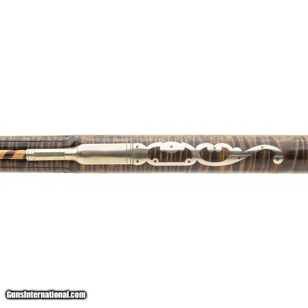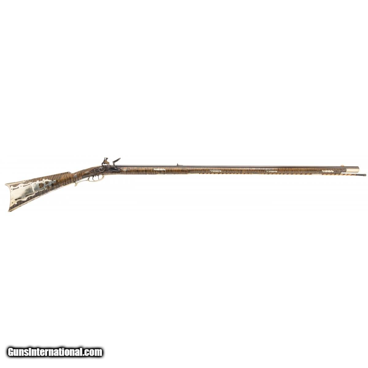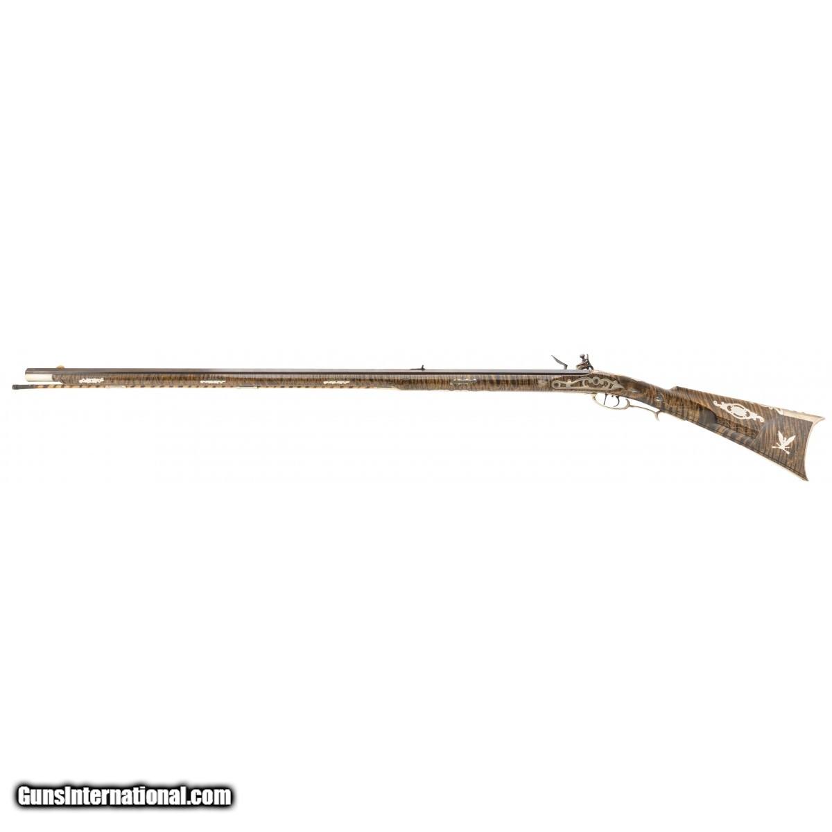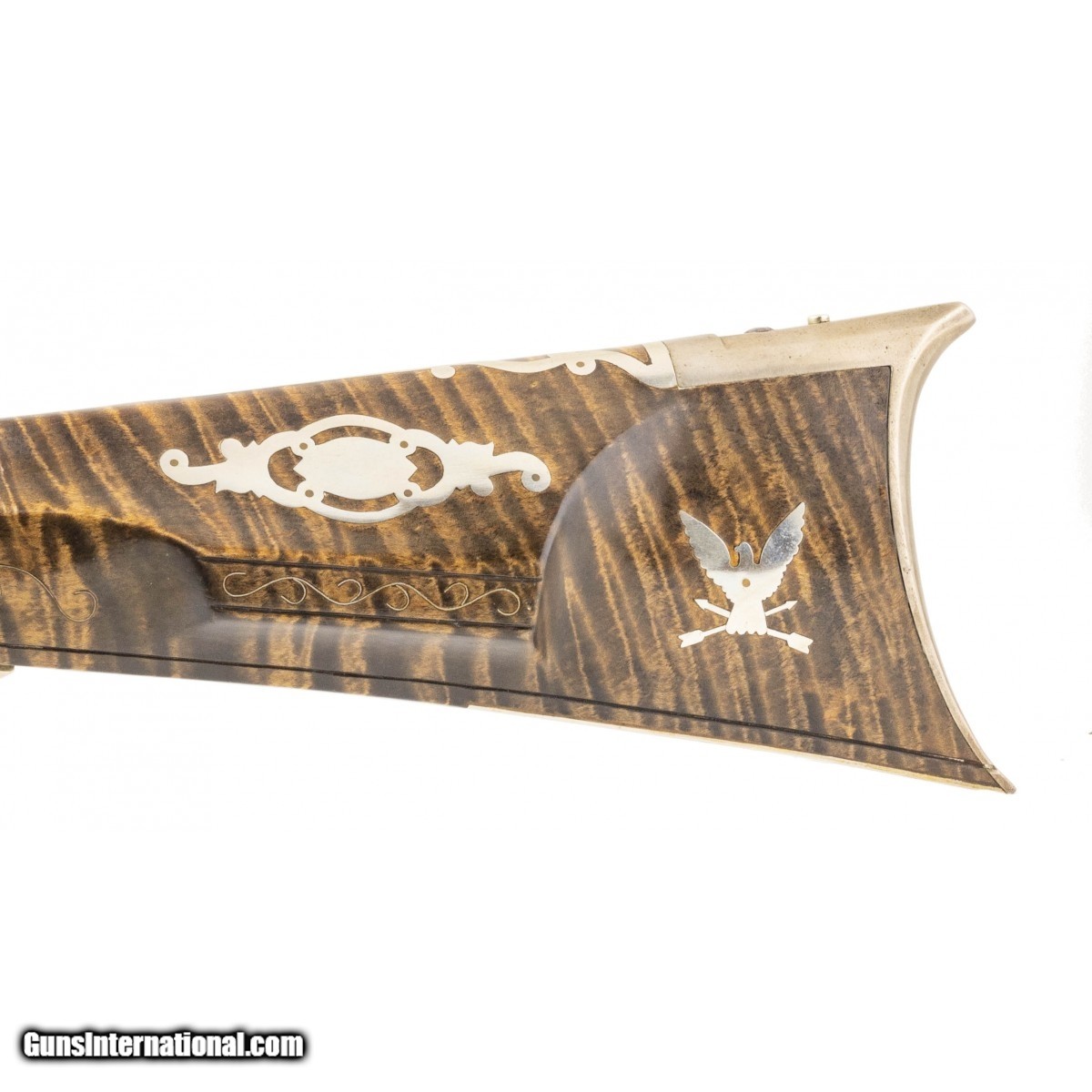 High quality Kentucky rifle. Barrel is 40"" and is marked ""J.F. White"" on flat. Curly maple stock is near excellent with German silver inlays. Butt trap has it's release button directly on top of butt plate. Action works perfectly. Excellent overall condition. Bore is approximately .45 caliber. Fantastic craftmanship!