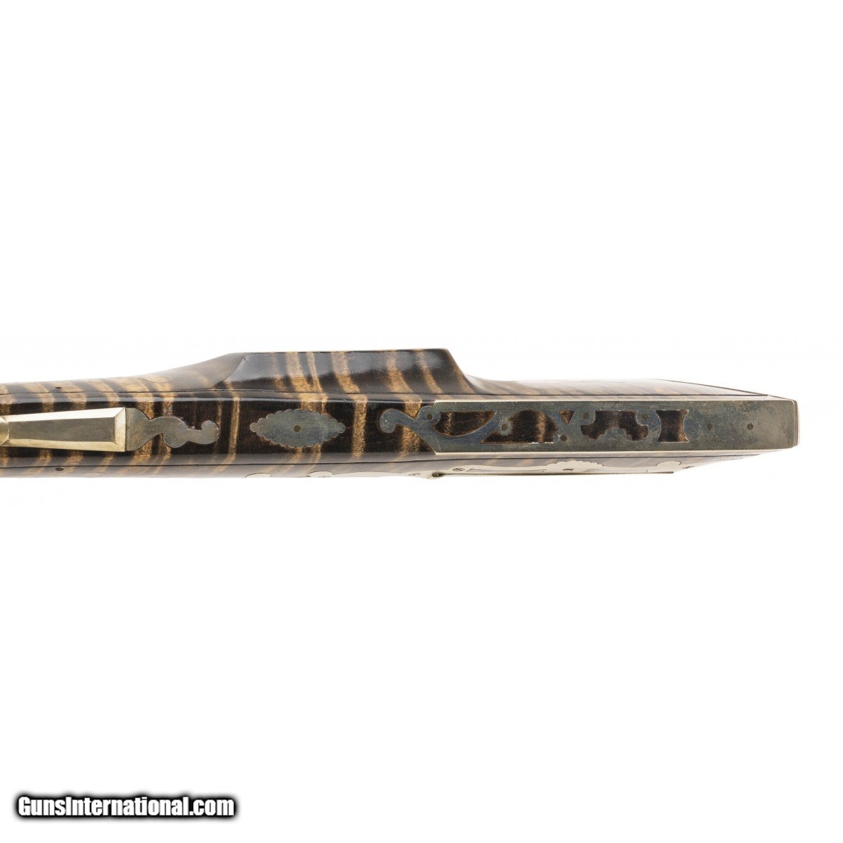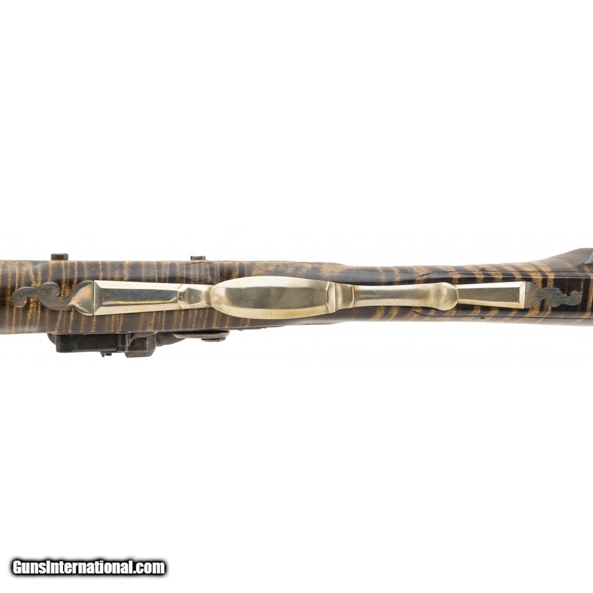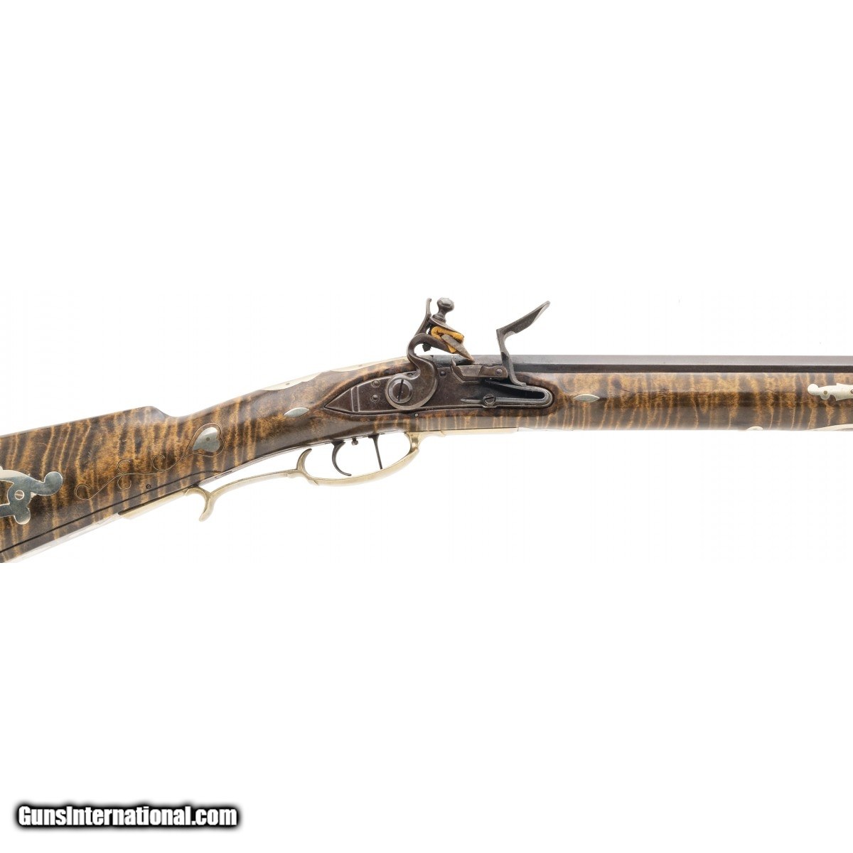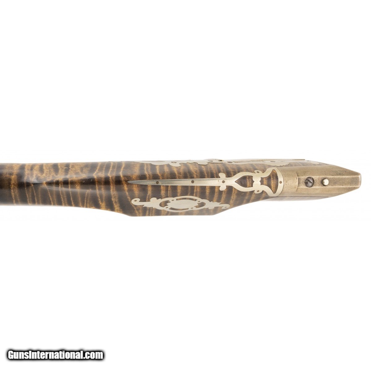 High quality Kentucky rifle. Barrel is 40"" and is marked ""J.F. White"" on flat. Curly maple stock is near excellent with German silver inlays. Butt trap has it's release button directly on top of butt plate. Action works perfectly. Excellent overall condition. Bore is approximately .45 caliber. Fantastic craftmanship!
