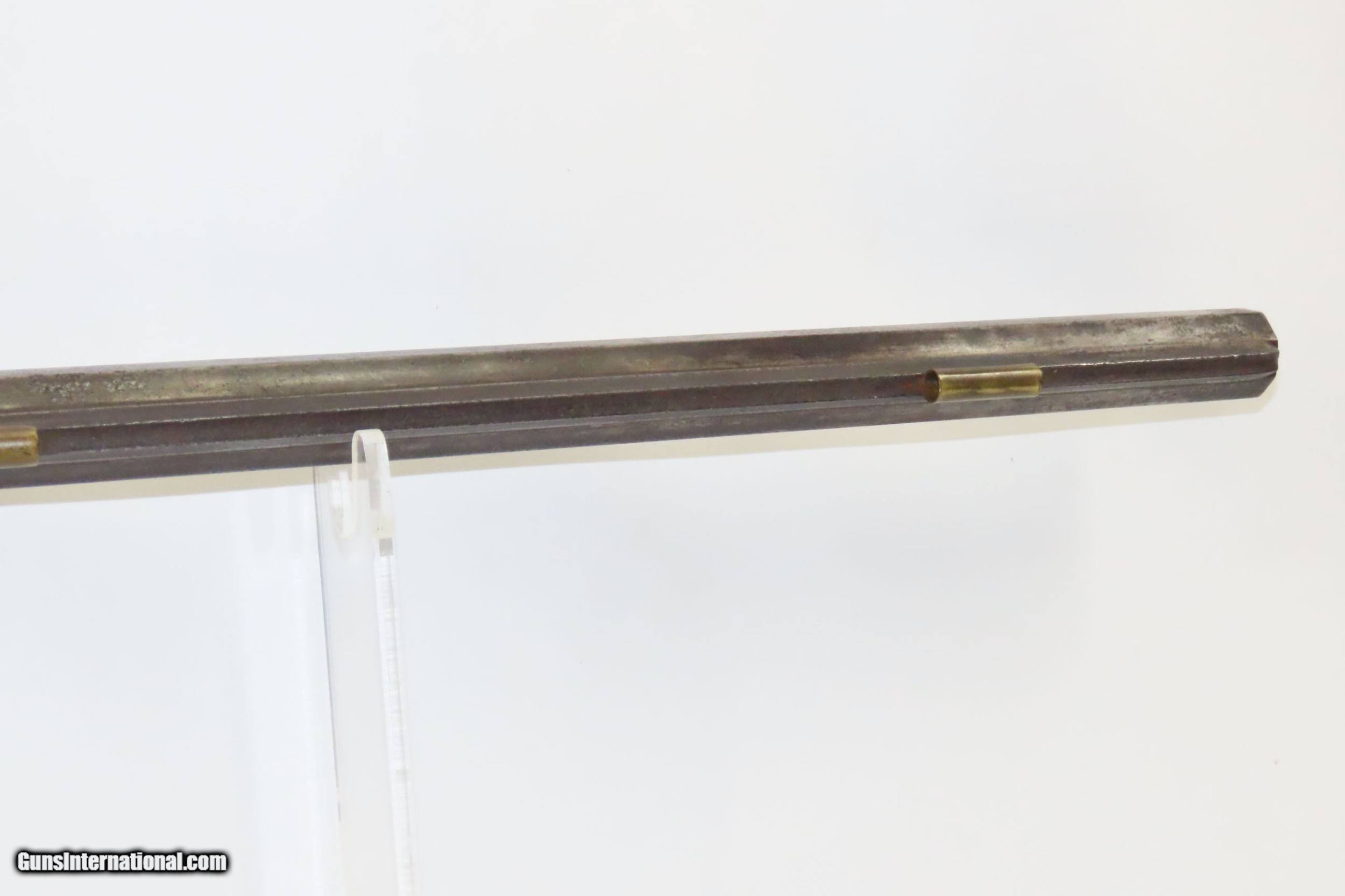 Description: Antique A. GORDON Half-Stock .40 Caliber Percussion Conversion LONG RIFLE Kentucky Style Rifle with T. DAVIDSON & Co. Lock Here we present an antique A. Gordon Half Stock Percussion Conversion Long Rifle, made circa the early-19th Century. This gun would have started out life as a flintlock and converted when the more reliable percussion firing system was introduced. Its stout octagonal barrel is in .40 caliber, large enough to take small to medium sized game or to defend the homestead against unwanted aggression. Rifle manufacture in the mid-to-late 19th Century was rapidly changing over from thousands of craftsmen all over the United States and on the Frontier making and selling their wares, to the large factories with standardized assembly lines and modern manufacturing techniques. Many makers’ names of the so-called Kentucky long rifles have been lost over time. This rifle is one such example. The American Long Rifle, more commonly, but less correctly, known as the ‘Kentucky rifle’, was described by Captain John G. W. Dillin in the dedication to his seminal 1924 book, The Kentucky Rifle: “From a flat bar of soft iron, hand forged into a gun barrel; laboriously bored and rifled with crude tools; fitted with a stock hewn from a maple tree in the neighboring forest; and supplied with a lock hammered to shape on the anvil; an unknown smith, in a shop long since silent, fashioned a rifle which changed the whole course of world history; made possible the settlement of a continent; and ultimately freed our country of foreign domination. Light in weight; graceful in line; economical in consumption of powder and lead; fatally precise; distinctly American; it sprang into immediate popularity; and for a hundred years was a model often slightly varied but never radically changed.” The overall condition is good. Strong action, double set triggers. The bore is dim and remains clear. Solid stock throughout, but is missing a chip just behind the lock. Missing ramrod and middle barrel pin (stable). “A. GORDAN” is marked atop the barrel. Own the original! This is a legitimate antique and not a reproduction. Barrel is 39-1/4 inches. Caliber: .40 Percussion Overall condition as seen in photos. Very Fast. Very Safe. FREE SHIPPING WORLDWIDE. Delivered directly to your door by express mail! Guaranteed AUTHENTIC & Includes CERTIFICATE OF AUTHENTICITY. ancestryguns $1500 #217061 SOLD Antique: Yes |