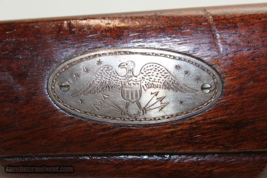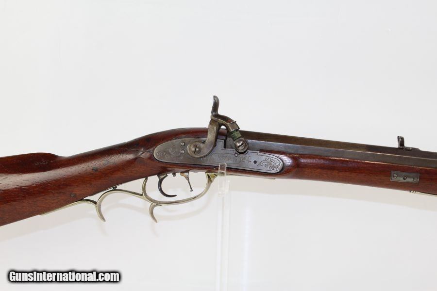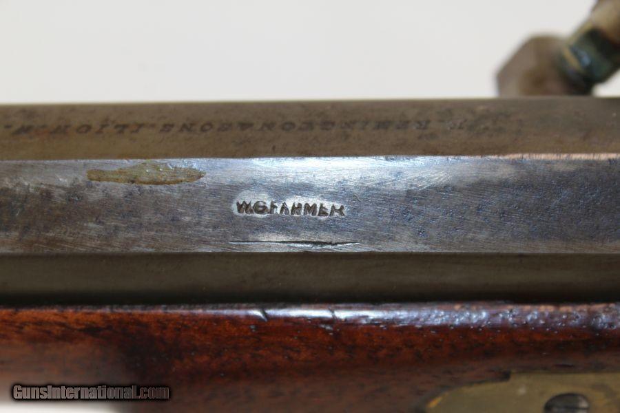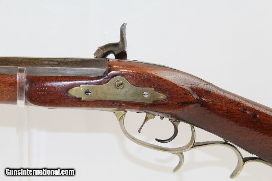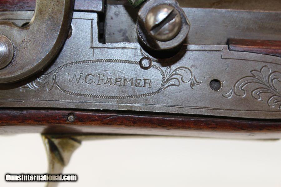 Description: Antique AMERICAN Long Rifle by FARMER Maker Marked Lock & Barrel! Here we present an antique Half Stock American Percussion Long Rifle, made circa 1840, most likely in New York. This rifle would have made a handy rifle for the woods with its relatively short overall length. It’s bore is .36 caliber. The lock and left side of the barrel are marked “W.G. FARMER”. The octagonal barrel was made and is marked by Remington. The Remingtons were first barrel makers before making complete firearms during the Antebellum period. This rifle features a double set trigger and German silver hardware. There is a really neat example of an American primitive federal eagle on the left side of the butt stock, imbedded in the cheek rest. The overall condition is good. The metal surfaces are dark with age. The markings are clear and legible. The stock has a stable repair emanating from the back of the lock to the back of the sideplate on the other side. The bore is dark with visible rifling. The action is strong. Own the original! This is a legitimate antique and not a reproduction. Barrel is 26-3/4 inches. Caliber: .36 Overall condition as seen in photos. Very Fast. Very Safe. FREE SHIPPING WORLDWIDE. Delivered directly to your door by express mail! Guaranteed AUTHENTIC & Includes CERTIFICATE OF AUTHENTICITY. ancestryguns $1275 #8259 SOLD Antique: Yes |