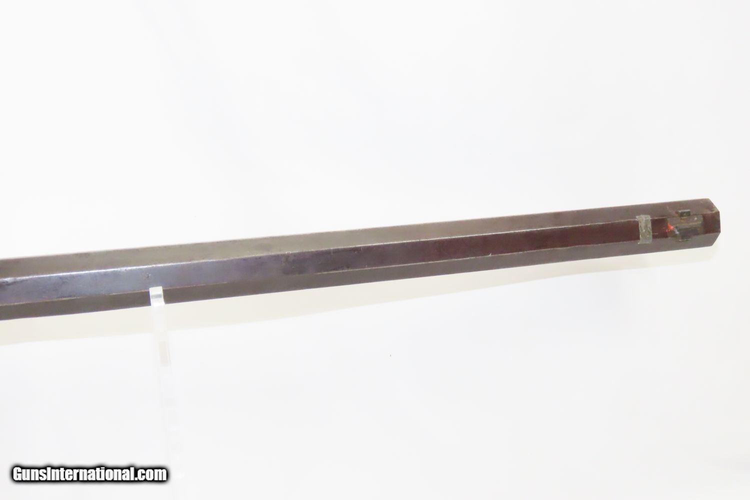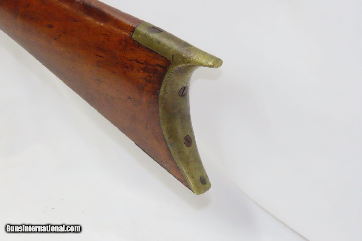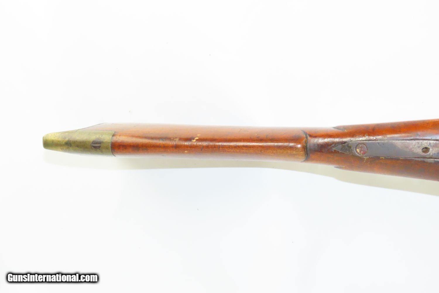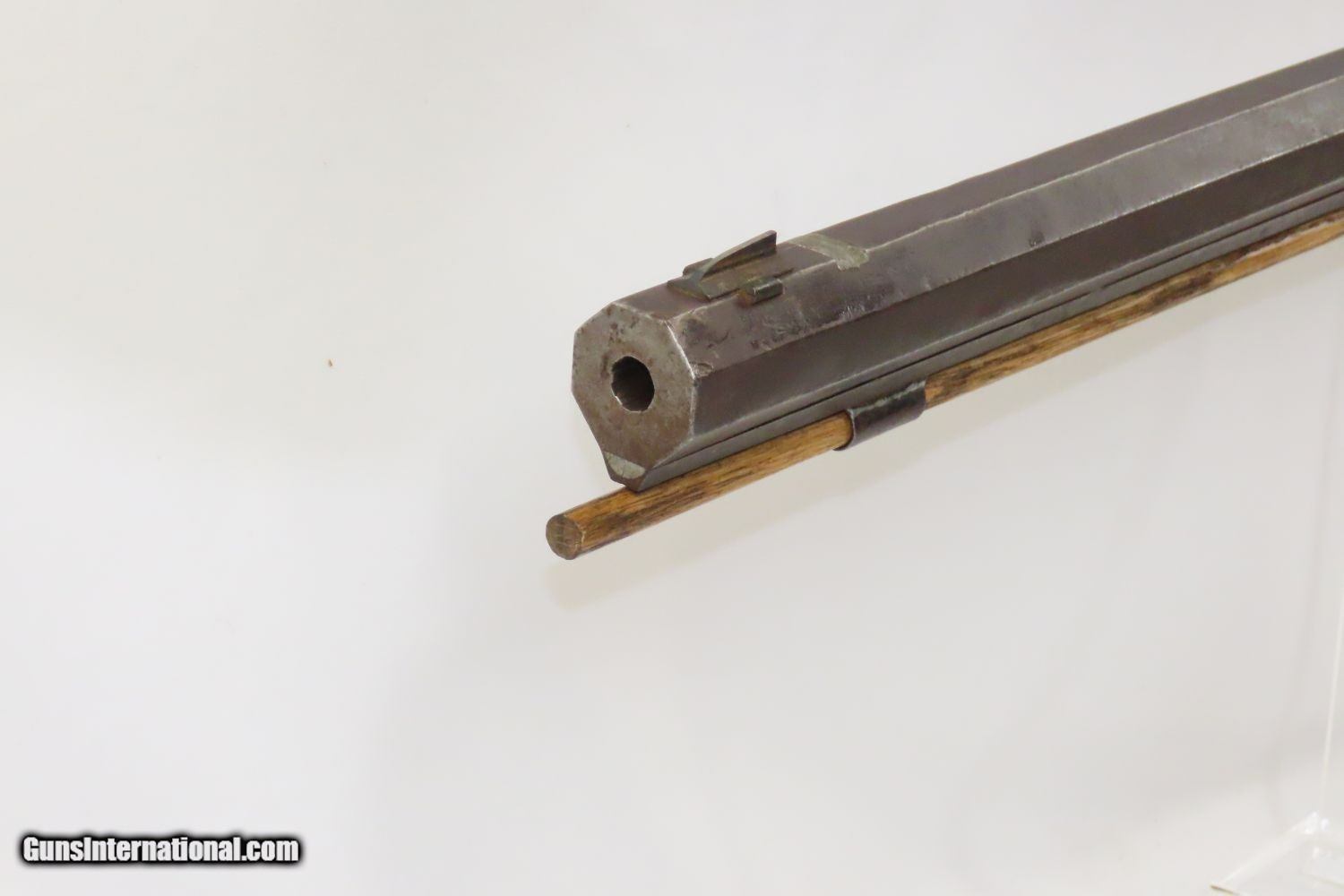 Description: Antique BACK ACTION Half Stock HEAVY BARREL Percussion .42 Cal. Long Rifle Kentucky Style Long Rifle Made Circa 1850! Here we present an antique Back Action Half Stock Heavy Barrel Percussion Long Rifle, made circa the mid-19th Century. Its stout octagonal barrel is in .42 caliber, large enough to take small to medium sized game or to defend the homestead against unwanted aggression. Rifle manufacture in the mid-to-late 19th Century was rapidly changing over from thousands of craftsmen all over the United States and on the Frontier making and selling their wares, to the large factories with standardized assembly lines and modern manufacturing techniques. Many makers’ names of the so-called Kentucky long rifles have been lost over time. This rifle is one such example. These locks were called “back action” because the mainspring hangs behind the tumbler. The back action is often used in double rifles and occasionally in single barrel shotguns where the need for strength requires as little steel as possible be removed from the bar of the action. This lock was popular on percussion guns made in St. Louis, New York, California, Ohio, England and Belgium. Back Action percussion locks were a “late” developed style of lock. Used primarily on the hardware store line of guns, these locks did, however, show up on some better pieces in the mid-to-late 1800′s. The overall condition is good. Strong action. Semi-bright bore. This example sports a solid stock all around! The barrel is massive, as this example weighs in at 13 lbs! Here is a hearty, antique back action rifle to add to the collection! Own the original! This is a legitimate antique and not a reproduction. Barrel is 32 inches. Caliber: .42 Percussion Overall condition as seen in photos. Very Fast. Very Safe. FREE SHIPPING WORLDWIDE. Delivered directly to your door by express mail! Guaranteed AUTHENTIC & Includes CERTIFICATE OF AUTHENTICITY. ancestryguns $1165 #210433 SOLD Antique: Yes |