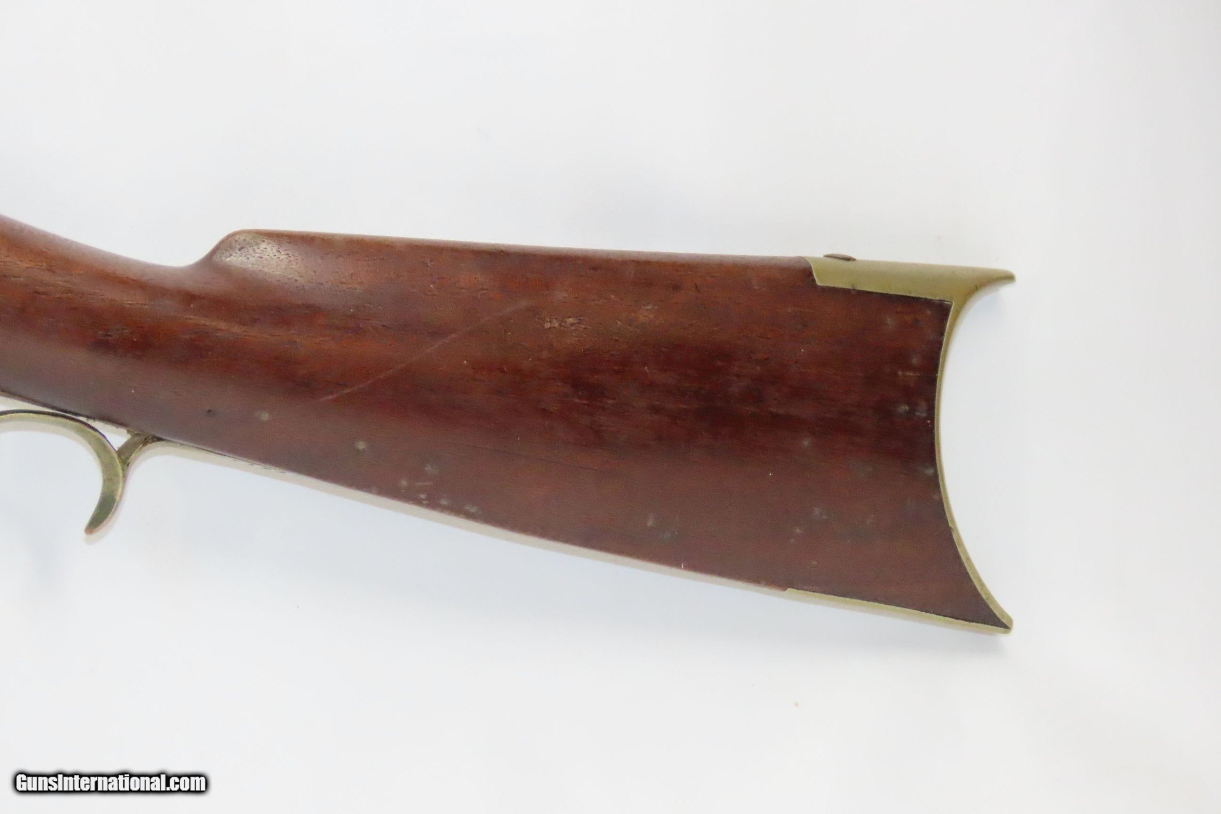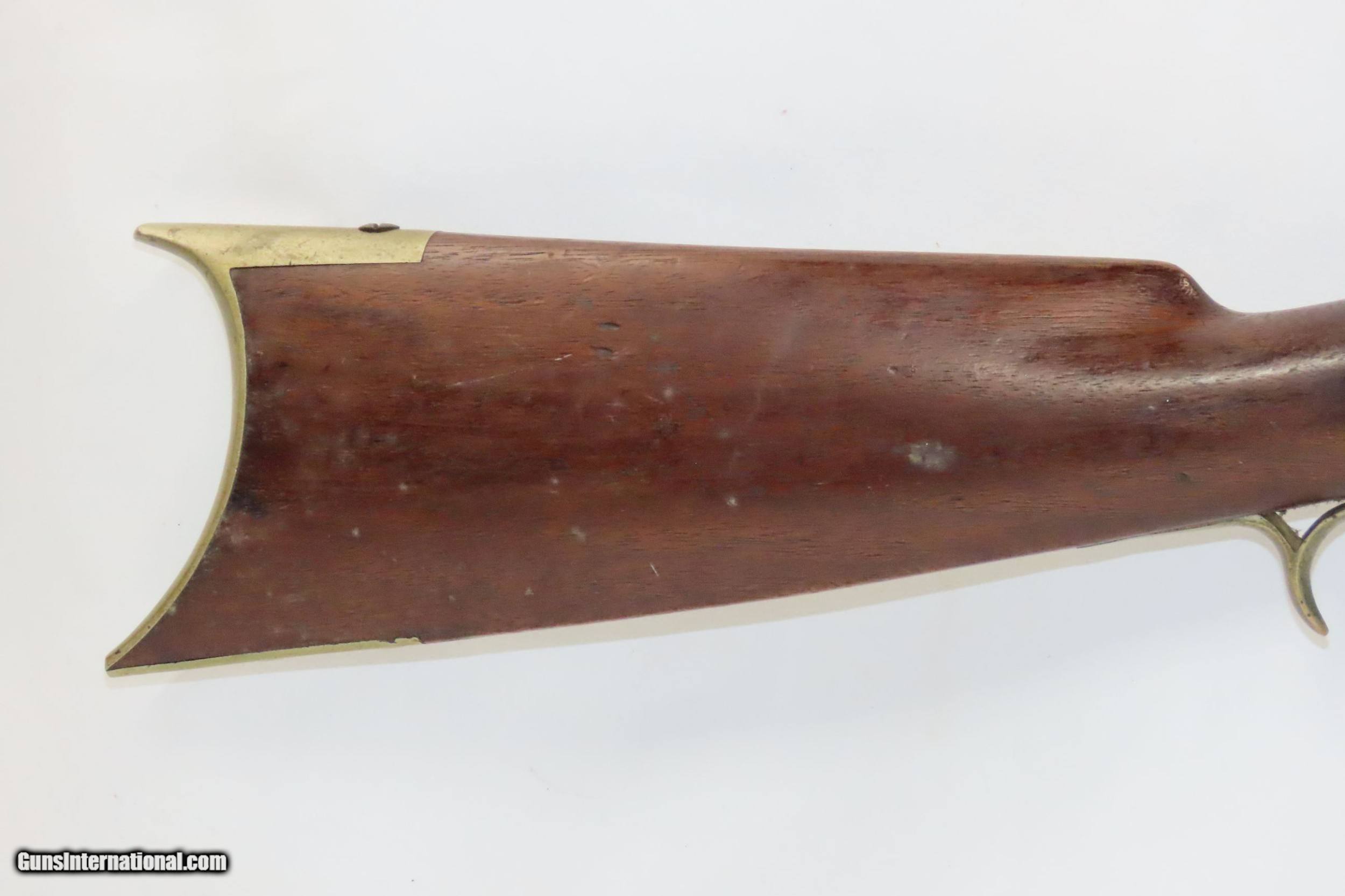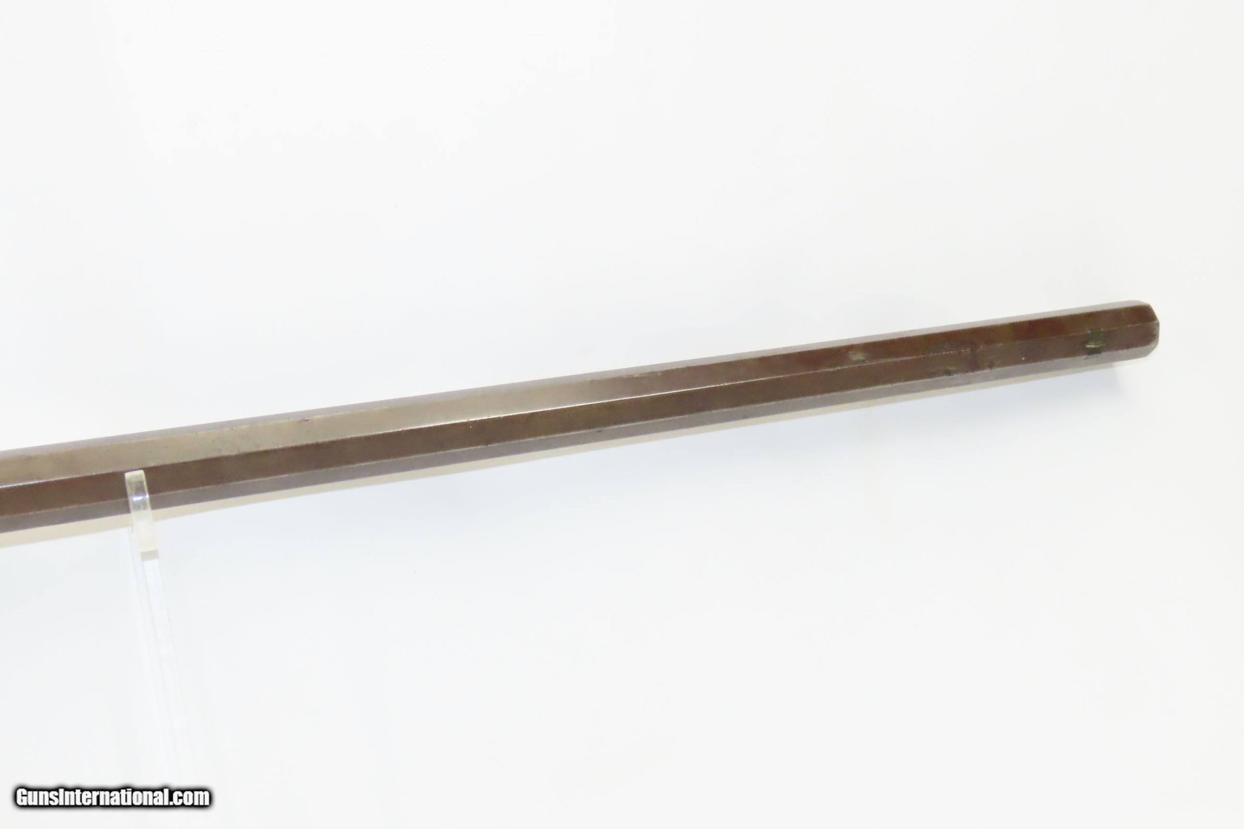 Description: Antique D.G. DEWITT Half Stock .40 Caliber American LONG RIFLE Madison, NY BACK ACTION Long Rifle w/ASHMORE LOCK Here we present an antique D.G. Dewitt Half Stock Percussion Long Rifle, made in the mid-19th Century in Madison, New York. Dewitt was a gunmaker known for these types of rifles working out of Elmira, New York. Madison is roughly 100 miles from Elmira, which leads me to believe it is possibly the same individual. Its stout octagonal barrel is in .40 caliber, large enough to take small to medium sized game or to defend the homestead against unwanted aggression. Rifle manufacture in the mid-to-late 19th Century was rapidly changing over from thousands of craftsmen all over the United States and on the Frontier making and selling their wares, to the large factories with standardized assembly lines and modern manufacturing techniques. Many makers’ names of the so-called Kentucky long rifles have been lost over time. The overall condition is good. The action is excellent. The bore is in good condition with strong rifling. The stock is smooth and solid. Own the original! This is a legitimate antique and not a reproduction. Barrel is 33-3/4 inches. Caliber: .40 Percussion Overall condition as seen in photos. Very Fast. Very Safe. FREE SHIPPING WORLDWIDE. Delivered directly to your door by express mail! Guaranteed AUTHENTIC & Includes CERTIFICATE OF AUTHENTICITY. ancestryguns $1500 #220090 SOLD Antique: Yes |