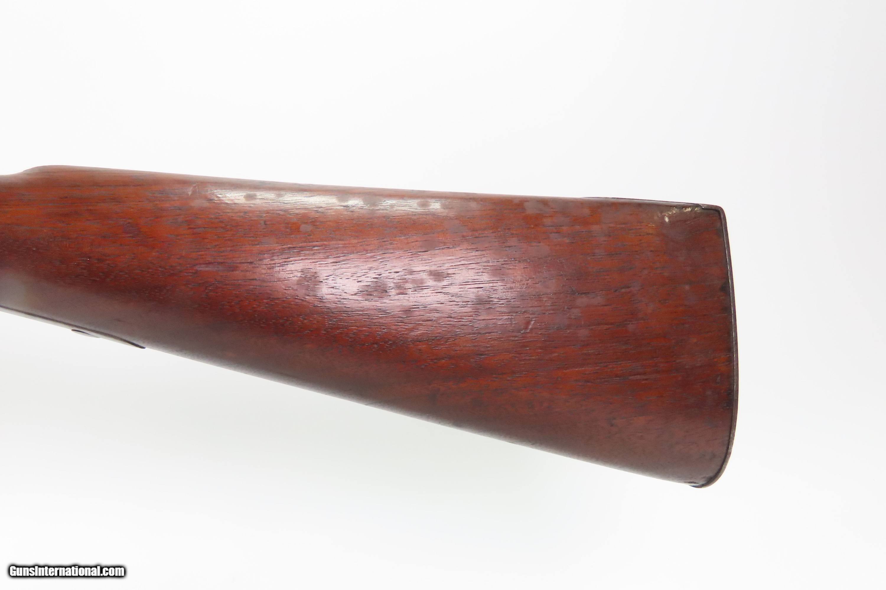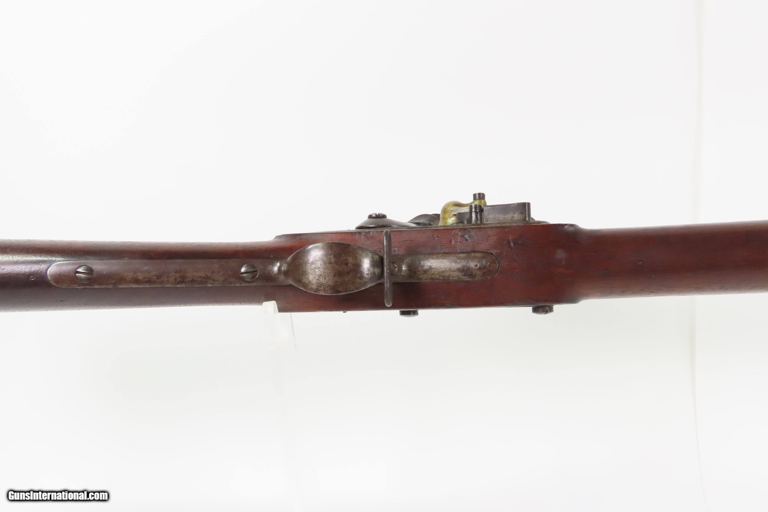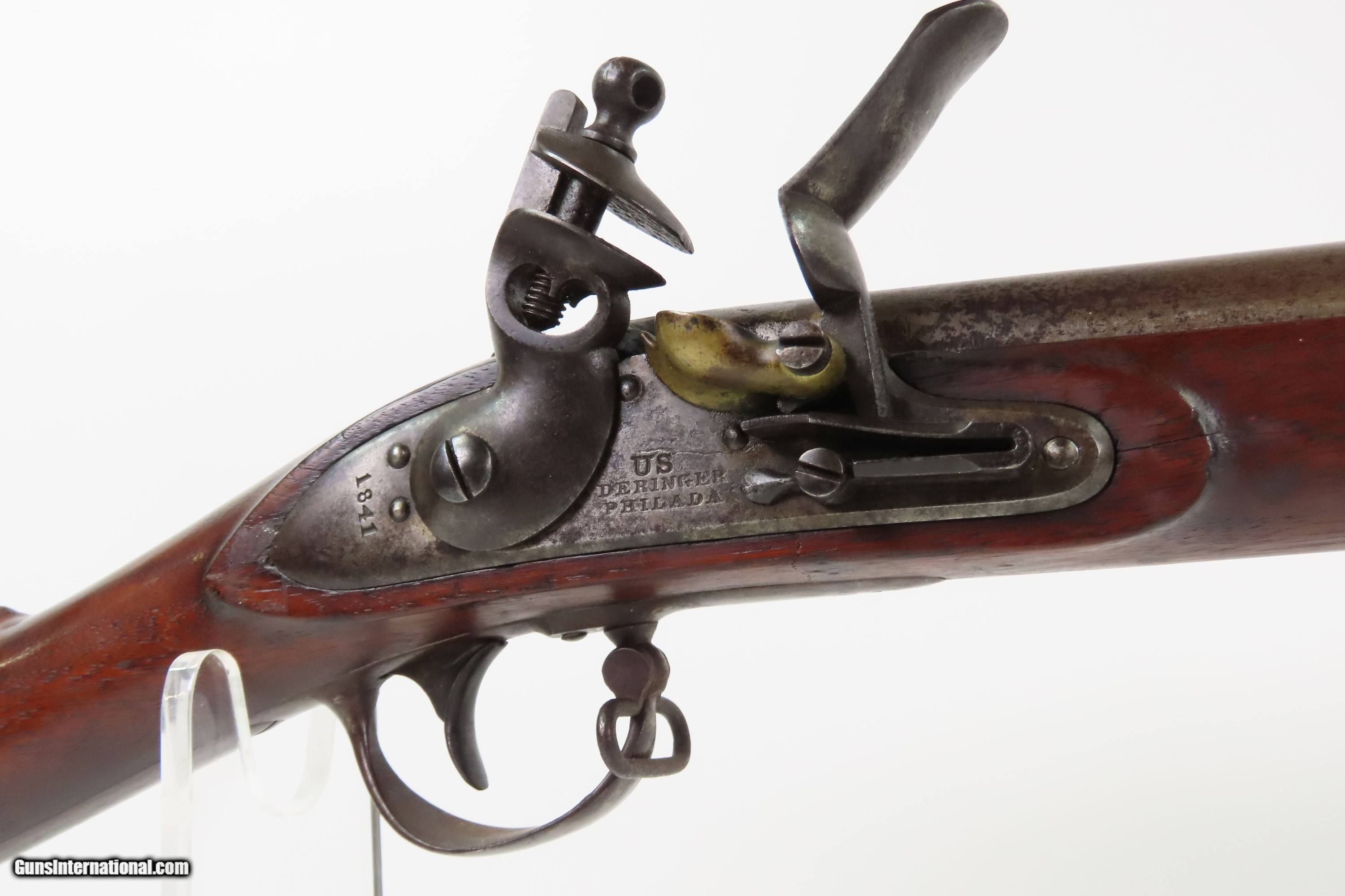 Description: Antique HENRY DERINGER U.S. Model 1817 Flintlock .54 Caliber “COMMON RIFLE” “US” Marked 1 of 13,000 Contracted by Henry Deringer Here Ancestry Guns presents an antique U.S. Model 1817 “Common Rifle” from the Henry Deringer Contract, made in 1841 in Philadelphia, Pennsylvania. Manufactured as part of the U.S. Government Contract, Henry Deringer, of his infamous pocket pistol fame, manufactured around 13,000 contract rifles in multiple variations between 1817 and the early 1840s. The Model 1817 common rifle (also known as the Deringer M1817 rifle) was issued due to the Dept. of Ordnance's order of 1814, produced and used from 1817 to the 1840s on the American frontier. Like the Model 1814, it had a large oval patchbox in the buttstock. Many of these were used during the American Civil War, especially in the early days of the conflict when military weapons were hard to come by. Over time, these flintlock rifles became obsolete, but they still saw service during the Civil War. While all were originally flintlocks, many were converted to percussion cap for their firing mechanism. The overall condition is nearing fine. A mixed gray and brown patina is present throughout. The bore has a fairly consistent shine, dimming at the muzzle with serviceable rifling. Two cartouches are present on the left wrist. A “US/JH” and “P” is on top of the breech. Strong action. This example has been reconverted to flintlock. Very good and solid stock with average handling wear. Own the original! This is a legitimate antique and not a reproduction. Barrel is 36 inches. Caliber: .54 Flintlock Overall condition as seen in photos. Very Fast. Very Safe. FREE SHIPPING WORLDWIDE. Delivered directly to your door by express mail! Guaranteed AUTHENTIC & Includes CERTIFICATE OF AUTHENTICITY. $4300 #259658 Antique: Yes Price: $4,300.00 Buy Now Pay with