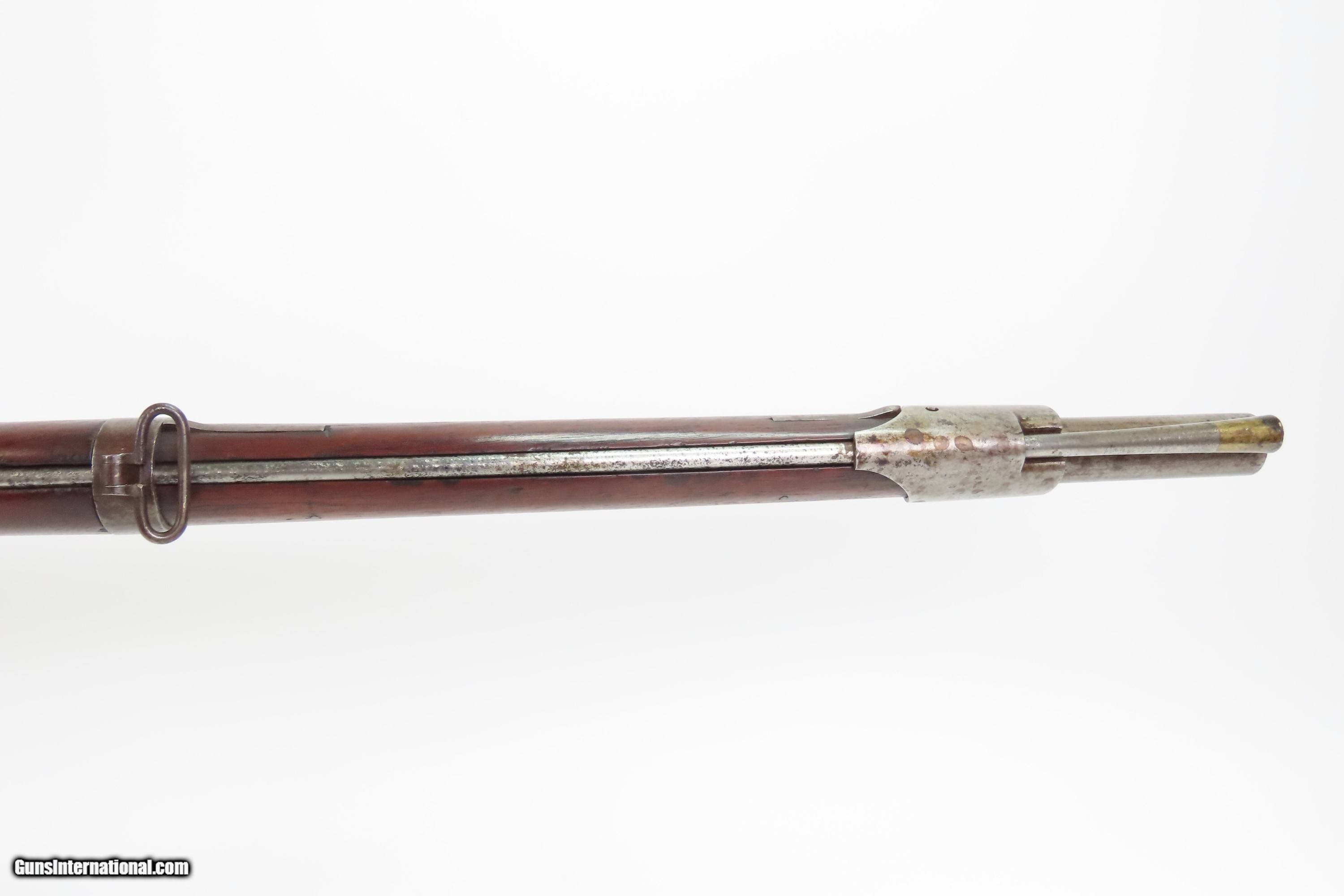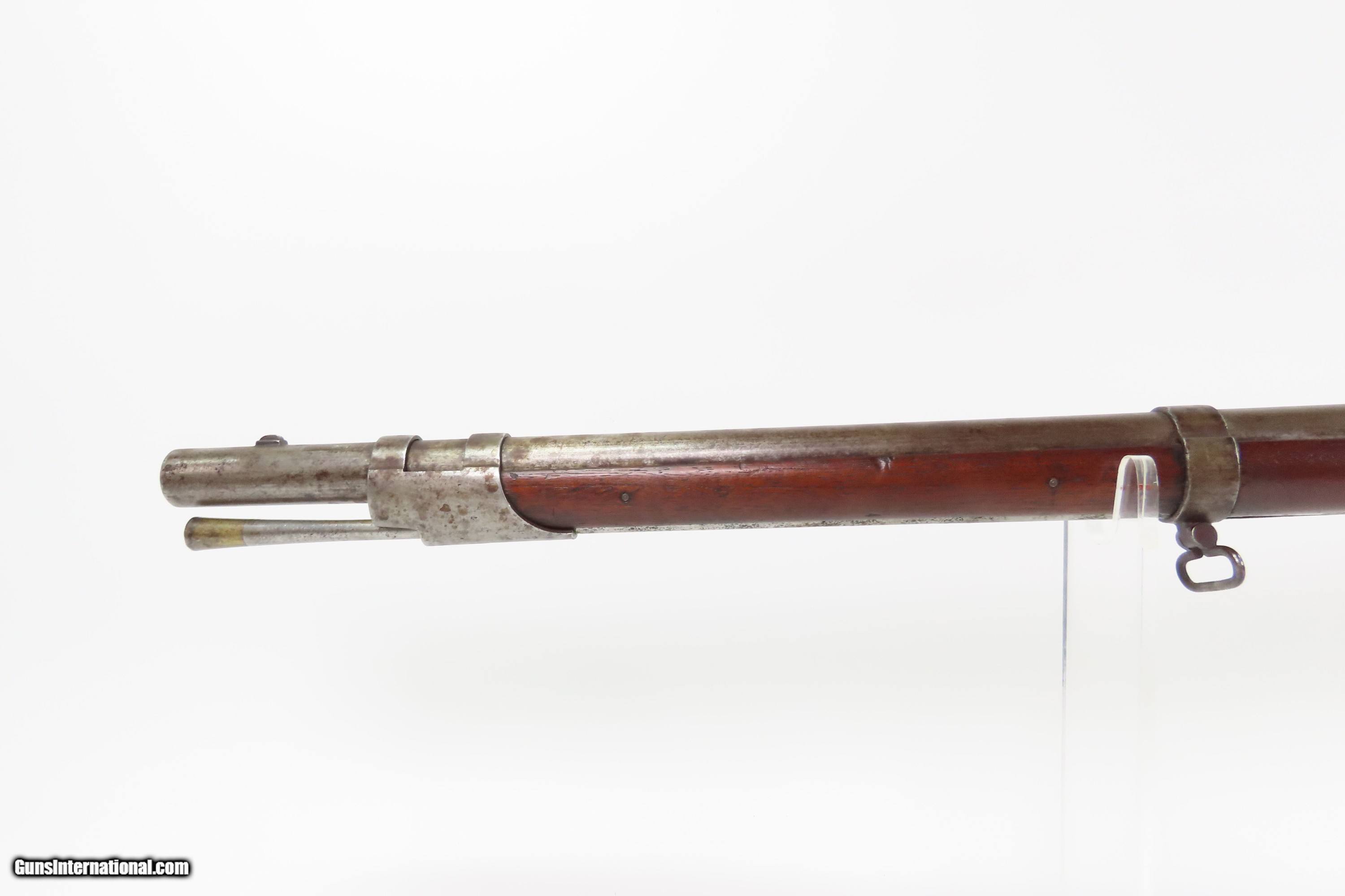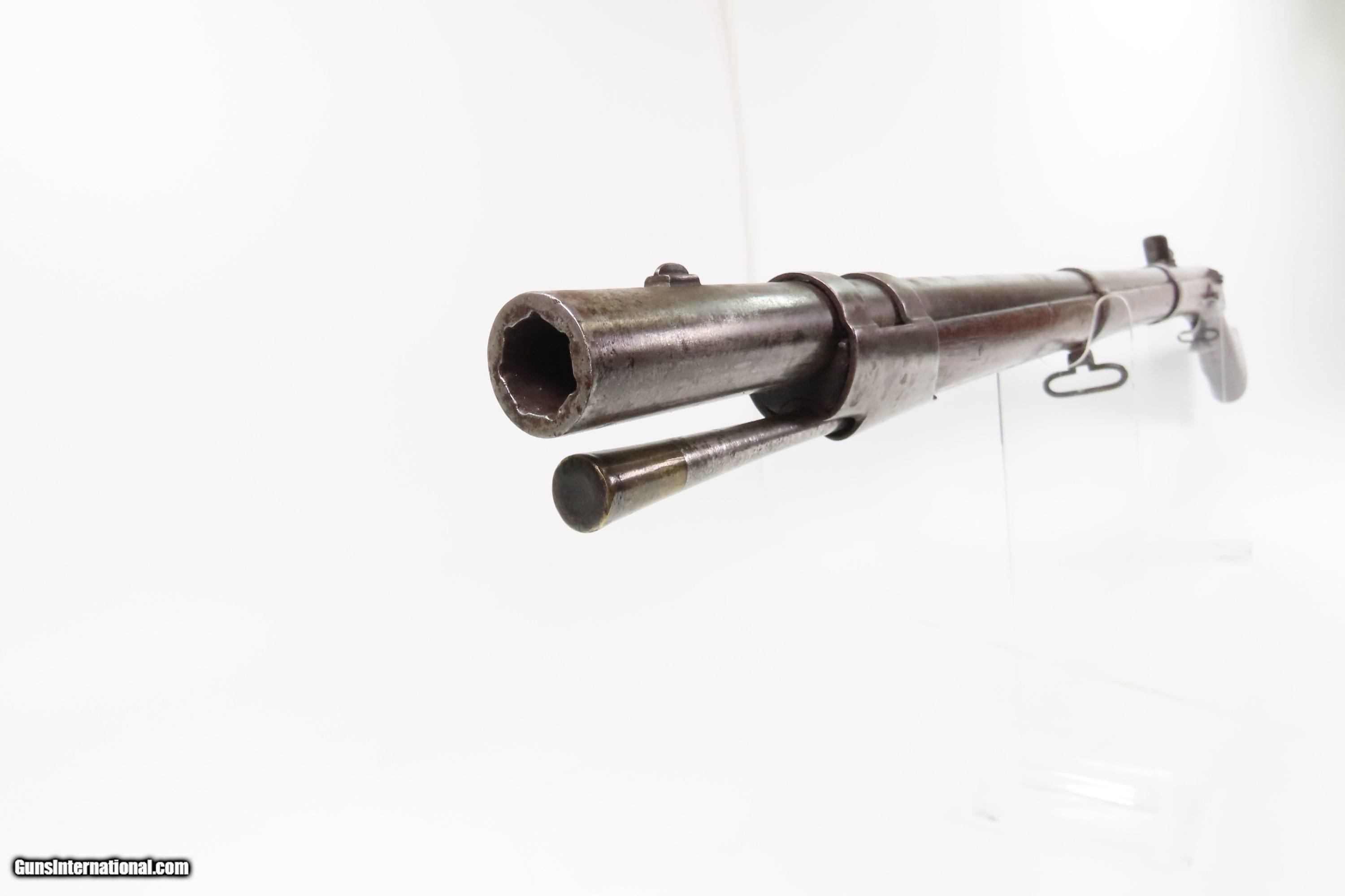 Description: Antique HENRY DERINGER U.S. Model 1817 Flintlock .54 Caliber “COMMON RIFLE” “US” Marked 1 of 13,000 Contracted by Henry Deringer Here Ancestry Guns presents an antique U.S. Model 1817 “Common Rifle” from the Henry Deringer Contract, made in 1841 in Philadelphia, Pennsylvania. Manufactured as part of the U.S. Government Contract, Henry Deringer, of his infamous pocket pistol fame, manufactured around 13,000 contract rifles in multiple variations between 1817 and the early 1840s. The Model 1817 common rifle (also known as the Deringer M1817 rifle) was issued due to the Dept. of Ordnance's order of 1814, produced and used from 1817 to the 1840s on the American frontier. Like the Model 1814, it had a large oval patchbox in the buttstock. Many of these were used during the American Civil War, especially in the early days of the conflict when military weapons were hard to come by. Over time, these flintlock rifles became obsolete, but they still saw service during the Civil War. While all were originally flintlocks, many were converted to percussion cap for their firing mechanism. The overall condition is nearing fine. A mixed gray and brown patina is present throughout. The bore has a fairly consistent shine, dimming at the muzzle with serviceable rifling. Two cartouches are present on the left wrist. A “US/JH” and “P” is on top of the breech. Strong action. This example has been reconverted to flintlock. Very good and solid stock with average handling wear. Own the original! This is a legitimate antique and not a reproduction. Barrel is 36 inches. Caliber: .54 Flintlock Overall condition as seen in photos. Very Fast. Very Safe. FREE SHIPPING WORLDWIDE. Delivered directly to your door by express mail! Guaranteed AUTHENTIC & Includes CERTIFICATE OF AUTHENTICITY. $4300 #259658 Antique: Yes Price: $4,300.00 Buy Now Pay with