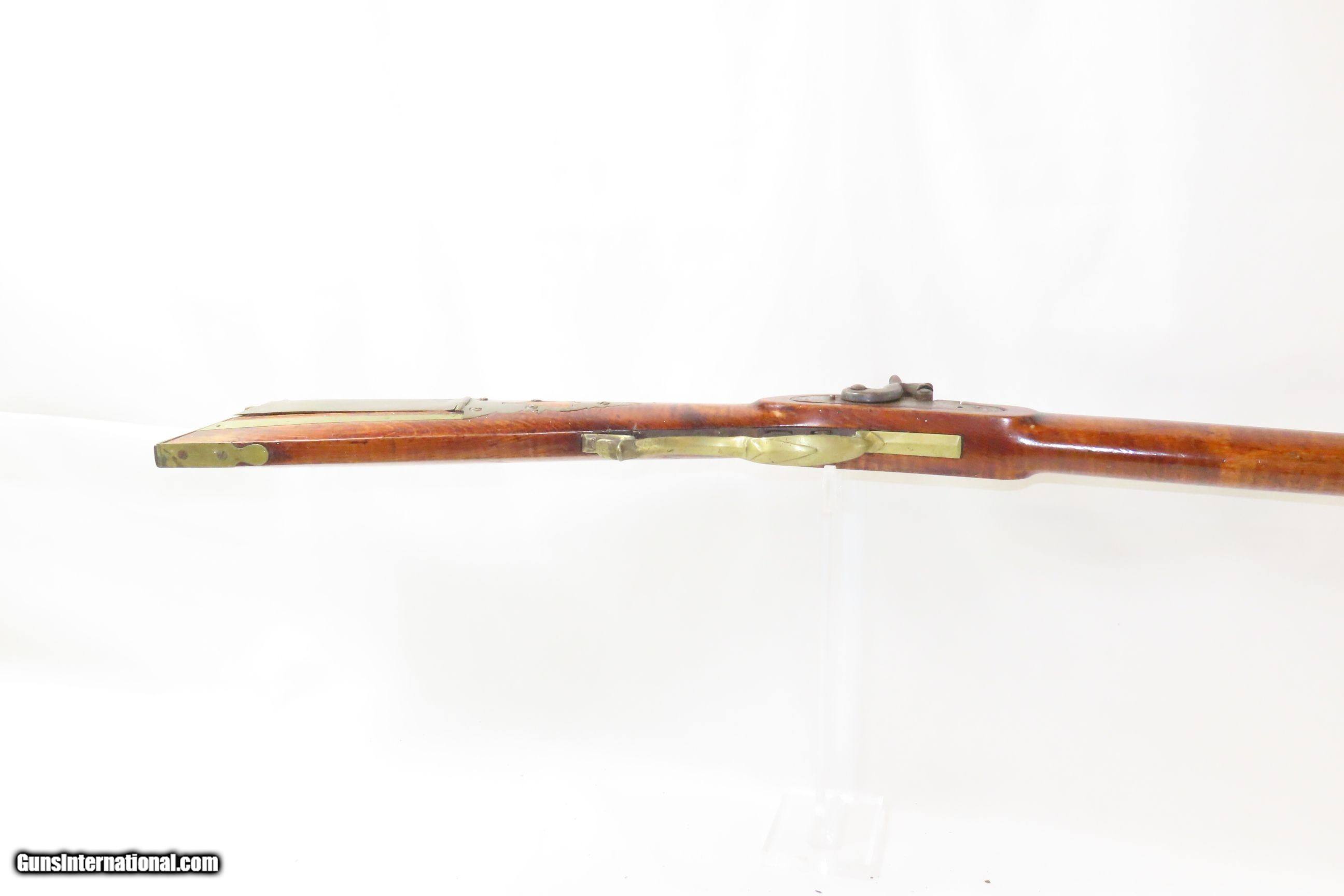 Description: Antique JOSEPH GOLCHER Marked Half-Stock .40 Caliber Percussion LONG RIFLE Kentucky Style HUNTING/HOMESTEAD Long Rifle Here we present an antique Joseph Golcher Marked Half Stock Percussion American Long Rifle, made circa the mid-19th Century. Joseph Golcher was a known gunmaker and lock maker, so it isn’t for sure if he made the rifle, or just manufactured the lock. Though, it is likely the latter. Its stout octagonal barrel is in .40 caliber, large enough to take small to medium sized game or to defend the homestead against unwanted aggression. Rifle manufacture in the mid-to-late 19th Century was rapidly changing over from thousands of craftsmen all over the United States and on the Frontier making and selling their wares, to the large factories with standardized assembly lines and modern manufacturing techniques. Many makers’ names of the so-called Kentucky long rifles have been lost over time. This rifle is one such example. The American Long Rifle, more commonly, but less correctly, known as the ‘Kentucky rifle’, was described by Captain John G. W. Dillin in the dedication to his seminal 1924 book, The Kentucky Rifle: “From a flat bar of soft iron, hand forged into a gun barrel; laboriously bored and rifled with crude tools; fitted with a stock hewn from a maple tree in the neighboring forest; and supplied with a lock hammered to shape on the anvil; an unknown smith, in a shop long since silent, fashioned a rifle which changed the whole course of world history; made possible the settlement of a continent; and ultimately freed our country of foreign domination. Light in weight; graceful in line; economical in consumption of powder and lead; fatally precise; distinctly American; it sprang into immediate popularity; and for a hundred years was a model often slightly varied but never radically changed.” The overall condition is good. Strong action. The bore is in good shape for its age and has nice deep grooves. Solid stock with less than average wear. Legible markings. The patchbox release is quite sensitive and opens easily. Own the original! This is a legitimate antique and not a reproduction. Barrel is 37 inches. Caliber: .40 Percussion Overall condition as seen in photos. Very Fast. Very Safe. FREE SHIPPING WORLDWIDE. Delivered directly to your door by express mail! Guaranteed AUTHENTIC & Includes CERTIFICATE OF AUTHENTICITY. ancestryguns $1800 #227795 SOLD Antique: Yes |
