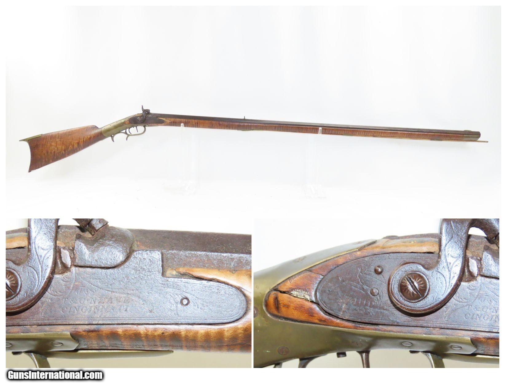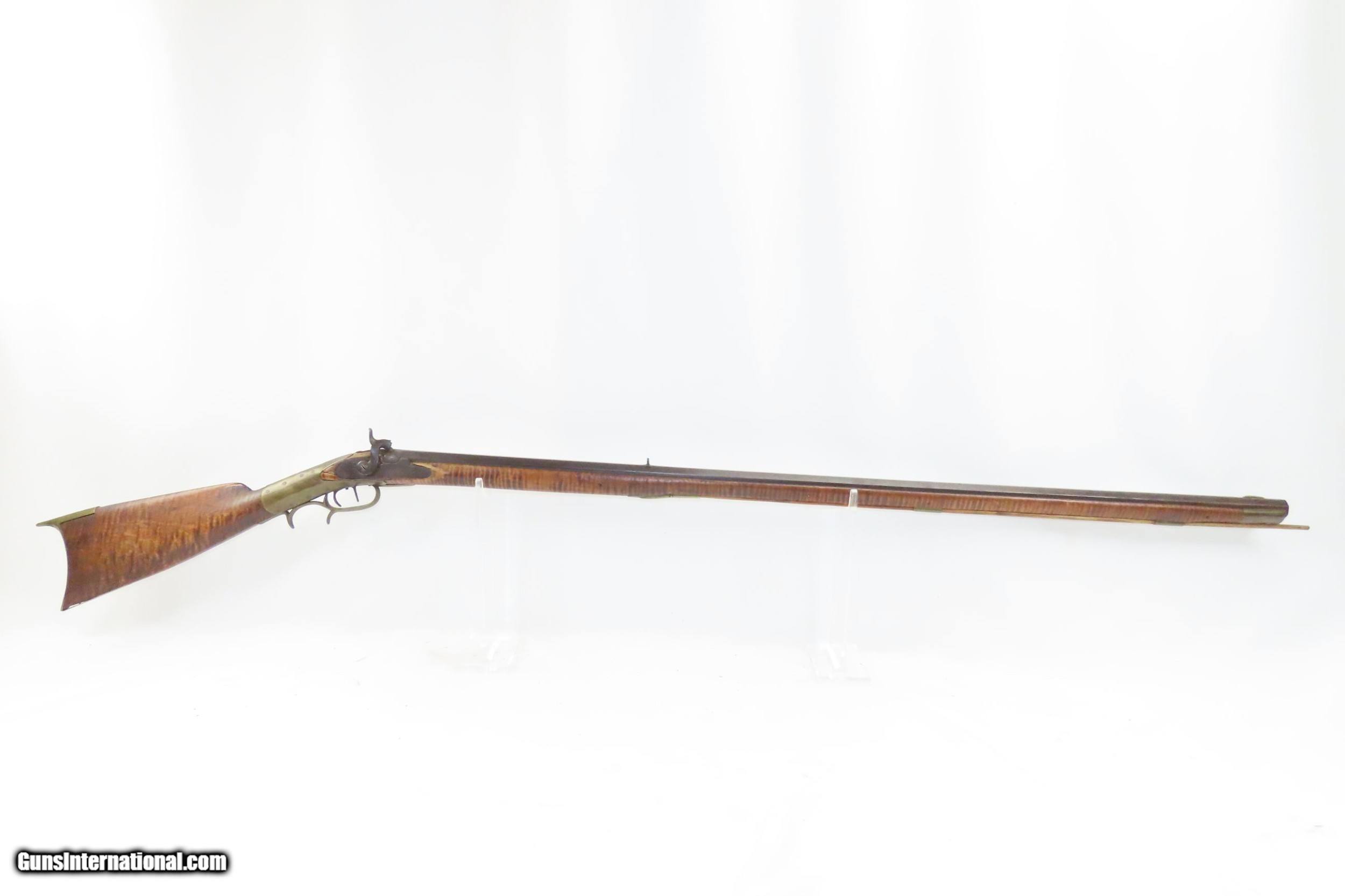 Antique “M.B.” SIGNED Full-Stock .36 Caliber Percussion AMERICAN LONG RIFLE Kentucky Style Long Rifle with T. & C. NEAVE LOCK!