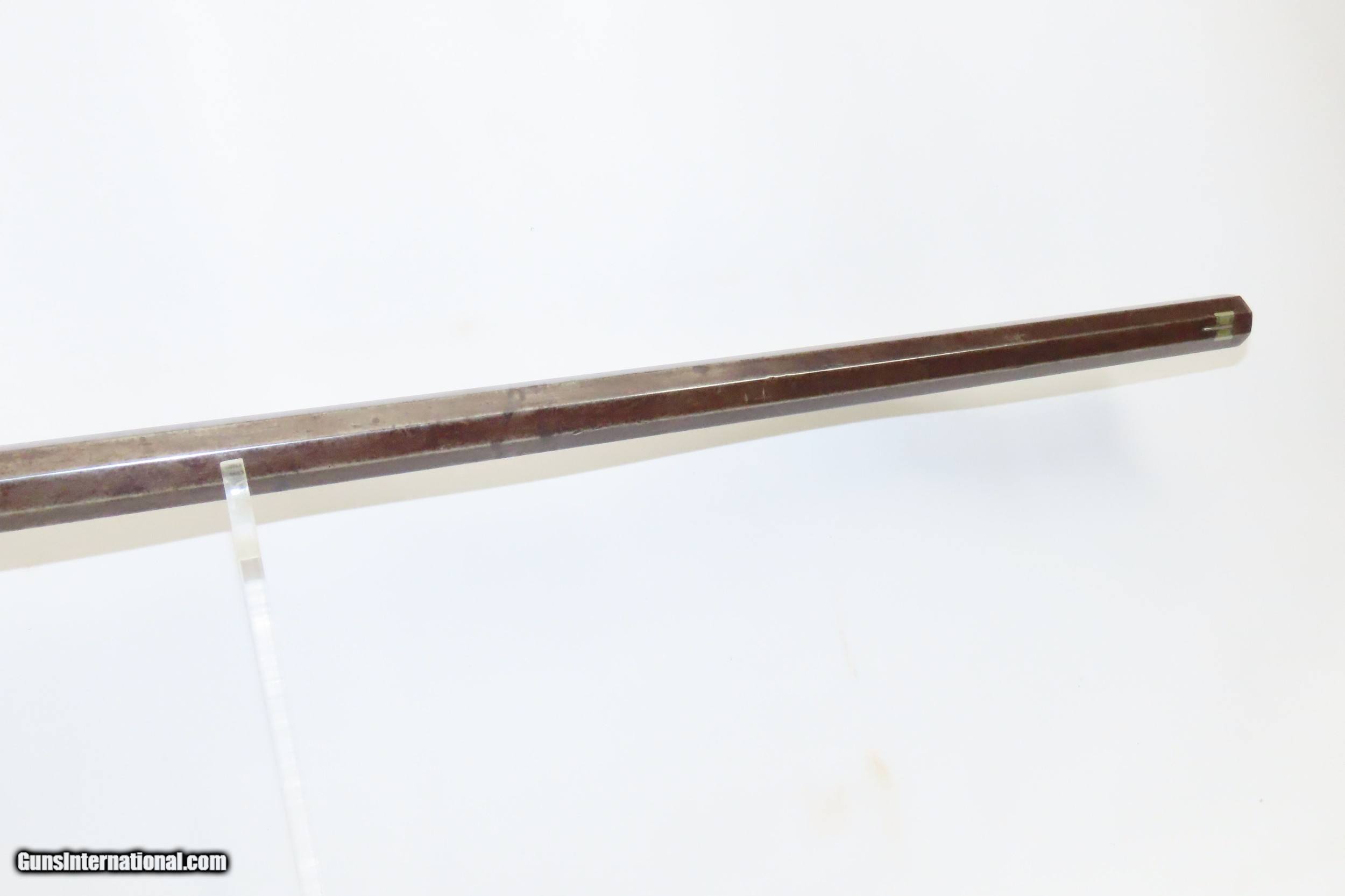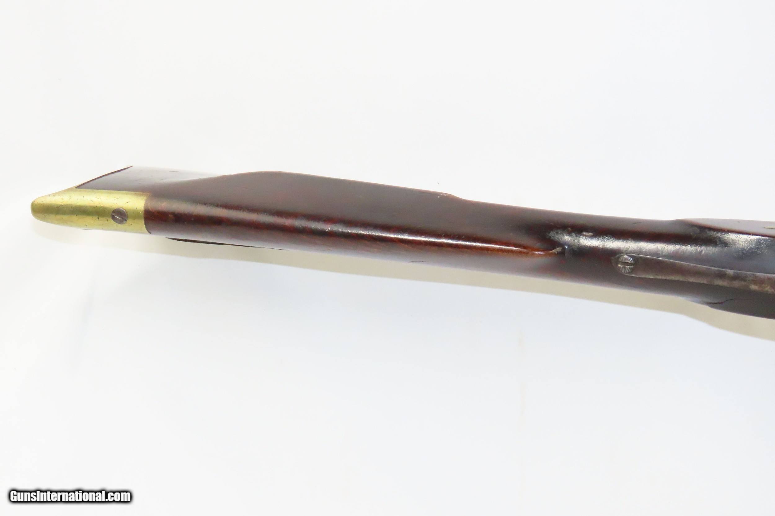 Description: Antique MID-19th CENTURY Half-Stock .34 Cal. Percussion American LONG RIFLE Kentucky Style Long Rifle w/ R. ASHMORE & SON Lock Here we present an antique Half Stock Percussion Long Rifle, made circa the mid-19th Century with an R. Ashmore & Son lock. Richard Ashmore made and sold flint and percussion locks to gunsmiths throughout the country. The buyers of his locks used them to produce various Kentucky and plains rifles. Ashmore made locks out of his home in Kentucky from somewhere around 1835 to the mid-1850s. This gun’s stout octagonal barrel is in .34 caliber, large enough to take small to medium sized game or to defend the homestead against unwanted aggression. Rifle manufacture in the mid-to-late 19th Century was rapidly changing over from thousands of craftsmen all over the United States and on the Frontier making and selling their wares, to the large factories with standardized assembly lines and modern manufacturing techniques. Many makers’ names of the so-called Kentucky long rifles have been lost over time. This rifle is one such example. The overall condition is good. Strong action. The bore is in good shape for its age. Solid stock, contains a stable crack to the rear of the lock. Markings on the lock are partially obfuscated. The ramrod is a replacement. Own the original! This is a legitimate antique and not a reproduction. Barrel is 32-3/8 inches. Caliber: .34 Percussion Overall condition as seen in photos. Very Fast. Very Safe. FREE SHIPPING WORLDWIDE. Delivered directly to your door by express mail! Guaranteed AUTHENTIC & Includes CERTIFICATE OF AUTHENTICITY. ancestryguns $1500 #226477 SOLD Antique: Yes |