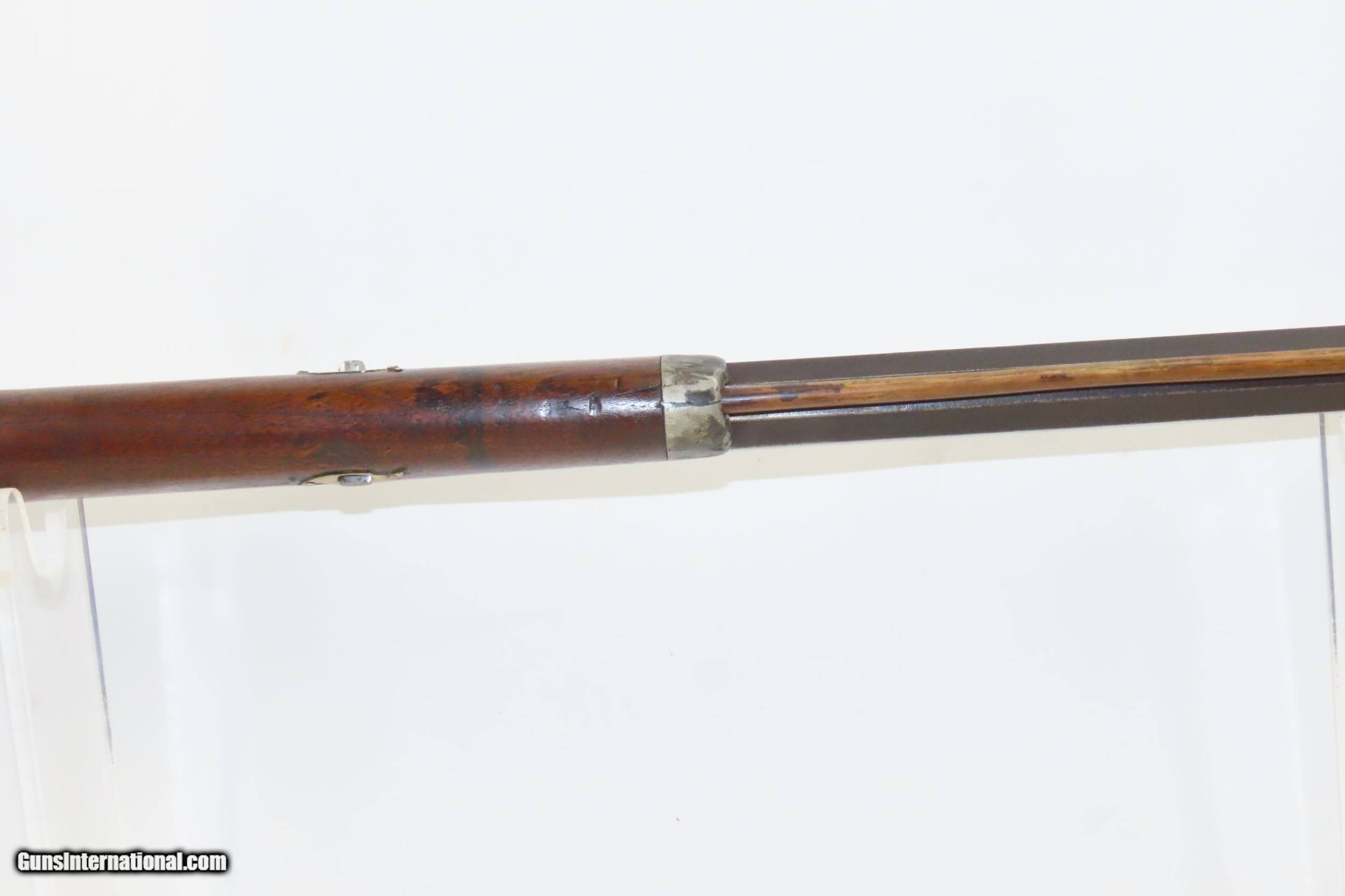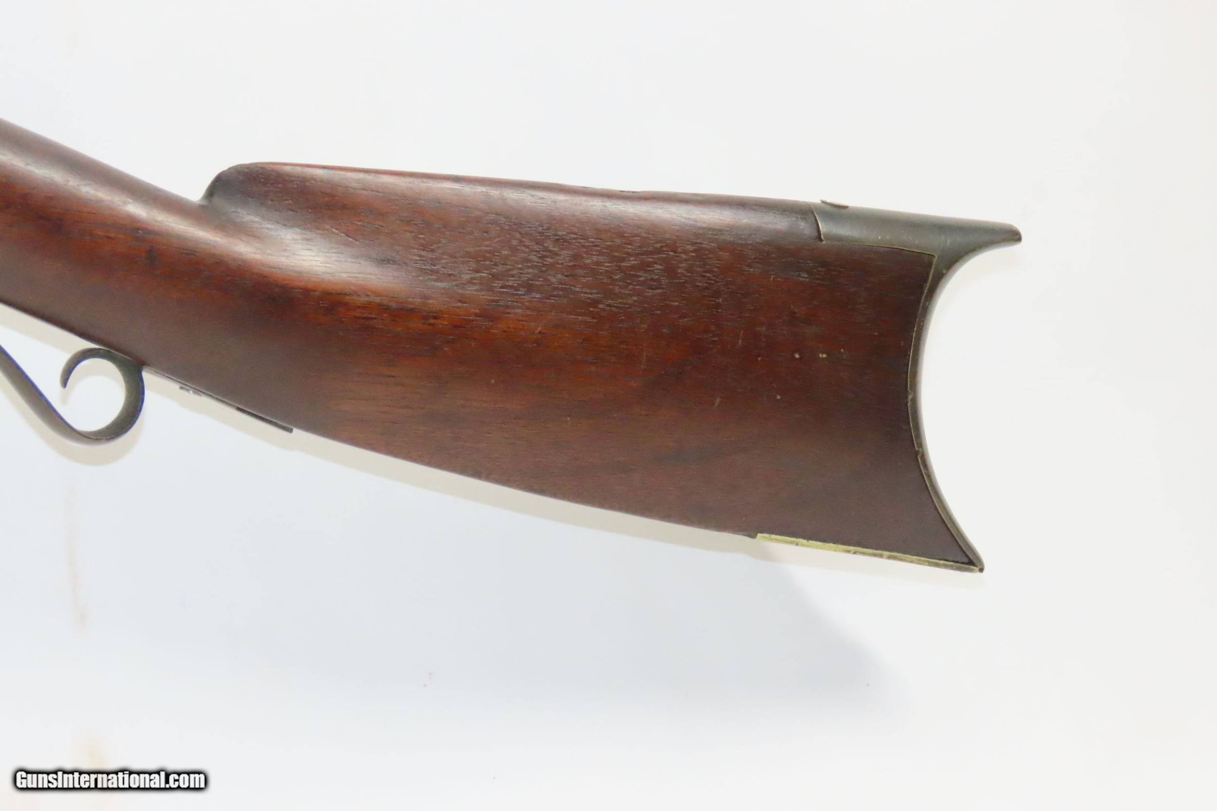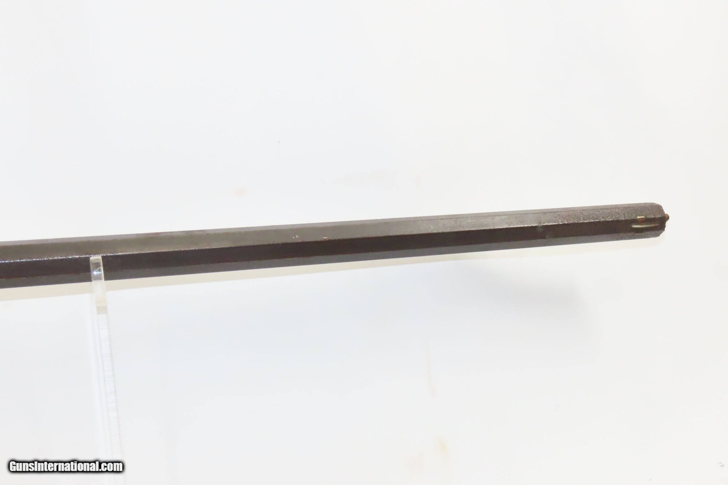 Description: Antique MID-19th CENTURY Half-Stock .40 Cal. Percussion American LONG RIFLE Kentucky Style HUNTING/HOMESTEAD Long Rifle Here we present an antique Half Stock Percussion Long Rifle, made circa the mid-19th Century. Its stout octagonal barrel is in .40 caliber, large enough to take small to medium sized game or to defend the homestead against unwanted aggression. Rifle manufacture in the mid-to-late 19th Century was rapidly changing over from thousands of craftsmen all over the United States and on the Frontier making and selling their wares, to the large factories with standardized assembly lines and modern manufacturing techniques. Many makers’ names of the so-called Kentucky long rifles have been lost over time. This rifle is one such example. The American Long Rifle, more commonly, but less correctly, known as the ‘Kentucky rifle’, was described by Captain John G. W. Dillin in the dedication to his seminal 1924 book, The Kentucky Rifle: “From a flat bar of soft iron, hand forged into a gun barrel; laboriously bored and rifled with crude tools; fitted with a stock hewn from a maple tree in the neighboring forest; and supplied with a lock hammered to shape on the anvil; an unknown smith, in a shop long since silent, fashioned a rifle which changed the whole course of world history; made possible the settlement of a continent; and ultimately freed our country of foreign domination. Light in weight; graceful in line; economical in consumption of powder and lead; fatally precise; distinctly American; it sprang into immediate popularity; and for a hundred years was a model often slightly varied but never radically changed.” The overall condition is good. Original weathered patina. The lock has been replaced with a more modern piece. The action is excellent. The bore is dim with thin, worn rifling. The stock is solid. Own the original! This is a legitimate antique and not a reproduction. Barrel is 34 inches. Caliber: .40 Percussion Overall condition as seen in photos. Very Fast. Very Safe. FREE SHIPPING WORLDWIDE. Delivered directly to your door by express mail! Guaranteed AUTHENTIC & Includes CERTIFICATE OF AUTHENTICITY. ancestryguns $1200 #226476 SOLD Antique: Yes |