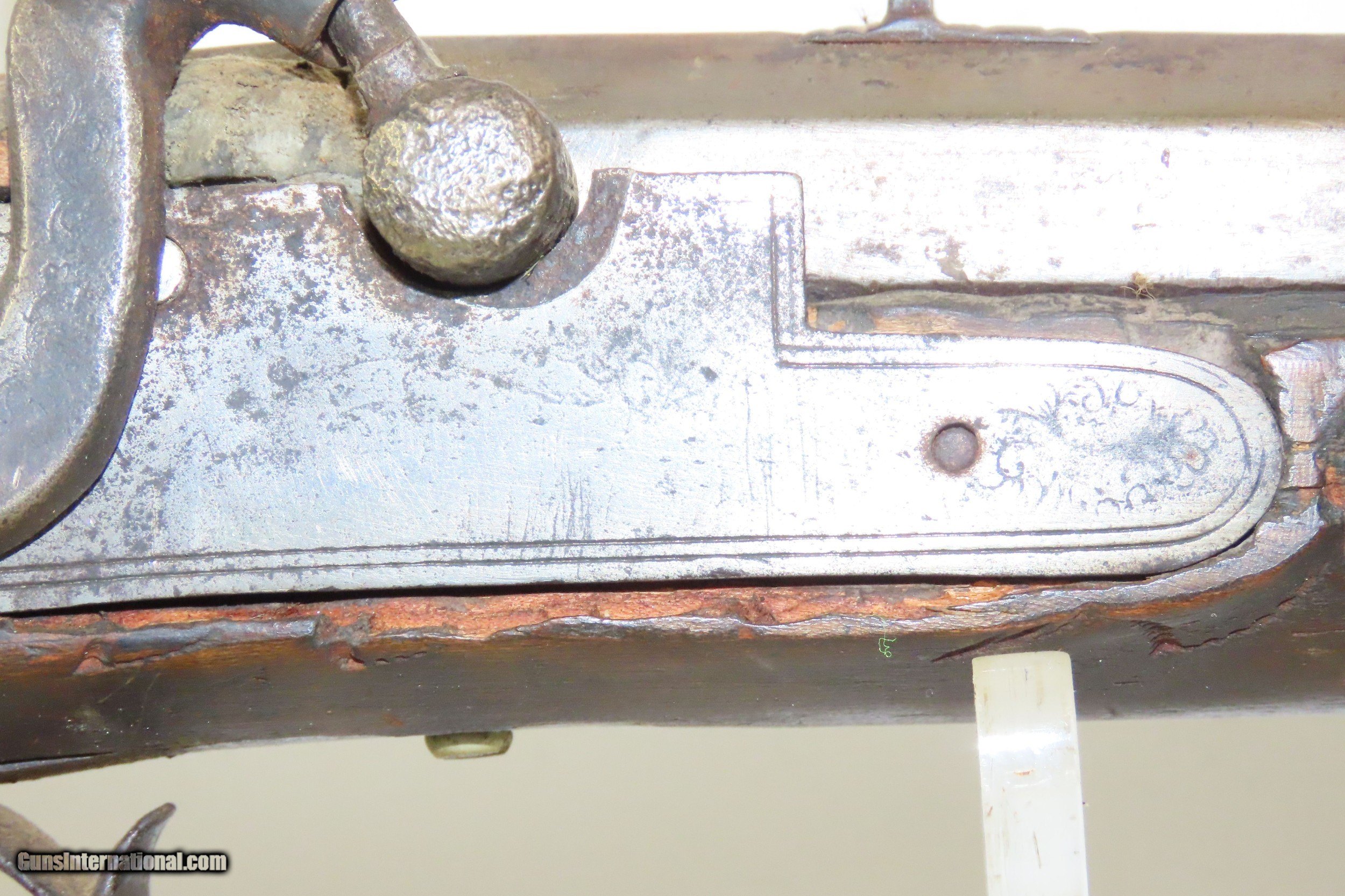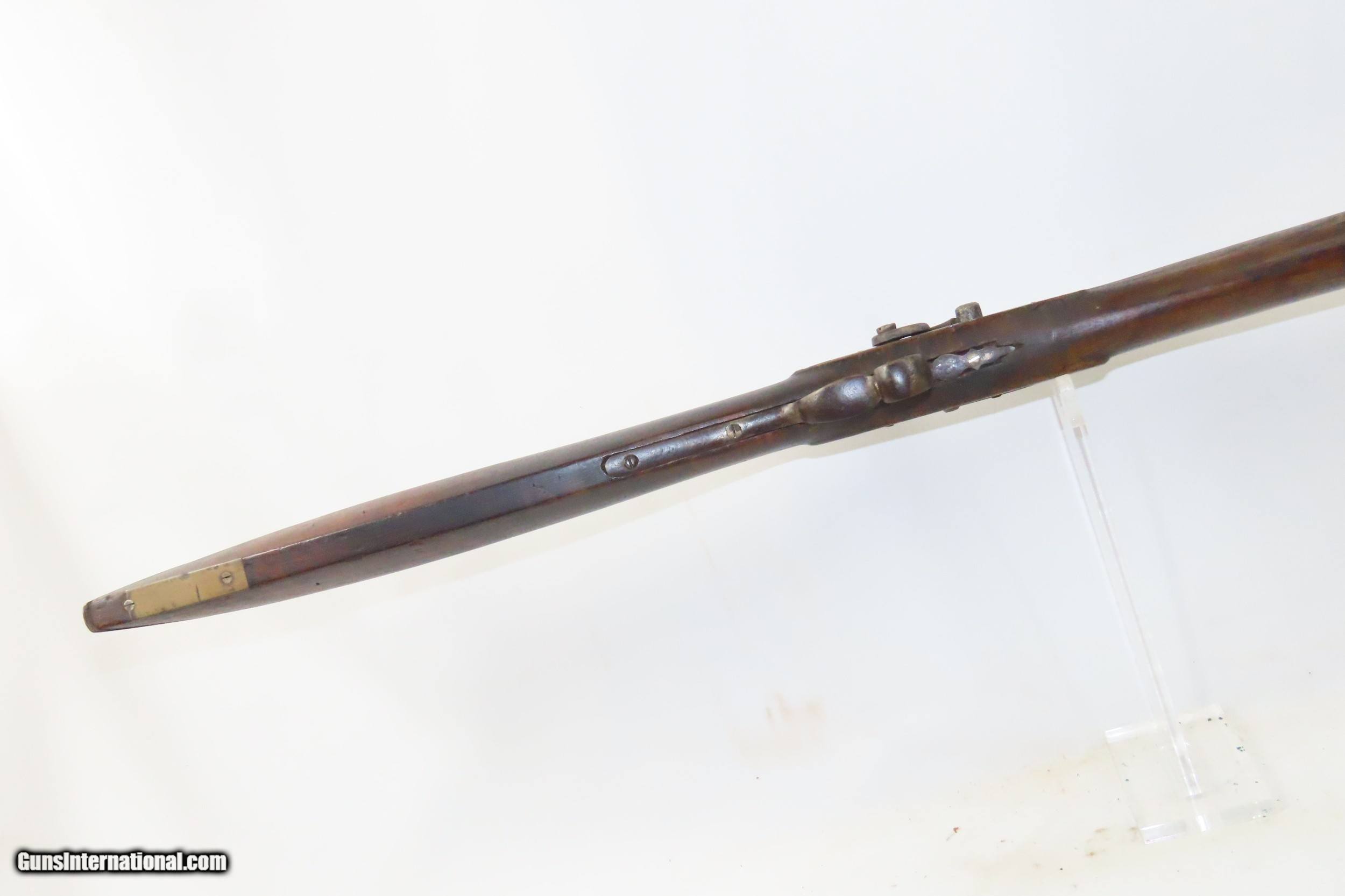 Description: Antique MID-19th CENTURY Half-Stock .41 Cal. Percussion American LONG RIFLE Kentucky Style HUNTING/HOMESTEAD Long Rifle Here we present an antique Half Stock Percussion Long Rifle, made circa the mid-19th Century. Its octagonal barrel is in .41 caliber, large enough to take small to medium sized game or to defend the homestead against unwanted aggression. Rifle manufacture in the mid-to-late 19th Century was rapidly changing over from thousands of craftsmen all over the United States and on the Frontier making and selling their wares, to the large factories with standardized assembly lines and modern manufacturing techniques. Many makers’ names of the so-called Kentucky long rifles have been lost over time. This rifle is one such example. The American Long Rifle, more commonly, but less correctly, known as the ‘Kentucky rifle’, was described by Captain John G. W. Dillin in the dedication to his seminal 1924 book, The Kentucky Rifle: “From a flat bar of soft iron, hand forged into a gun barrel; laboriously bored and rifled with crude tools; fitted with a stock hewn from a maple tree in the neighboring forest; and supplied with a lock hammered to shape on the anvil; an unknown smith, in a shop long since silent, fashioned a rifle which changed the whole course of world history; made possible the settlement of a continent; and ultimately freed our country of foreign domination. Light in weight; graceful in line; economical in consumption of powder and lead; fatally precise; distinctly American; it sprang into immediate popularity; and for a hundred years was a model often slightly varied but never radically changed.” The overall condition is fair. Patinated throughout. The action is functional. The bore is dim with worn rifling. The stock has been repaired around the wrist and forearm. The ramrod tubes are replacements and the rib underneath has been resoldered. Own the original! This is a legitimate antique and not a reproduction. Barrel is 32 inches. Caliber: .41 Percussion Overall condition as seen in photos. Very Fast. Very Safe. FREE SHIPPING WORLDWIDE. Delivered directly to your door by express mail! Guaranteed AUTHENTIC & Includes CERTIFICATE OF AUTHENTICITY. ancestryguns $1000 #226481 SOLD Antique: Yes |