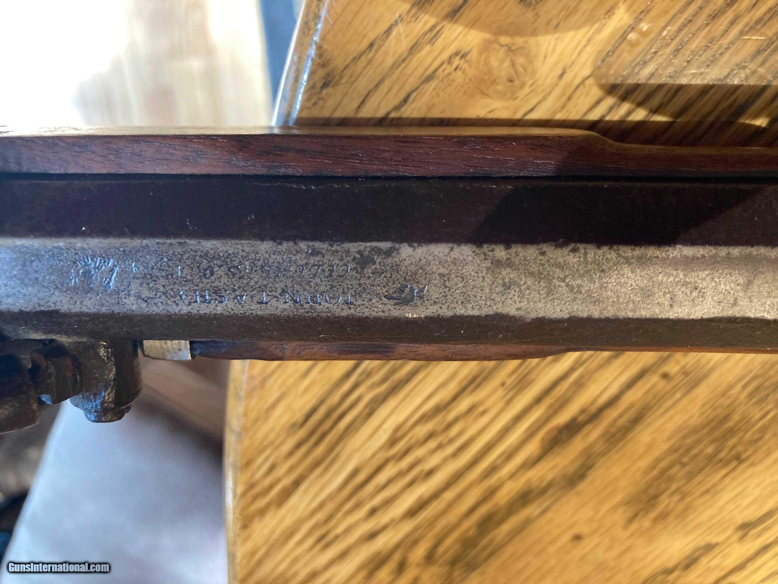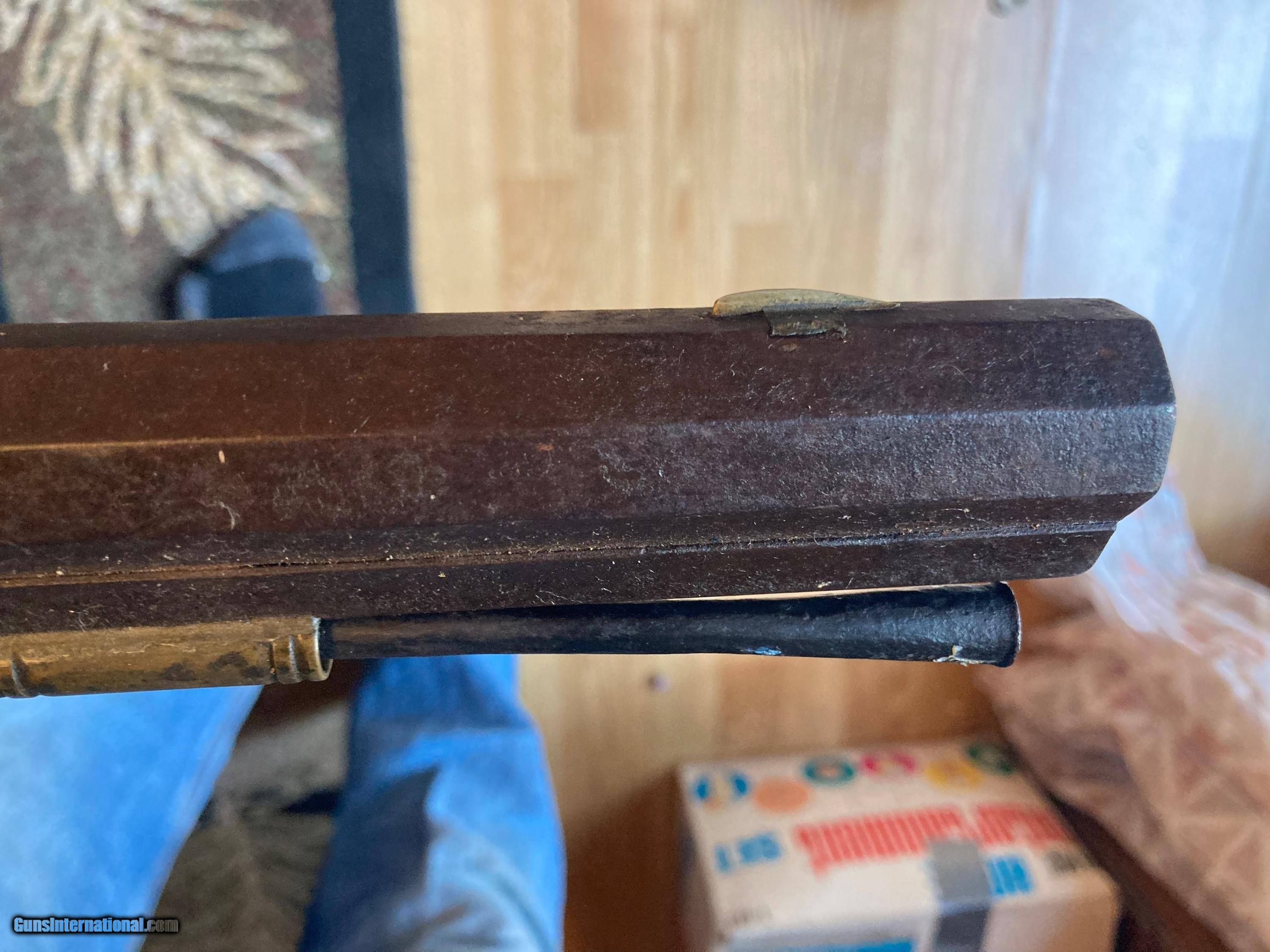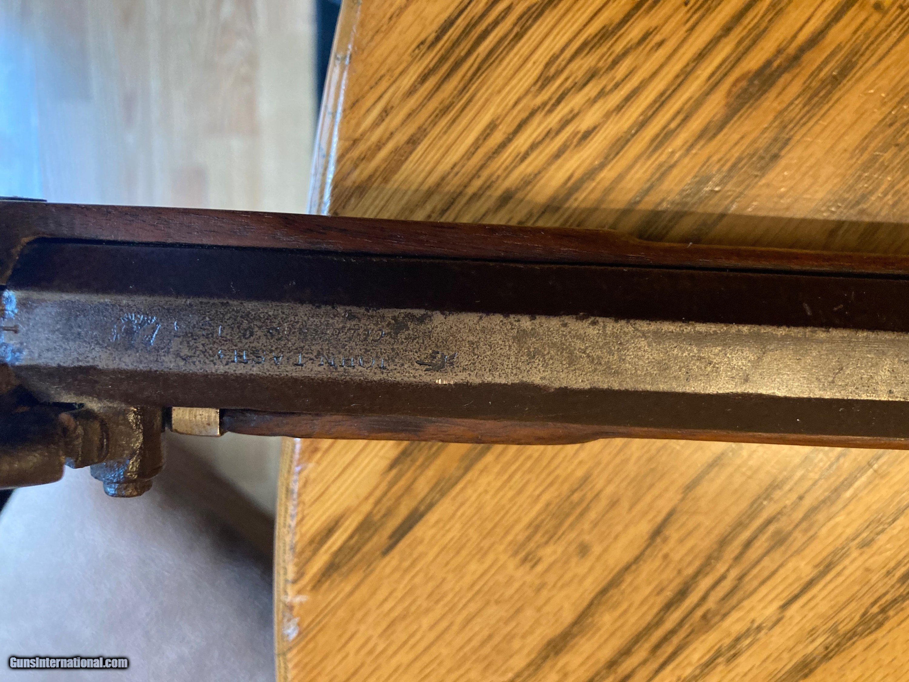 Description: On Hold Sale Pending. Antique Kentucky or Pennsylvania rifle wall hanger approximately 36 caliber Circa 1850. The 37.5 inch rifled barrel is stamped John Lash, and faint Columbus Ohio 1849. There is also a faint American eagle stamped, I've read the eagle stamp may relate to treaty guns. J. Lash is listed in Early American gun maker data base. The lock has no markings and is missing all internal parts so it's a Wall hanger. Both front and rear sights are present. The wood stock is in very good condition. The trigger guard, but plate and ramrod holder are brass. There is a German silver nose cap and ramrod present. Please feel free to contact me with any questions. Shipping will be actuall cost by insured usps priority mail with tracking. On Hold Sale Pending SOLD Curio/Relic: Yes Antique: Yes |