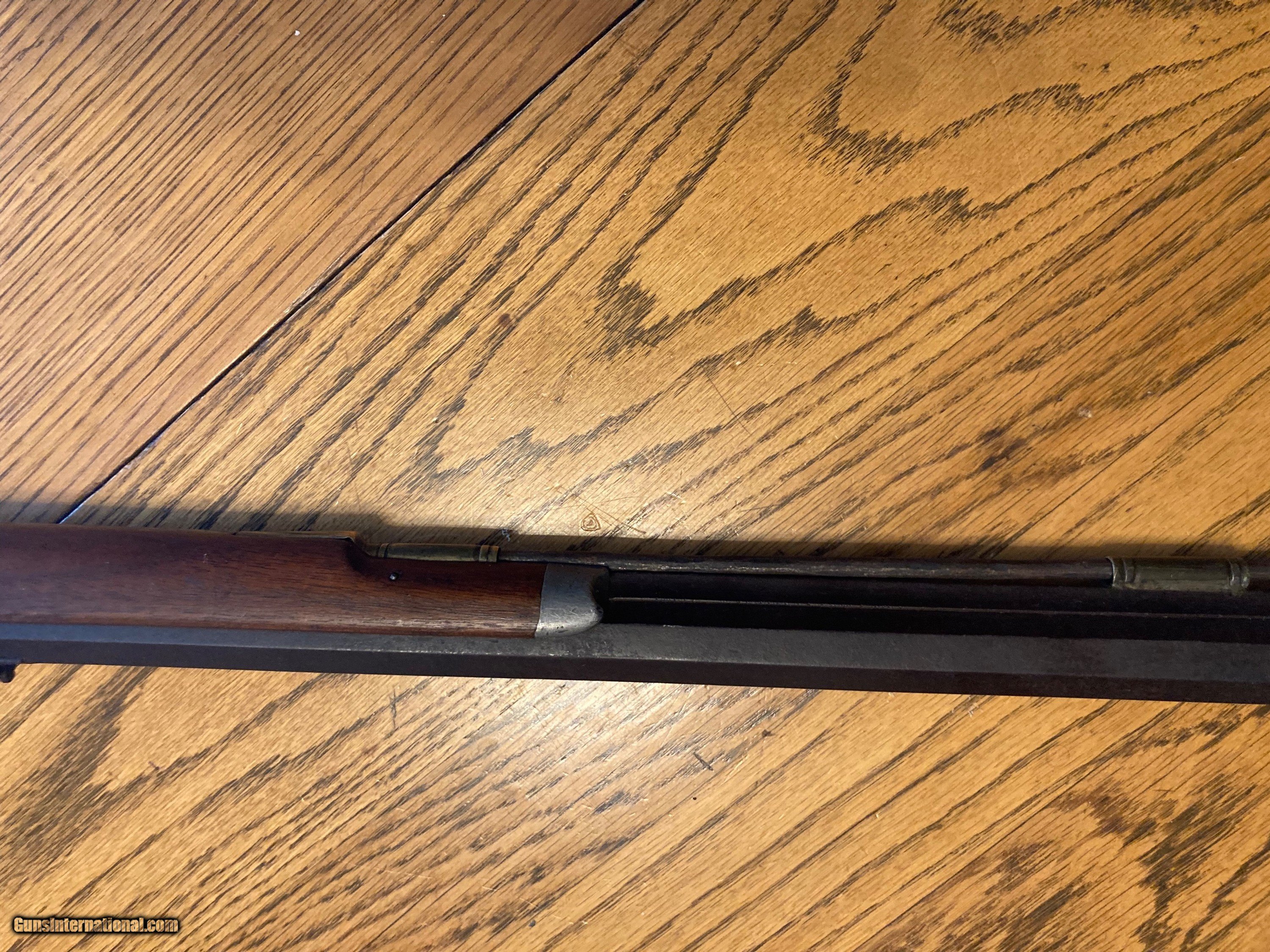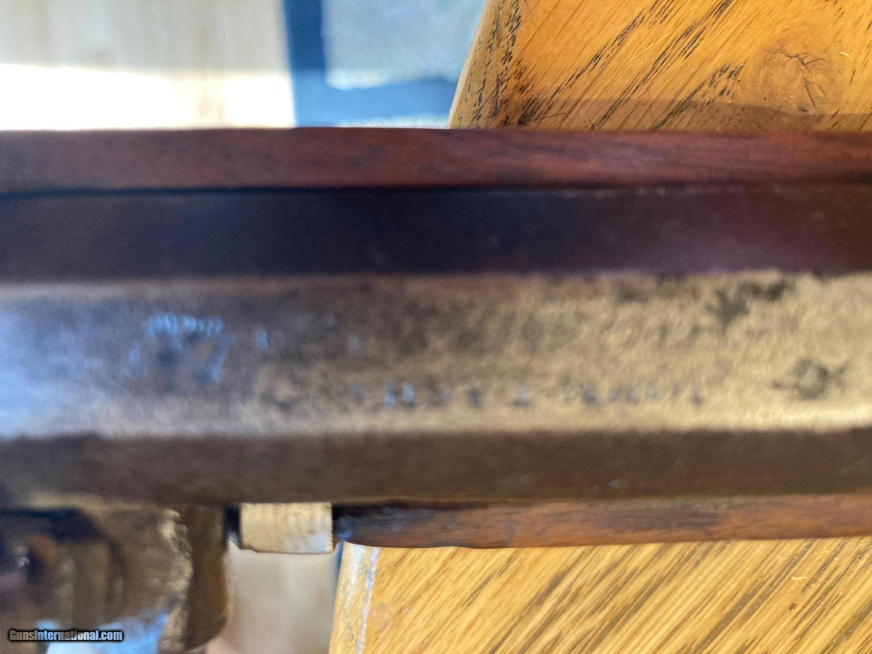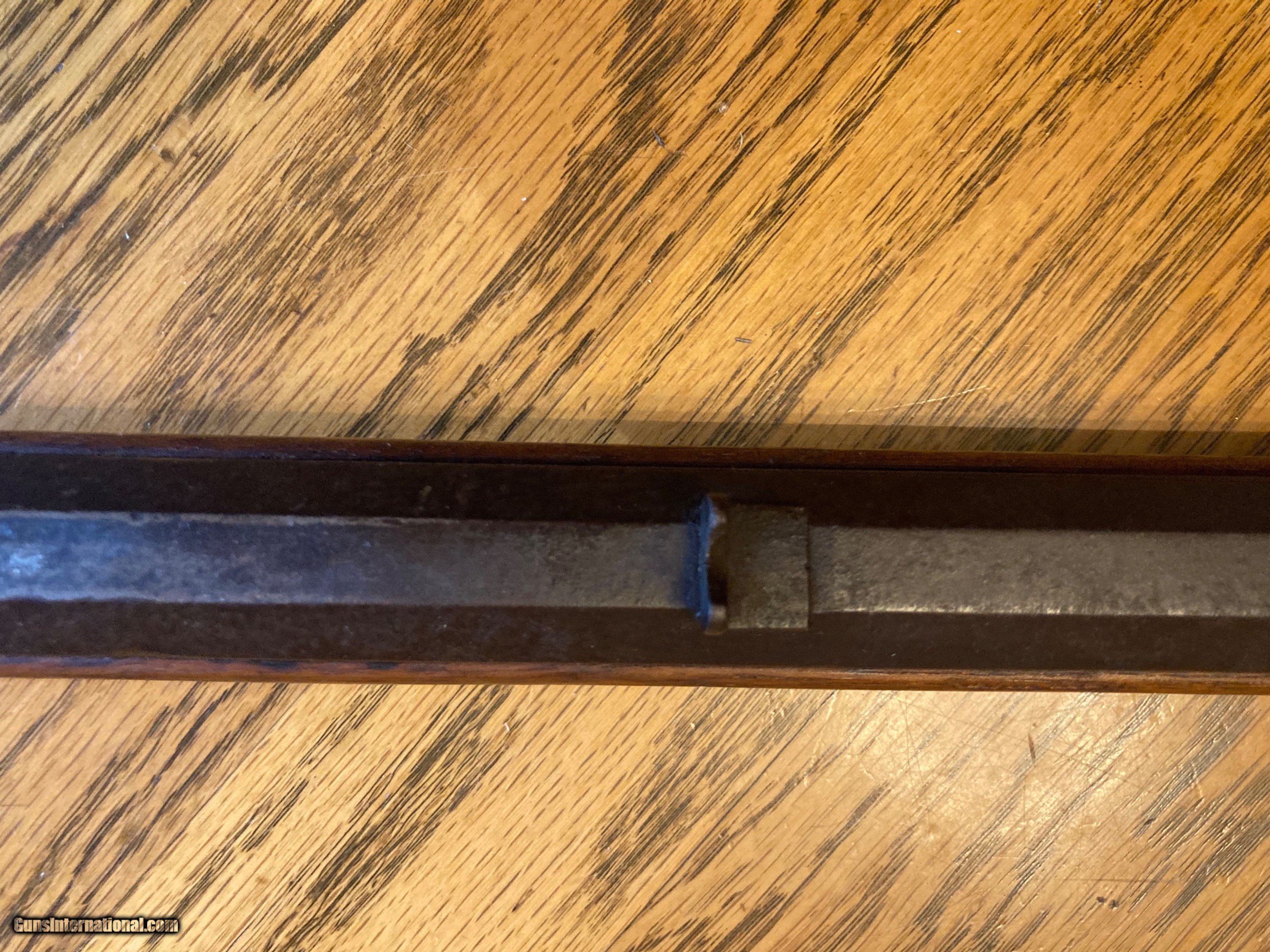 Description: On Hold Sale Pending. Antique Kentucky or Pennsylvania rifle wall hanger approximately 36 caliber Circa 1850. The 37.5 inch rifled barrel is stamped John Lash, and faint Columbus Ohio 1849. There is also a faint American eagle stamped, I've read the eagle stamp may relate to treaty guns. J. Lash is listed in Early American gun maker data base. The lock has no markings and is missing all internal parts so it's a Wall hanger. Both front and rear sights are present. The wood stock is in very good condition. The trigger guard, but plate and ramrod holder are brass. There is a German silver nose cap and ramrod present. Please feel free to contact me with any questions. Shipping will be actuall cost by insured usps priority mail with tracking. On Hold Sale Pending SOLD Curio/Relic: Yes Antique: Yes |