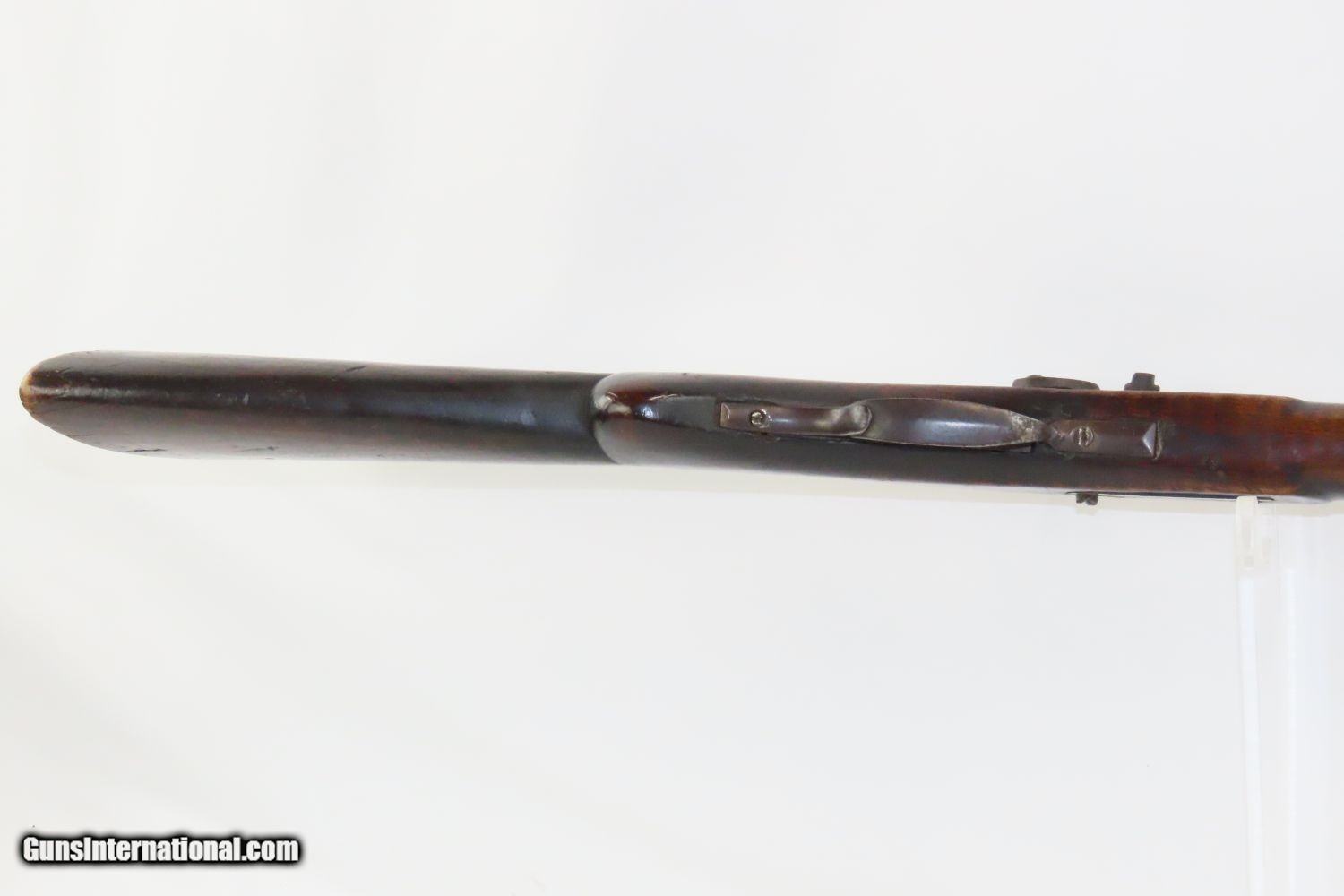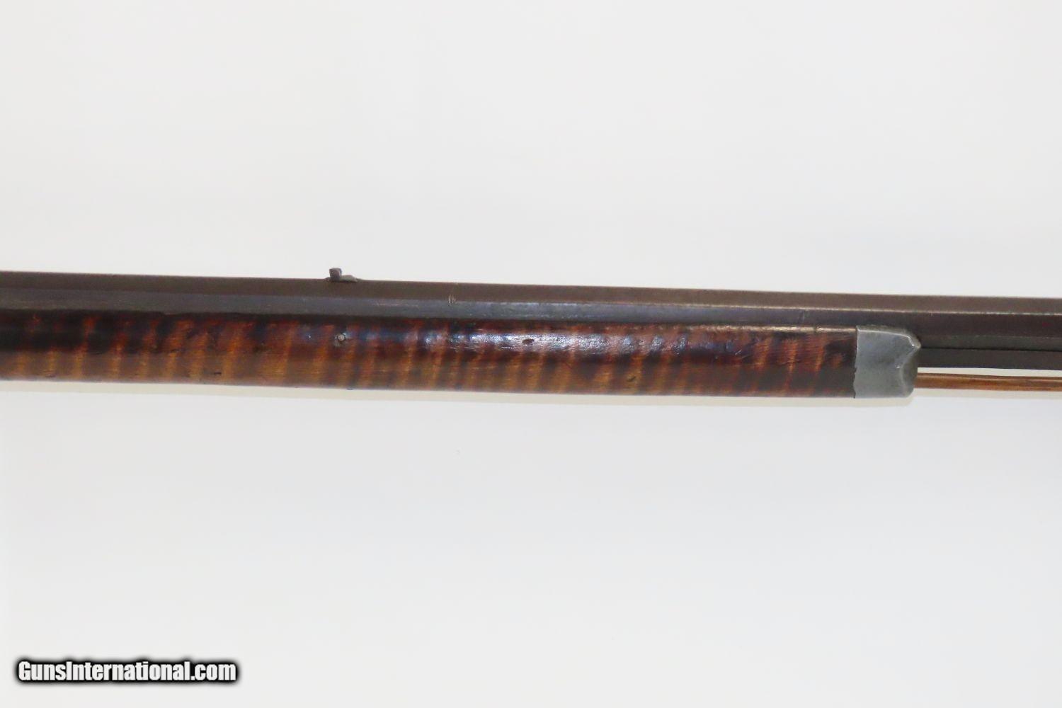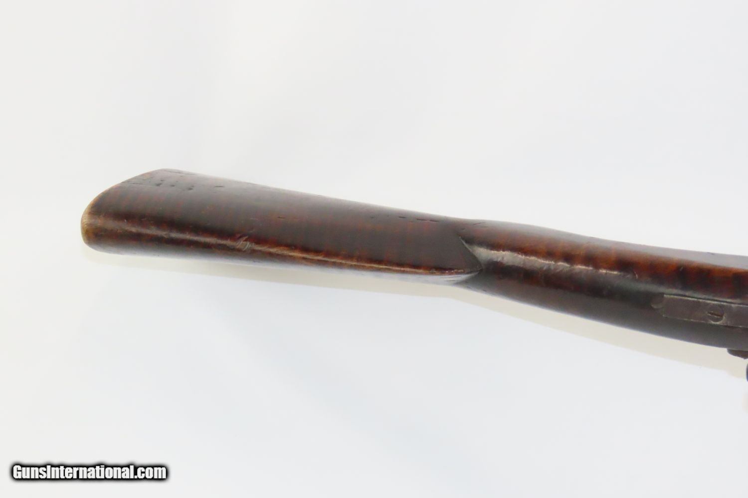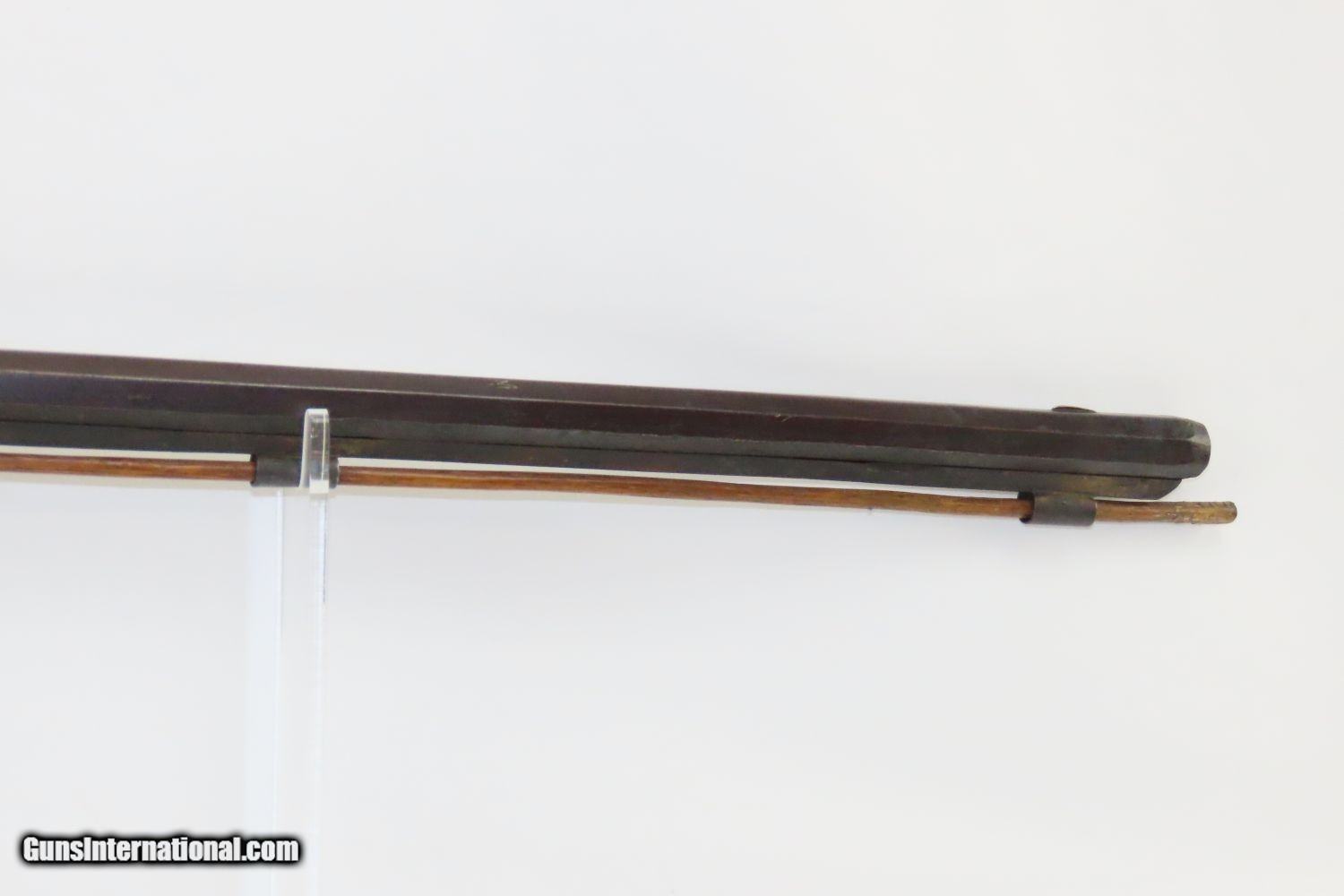 Description: Antique “POOR BOY” Half-Stock .47 Caliber Percussion American LONG RIFLE Kentucky Style Long Rifle with GOLCHER LOCK and DOUBLE SET TRIGGER! Here we present an antique “Poor Boy” Half Stock Percussion Long Rifle, made circa the mid-19th Century. For generations, terms like “Squirrel Rifle”, “Barn Gun”, or “Poor Boy” was used when referring to a plain, inexpensive, home grown working tool. This style of rifle could have possibly been made entirely by hand, using hand-operated tooling done in a frontier setting. There were strong pockets of recorded long rifle manufacture and use throughout the Appalachian Mountains of Virginia, Tennessee, Kentucky, Ohio and the Carolinas. This one has a smoothbore, octagonal barrel in .46 caliber, large enough to take medium sized game or to defend the homestead against unwanted aggression. It has a unique taper to the muzzle. The butt stock is significantly more substantial than the usual dainty long rifle. It is half-length, has a hand-filling shotgun-style pistol grip, and never had a buttplate. The trigger guard is of iron and Southern styling. Minimalistic brass sideplate. This is a neat old gun! The overall condition is good. The action is strong. The bore is good. This example has a lightly engraved lock. Here is a wonderful piece to collect and display! Own the original! This is a legitimate antique and not a reproduction. Barrel is 40 inches. Caliber: .46 Overall condition as seen in photos. Very Fast. Very Safe. FREE SHIPPING WORLDWIDE. Delivered directly to your door by express mail! Guaranteed AUTHENTIC & Includes CERTIFICATE OF AUTHENTICITY. ancestryguns $1295 #20109 SOLD Antique: Yes |