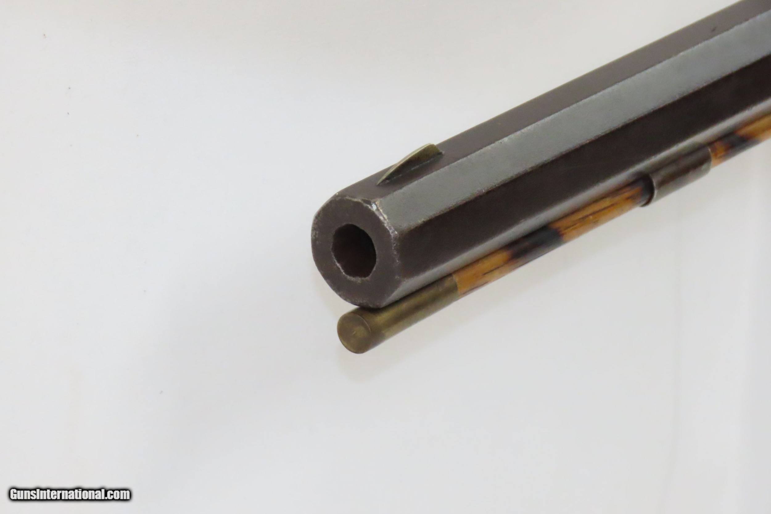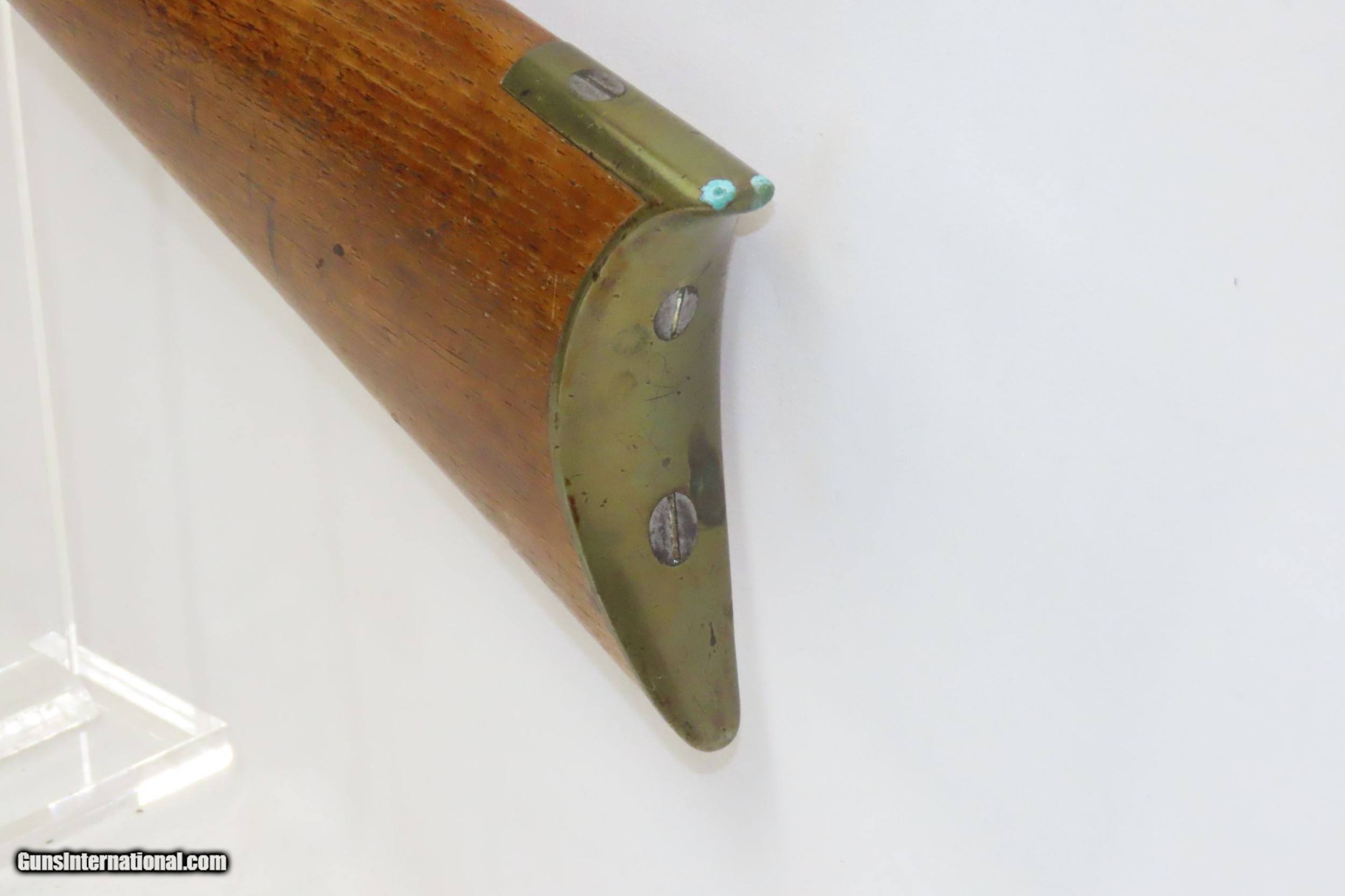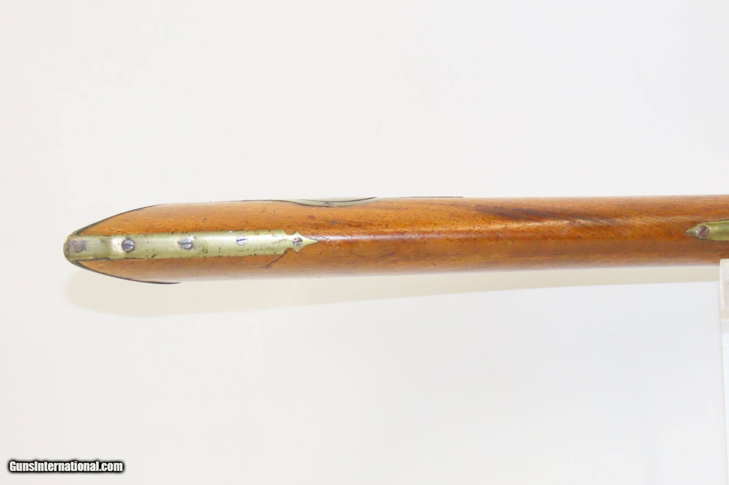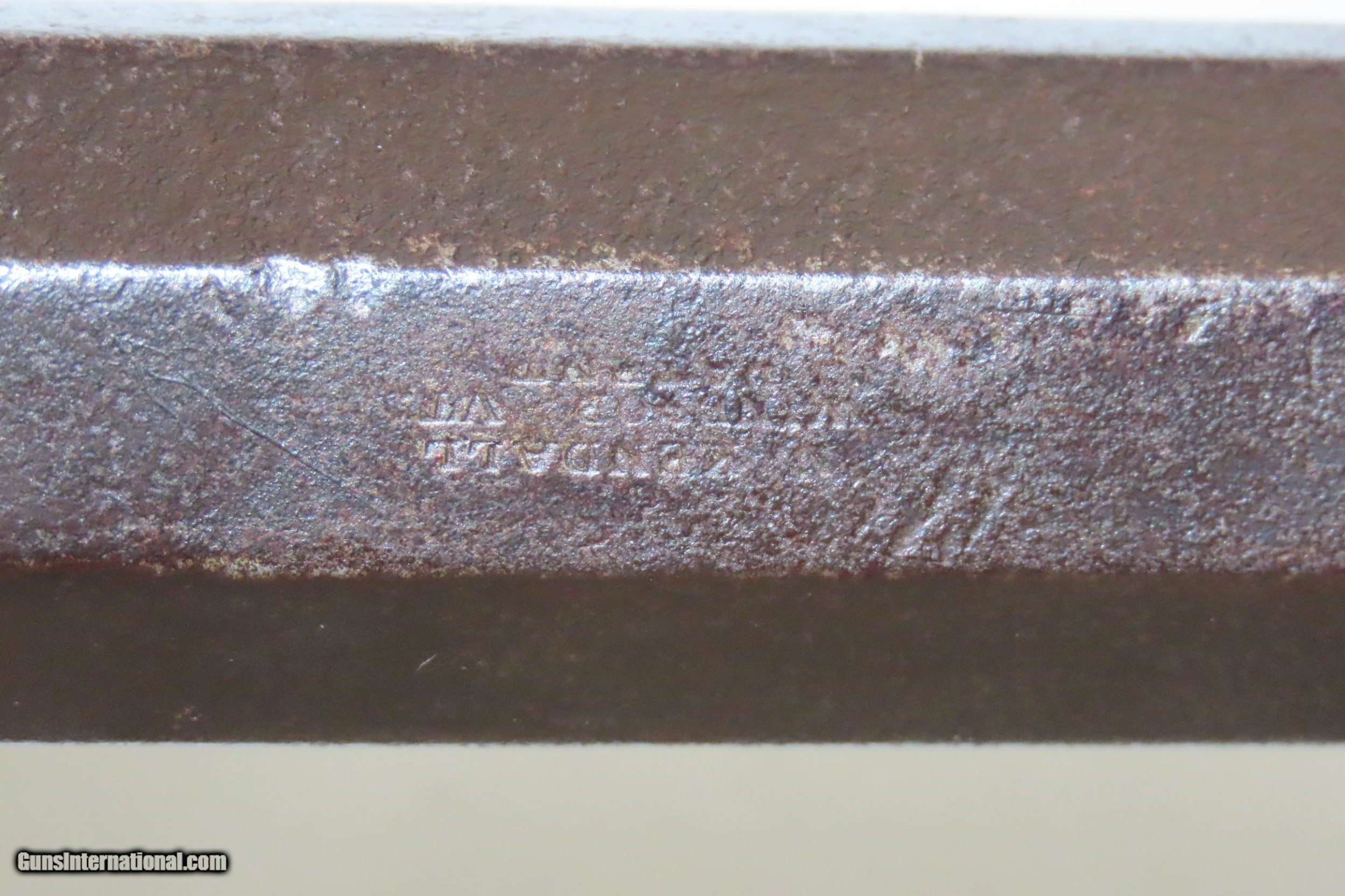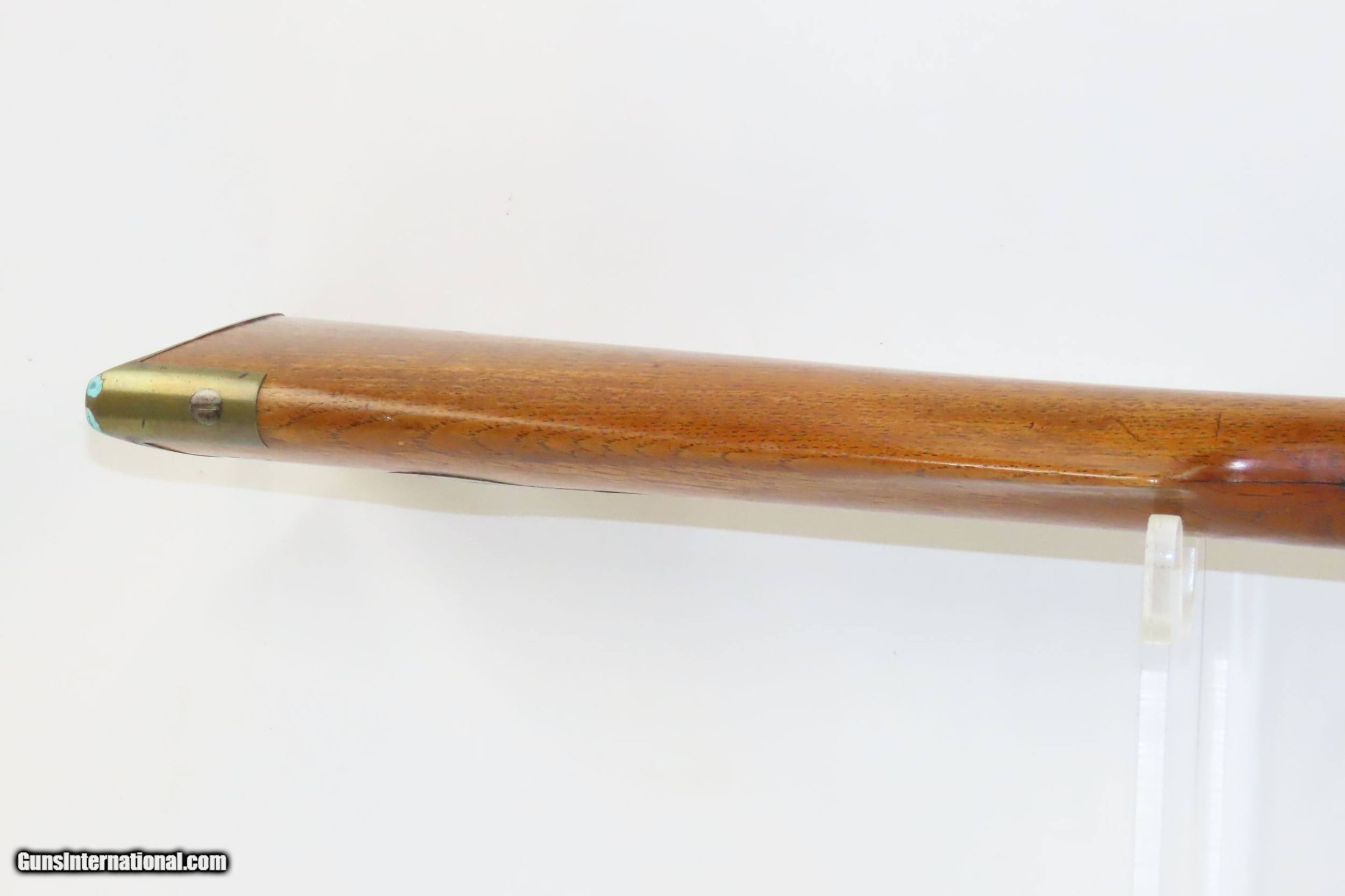 Description: Antique VERMONT Made NICANOR KENDALL .42 Cal. Percussion UNDERHAMMER Rifle Windsor, Vermont PRISON INMATE Produced Rifle Here we present an antique Nicanor Kendall Underhammer Rifle, manufactured in Windsor, Vermont, circa the early to mid-1840s. Kendall was born in Windsor, Vermont in 1807 and served an apprenticeship under gunsmith Asa Story, and received a patent for his underhammer percussion lock, which was safer than a percussion cap located on top of the gun to protect the shooters face in the event of a backfire. In the mid to late 1840s, underhammer rifles became very popular in the United States for target shooting and hunting, though they would not become a part of the westward expansion. Around 1835 Kendall began to manufacture his underhammer rifles at the state prison in Windsor. Kendall produced his arms using unskilled prison labor for which he paid compensation to the state, and hired skilled workers to perform the technical work. One of Kendall’s first large orders came in 1836 from the people of Texas, who were seeking independence from Mexico. In 1843 Kendall entered into a partnership with Richard Smith Lawrence of New York. The two opened a custom rifle shop in Windsor where they manufactured both underhammer and side-hammer percussion rifles and shotguns. The overall condition is good. Strong action. The bore is in good shape for its age. Solid stock with no more than average wear. This example has seen a repair to the front barrel band, of which remains stable. Legible markings. “N. KENDALL/WINSOR VT/PATENT” marked atop the barrel. Own the original! This is a legitimate antique and not a reproduction. Barrel is 20-1/2 inches. Caliber: .42 Percussion Overall condition as seen in photos. Very Fast. Very Safe. FREE SHIPPING WORLDWIDE. Delivered directly to your door by express mail! Guaranteed AUTHENTIC & Includes CERTIFICATE OF AUTHENTICITY. ancestryguns $1450 #220325 SOLD Antique: Yes |