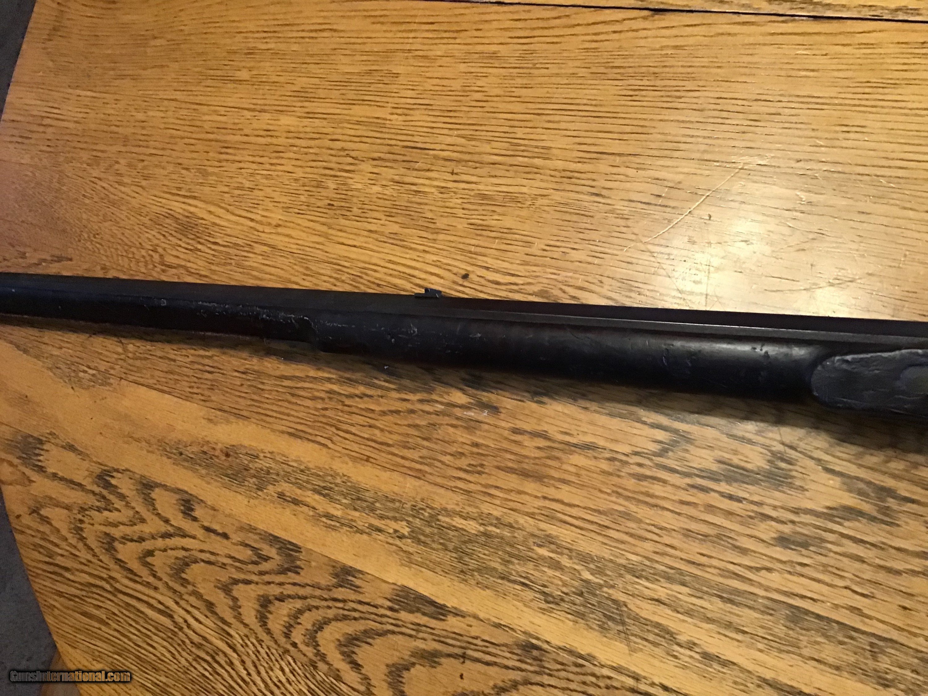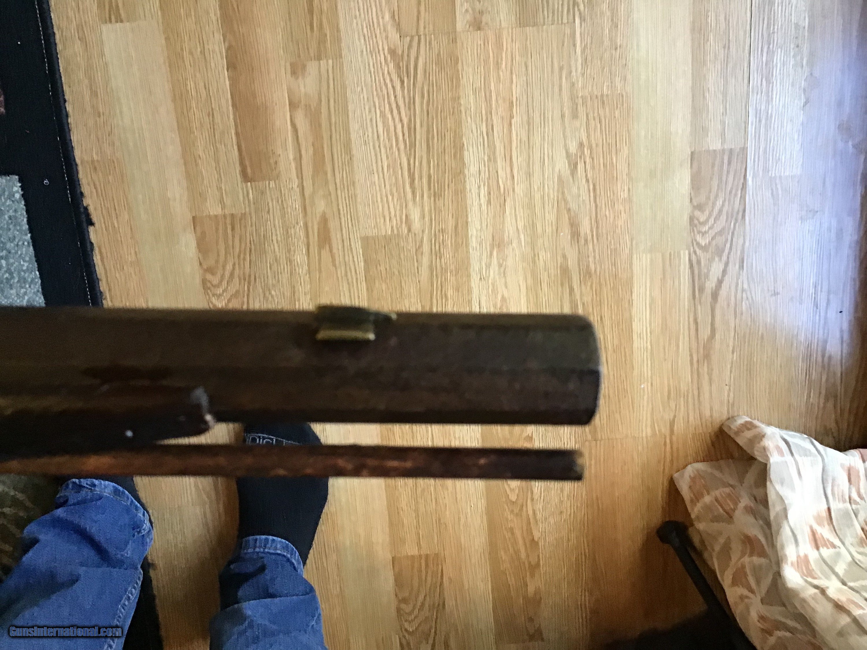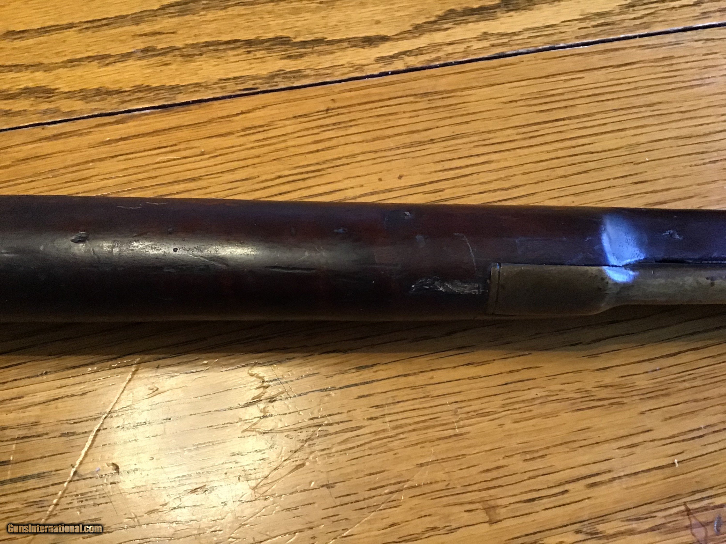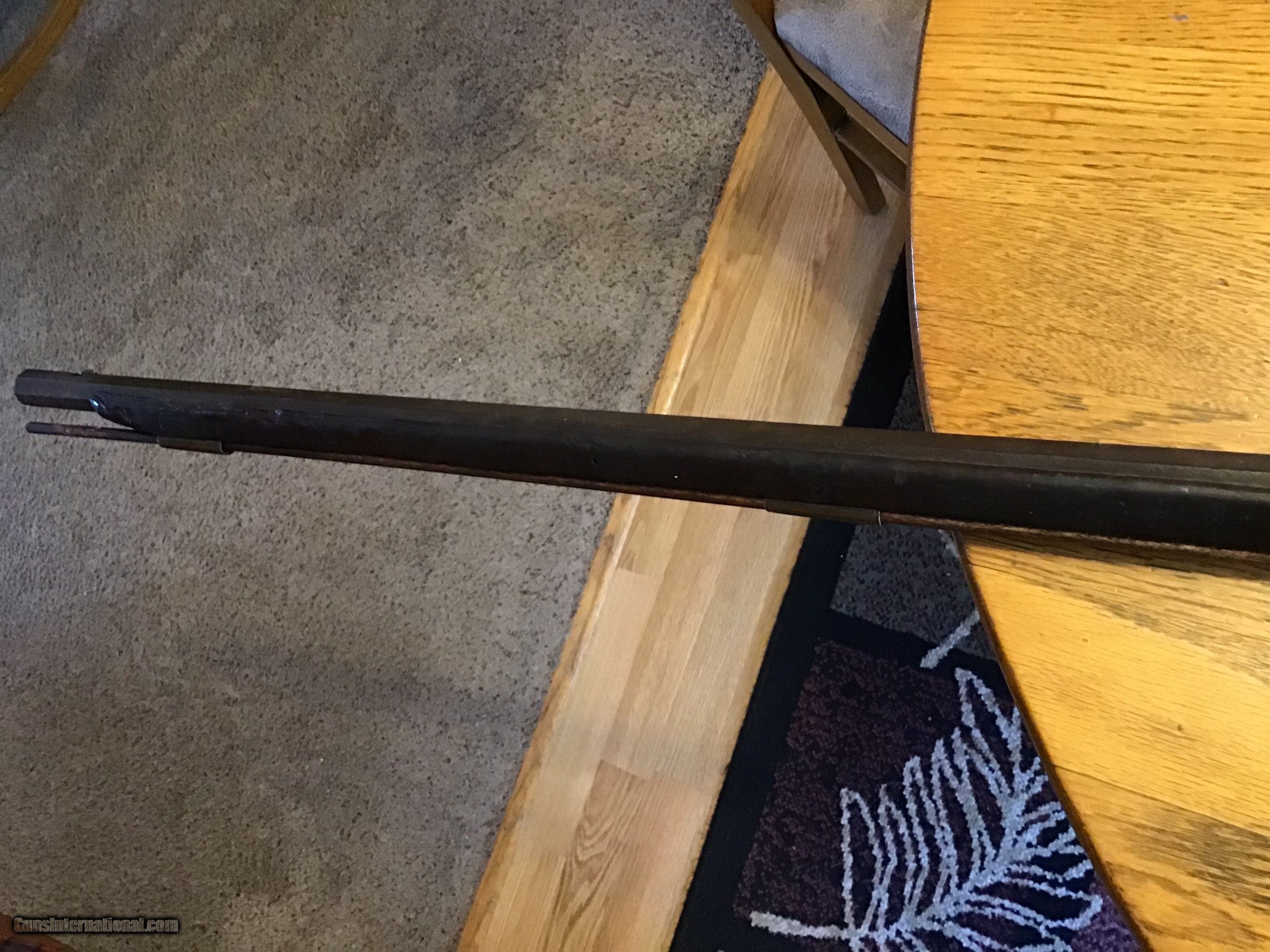 Description: Mid 1800s Kentucky long rifle by Henry Parker. This full stock long rifle is 63 inches long With a 54 caliber smooth bore barrel is dark brown with front and rear sights has scattered pitting. The full dark walnut stock shows much use with dents, scratches and chips. The functioning lock is marked Henry Parker warranted. The but plate, trigger guard and ram rod quides are brass with a brown patina. Please feel free to contact me with any questions. Shipping will be actual cost by usps insured priority mail with tracking. SOLD Antique: Yes |