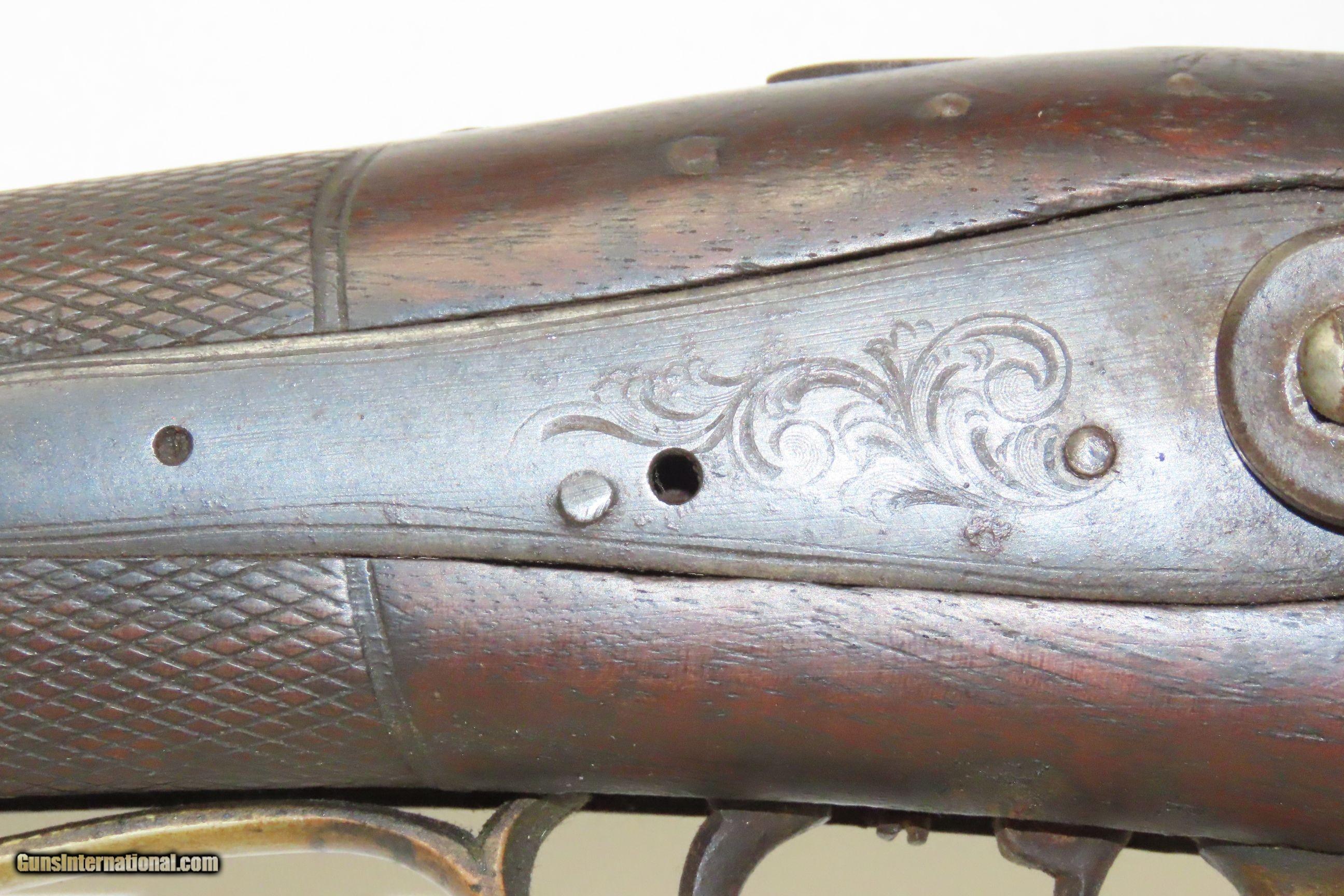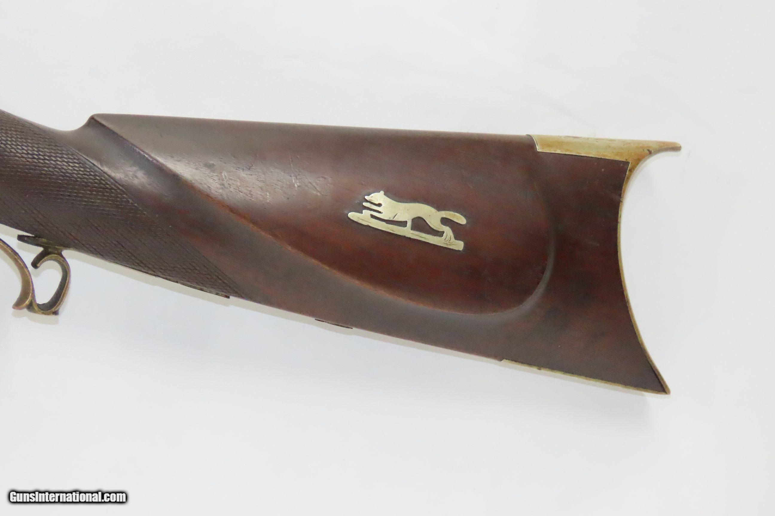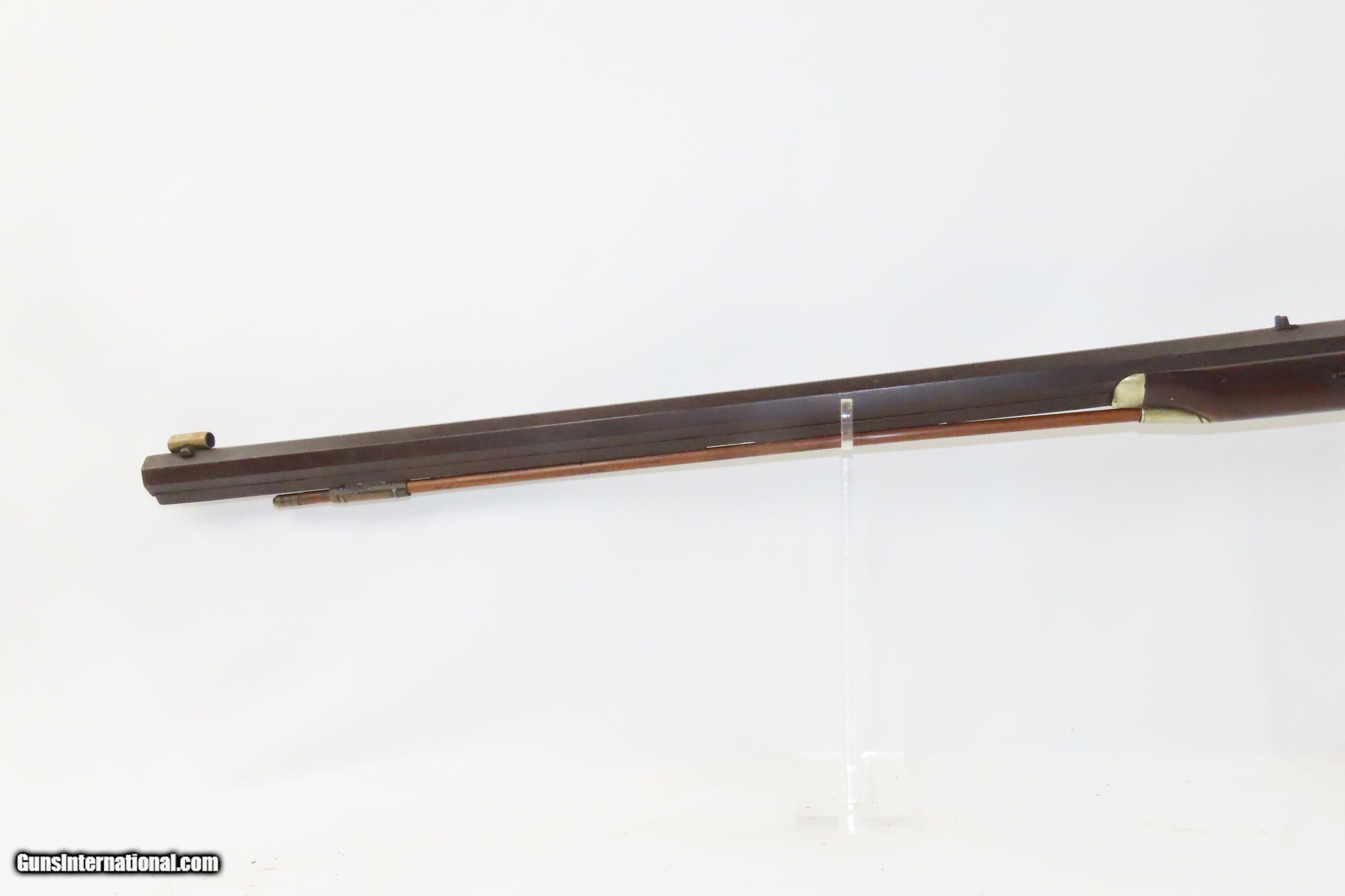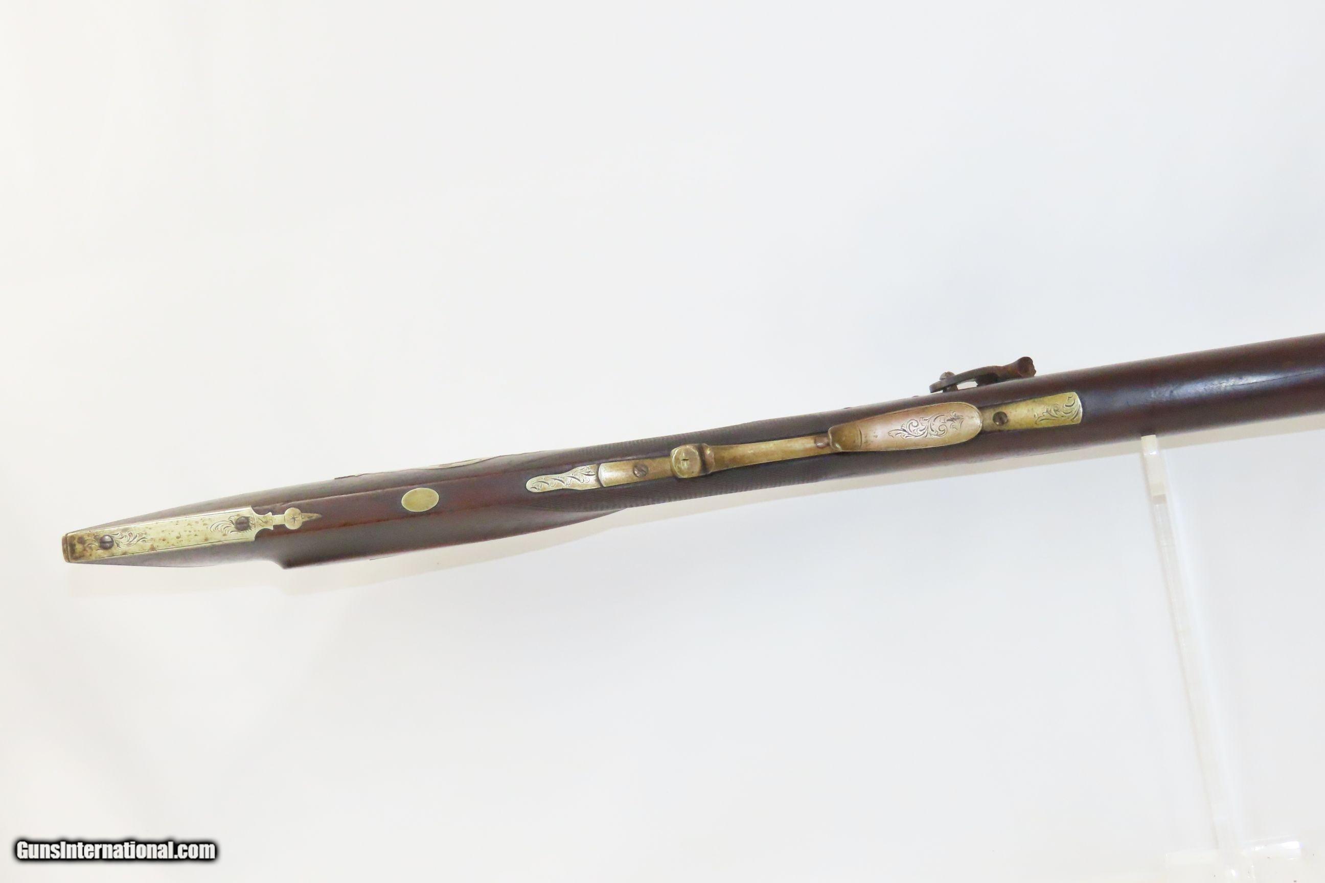 Description: ENGRAVED Antique Half Stock BACK ACTION Percussion .42 Long Rifle FRONTIER Mid-1800s HOMESTEAD/HUNTING Rifle Here we present an antique Back Action Half Stock American Percussion Long Rifle, made circa the mid-19th Century. Its stout octagonal barrel is in .45 caliber, large enough to take small to medium sized game or to defend the homestead against unwanted aggression. Rifle manufacture in the mid-to-late 19th Century was rapidly changing over from thousands of craftsmen all over the United States and on the Frontier making and selling their wares, to the large factories with standardized assembly lines and modern manufacturing techniques. Many makers’ names of the so-called Kentucky long rifles have been lost over time. This rifle is one such example. These locks were called “back action” because the mainspring hangs behind the tumbler. The back action is often used in single and double rifles, and occasionally in single barrel shotguns where the need for strength requires as little steel as possible be removed from the bar of the action. The action on this example does not function and the nipple is missing. Good bore. Soldi stock. “JB Badger” is stamped on the left flat. Nice brown barrel patina. The ramrod lug has been repaired and remains stable. The wrist has been drilled and tapped. German silver escutcheons. Own the original! This is a legitimate antique and not a reproduction. Barrel is 34 inches. Caliber: .45 Percussion Overall condition as seen in photos. Very Fast. Very Safe. FREE SHIPPING WORLDWIDE. Delivered directly to your door by express mail! Guaranteed AUTHENTIC & Includes CERTIFICATE OF AUTHENTICITY. ancestryguns $1200 #230889 SOLD Antique: Yes |