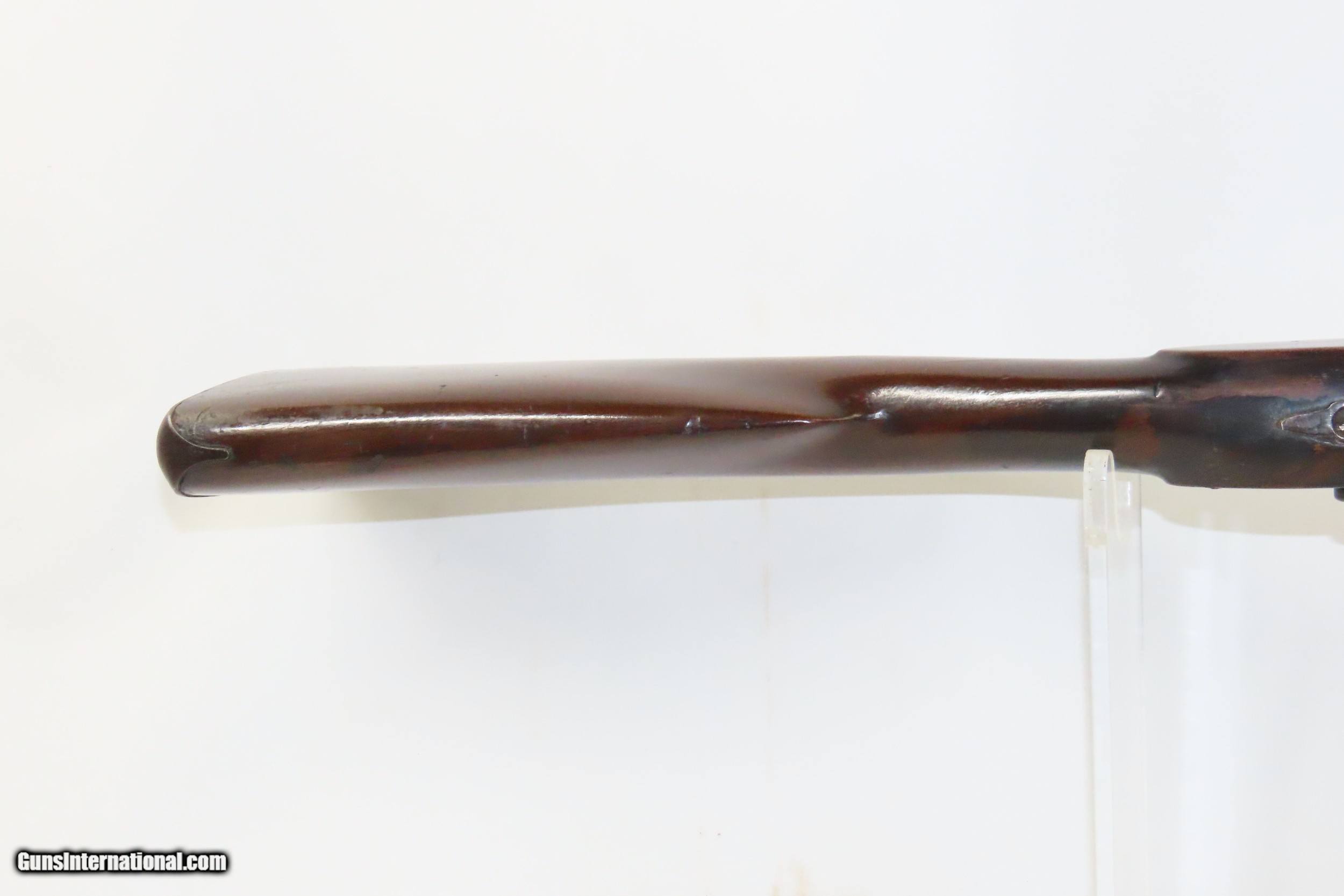 Description: ENGRAVED Antique Mid-1800s Half-Stock .65 Caliber Percussion FOWLING PIECE Kentucky Style HUNTING/HOMESTEAD Shotgun Here we present an antique Percussion Fowler, made circa the mid-19th Century. Its 38-1/2” part-octagonal barrel is in .65 caliber (about 16 gauge) and has plenty of length to reach the “high flying” birds to cook for supper that evening. This one is fairly light and handy, though long by today’s standards. It has a Golcher lock. The overall condition is very good. Original finish/patina. The action is excellent. The bore is smooth and gray. The stock is solid. There is a small repair that goes from the tip of the barrel tang to the rear of the lock. It is stable and subtle. The ramrod is a later replacement. Own the original! This is a legitimate antique and not a reproduction. Barrel is 38-1/2 inches. Caliber: .65 Overall condition as seen in photos. Very Fast. Very Safe. FREE SHIPPING WORLDWIDE. Delivered directly to your door by express mail! Guaranteed AUTHENTIC & Includes CERTIFICATE OF AUTHENTICITY. ancestryguns $1200 #226494 SOLD Antique: Yes |