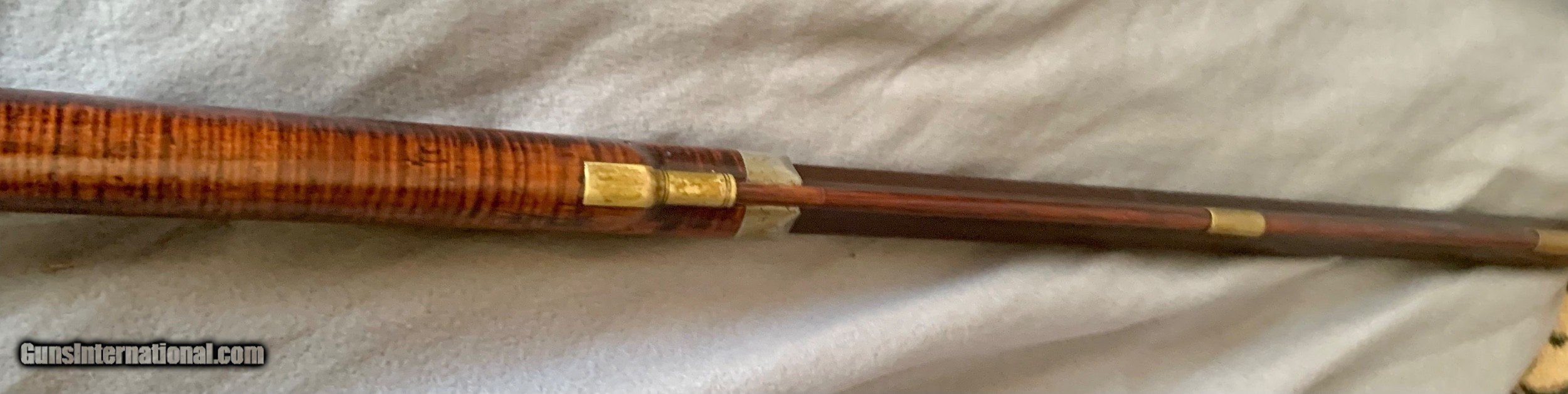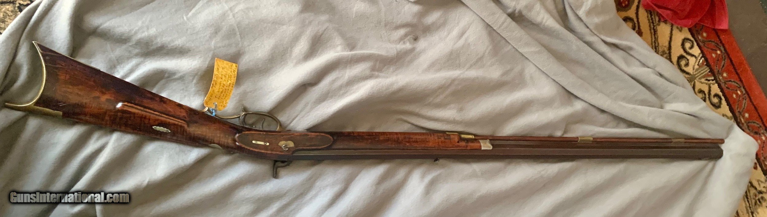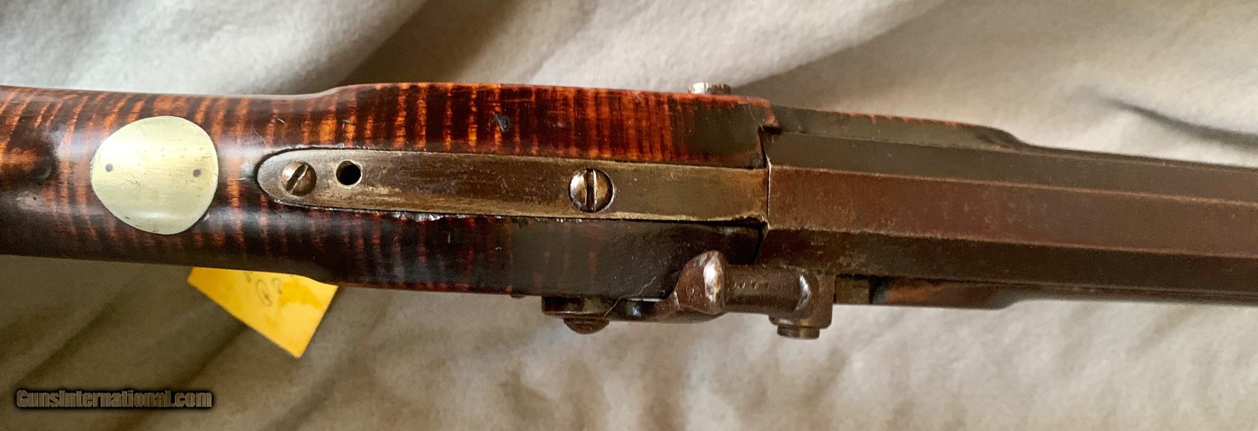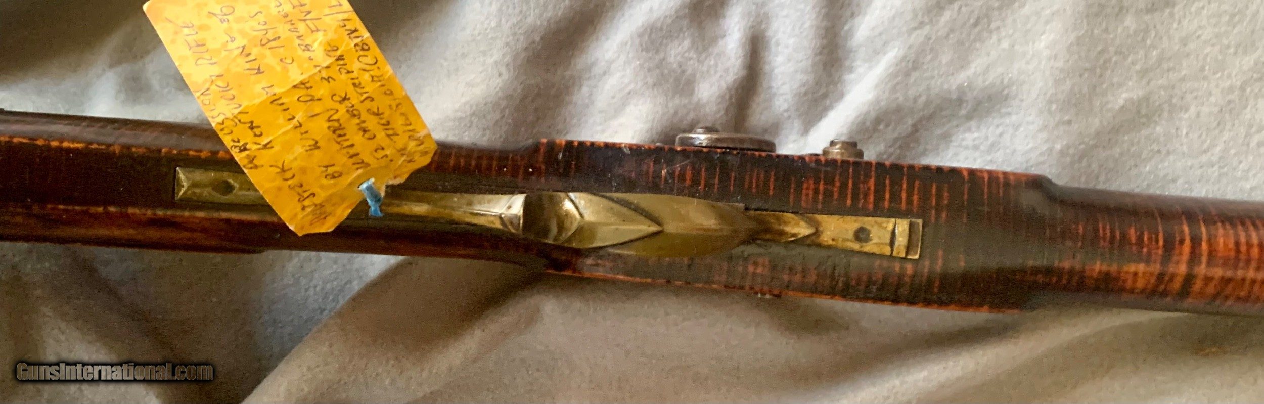 Description: Very fine William King percussion rifle of western PA c 1840's. .52 caliber, 37" heavy octagon barrel with original sights. signed script top rear of barrel. nice tiger striped maple stock. nice patchbox action performs as it should. cock, fire and safety set. offers/trades considered SOLD SOLD Antique: Yes |